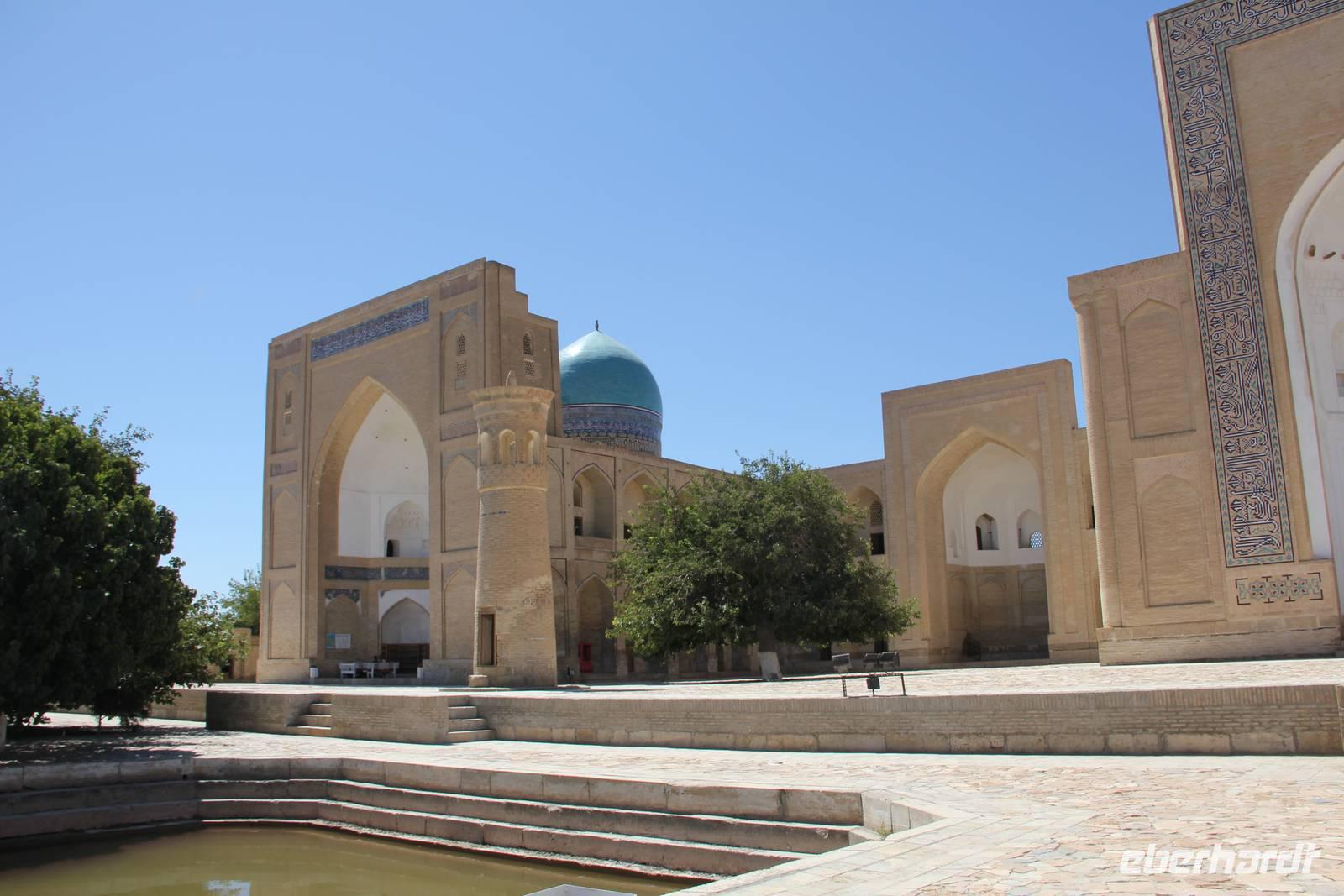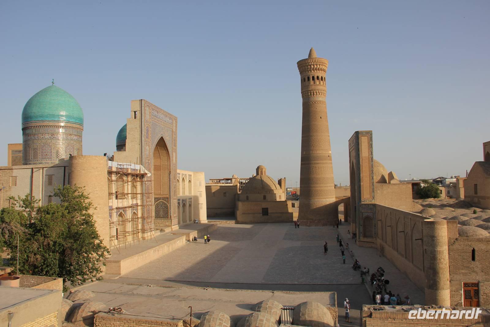 Am Nachmittag stand die Besichtigung des Poi-Kalon Komplexes mit Kalon Moschee, Kalon Minarett und Medrese Miri Arab auf dem Plan. Dieser Komplex gilt als eine der Hauptsehenswürdigkeiten der Stadt. Danach führte Zika die Gruppe durch die Handelshöfe der Stadt, wo man Storchenscheren, Tücher, Tischdeckchen und vieles mehr kaufen konnte.