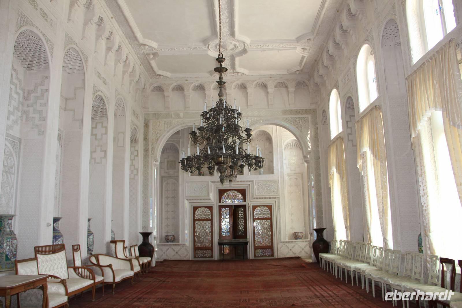 Heute wurde die Umgebung von Buchara erkundet. Dabei wurden der Pilgerort für Moselms Naqshbandi, die ehemalige Nekropole Chor Bakhar, welche heute eine religiöse Stätte des Landes ist, sowie der Sommerpalast Sitorai Mokhi Khosa besichtigt.