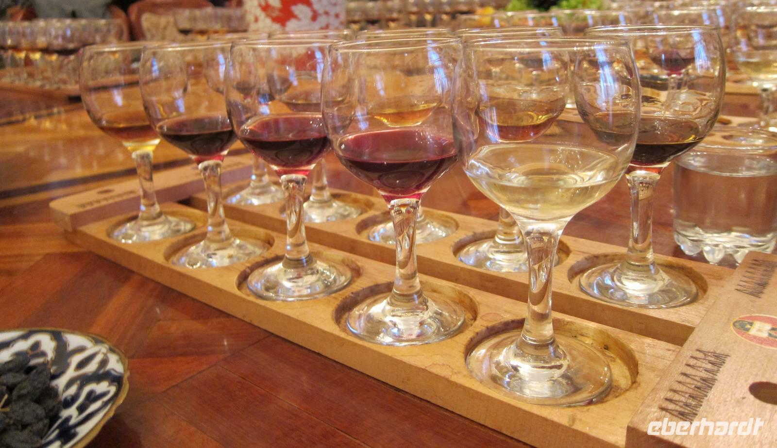 Nachmittags stand dann der Besuch des Ateliers für Seidenstoffe und Batik von Valentina Romanenko an. Später ging es in die Weinkellerei Khorvenko, wo die Gruppe eine Verkostung mehrerer Weine und Cognacs erwartete.