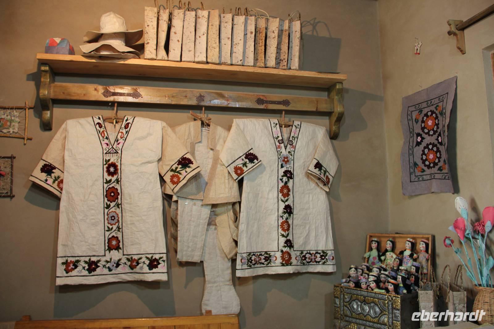 Nach der Besichtigung der Gräberstraße und Nekropole Shoshi Zinda an diesem Vormittag ging es zu einer Seidenpapierfabrik in Samarkand. Hier wurde erklärt, wir noch heute Seidenpapier traditionell in Handarbeit hergestellt wird.