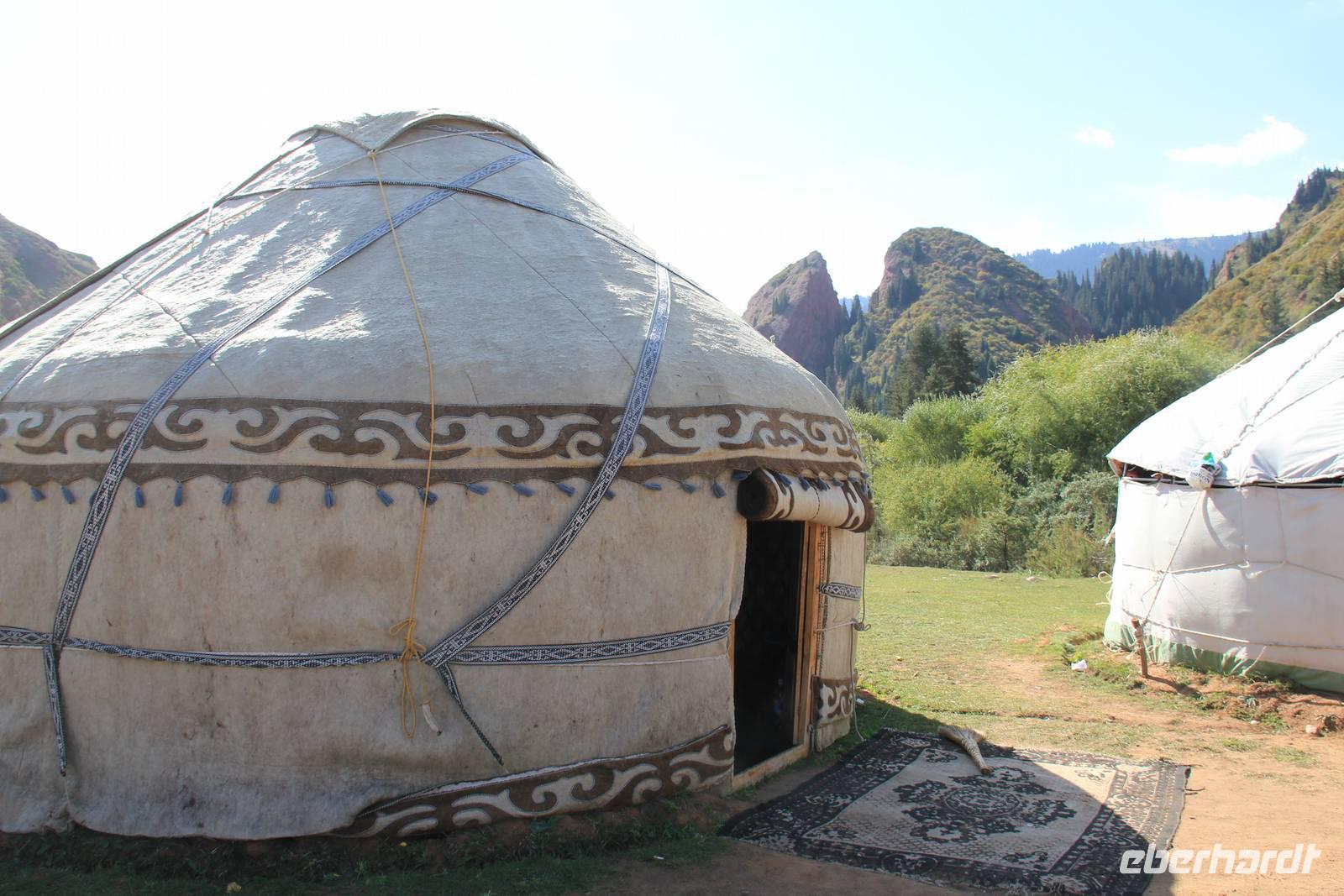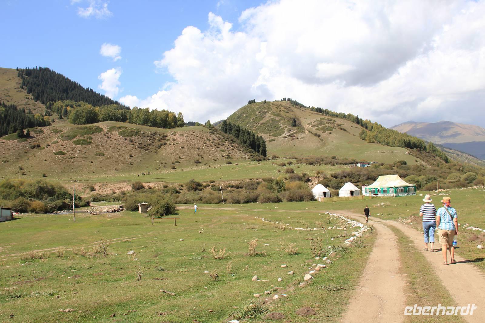 Am frühen Mittag fuhren wir dann weiter in die Semjonov-Schlucht. In einer Jurte von Halbnomaden aßen wir unser Mittags-Picknick. Die Natur hier war einfach wunderschön, die Berge, die Ruhe, die Tiere und auch die gute Luft!