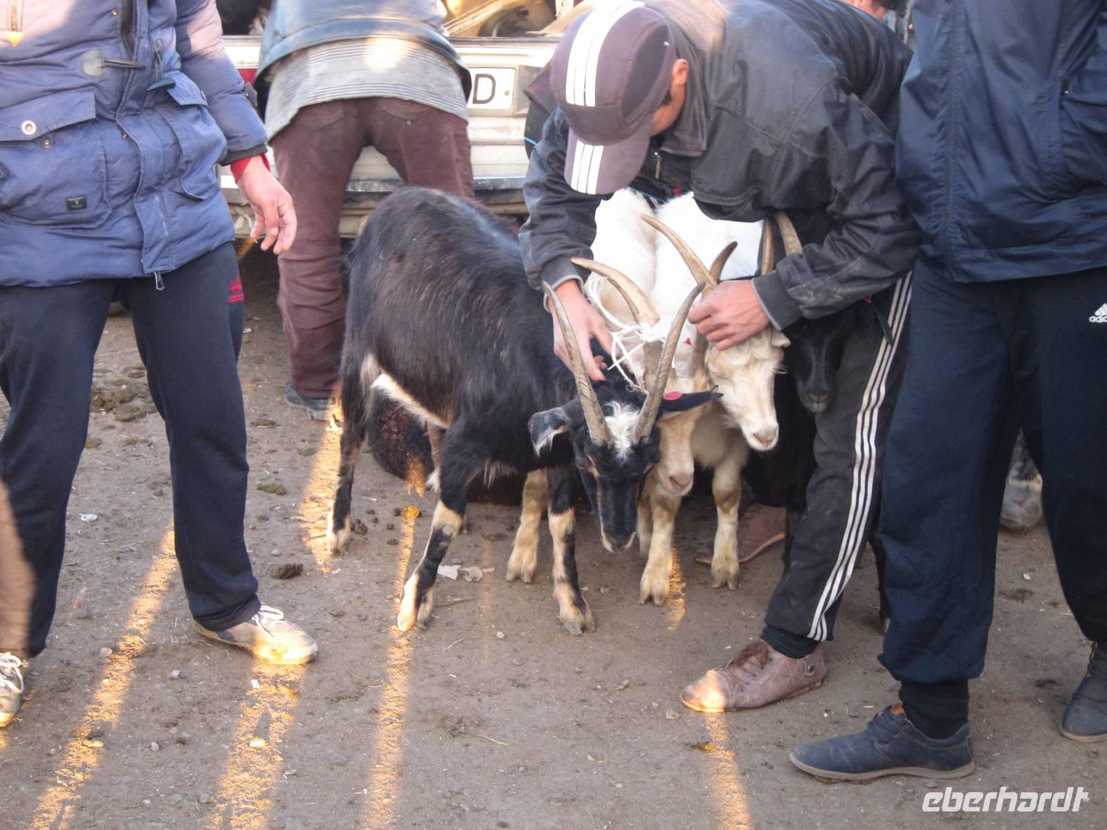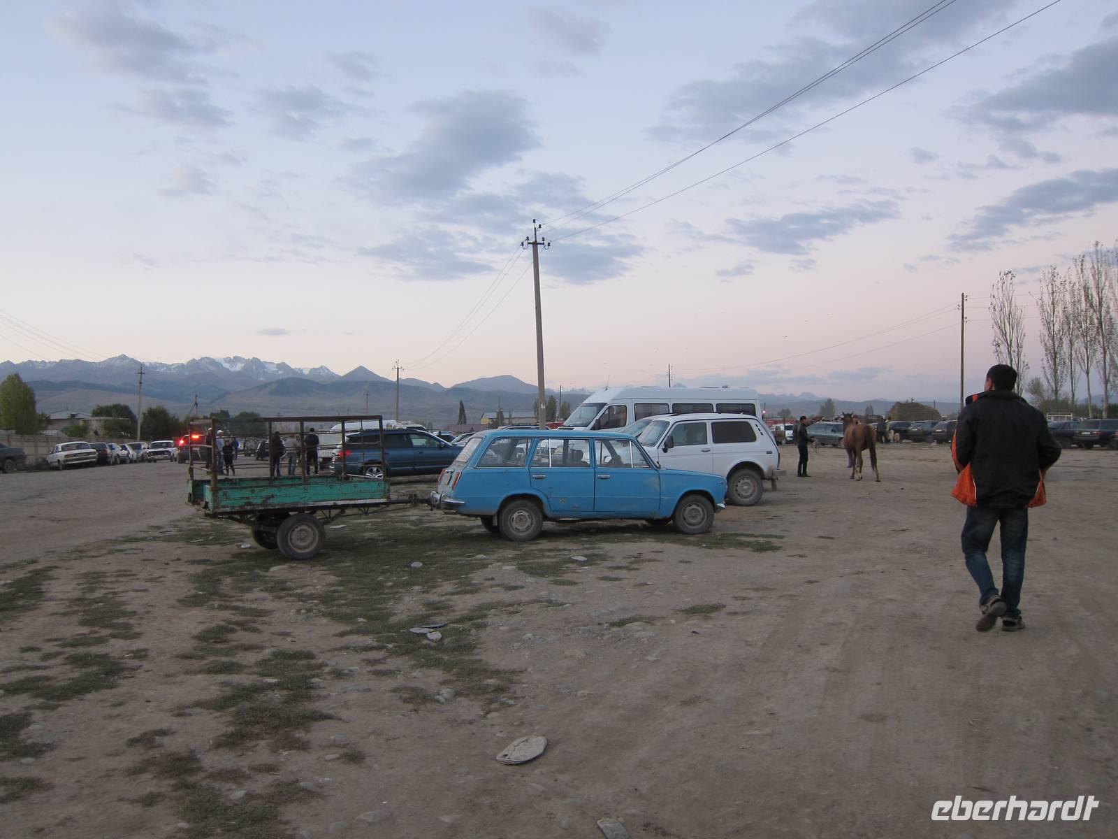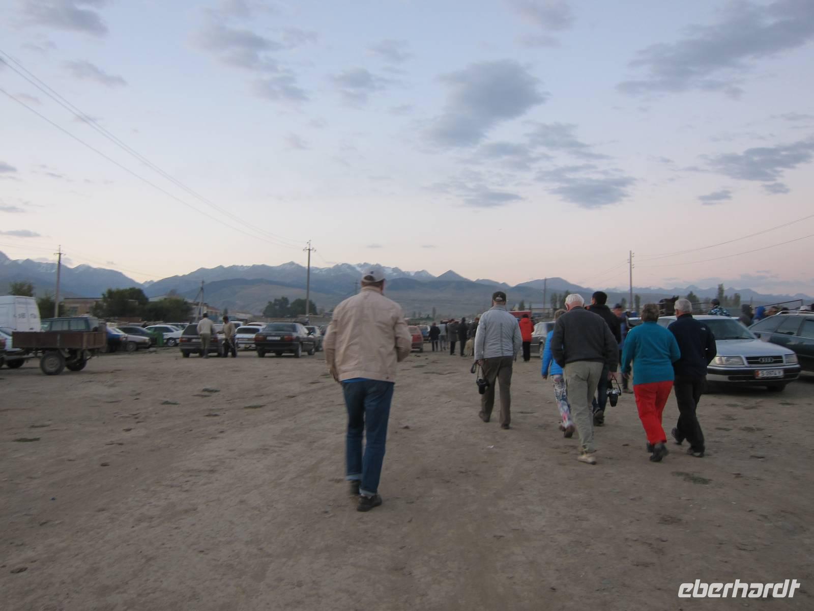 Für den Großteil der Gruppe hieß es heute früh aufstehen, da es zum hiesigen Viehmarkt ging. Mit dem Sonnenaufgang kamen wir dort an und konnten das spektakuläre Treiben aus handelnden Kirgisen und Tier von Pferden über Rinder und Ziegen bis hin zu Schafen beobachten. Dabei ging es teilweise heiß her und man musste auch aufpassen, wo man hintrat.