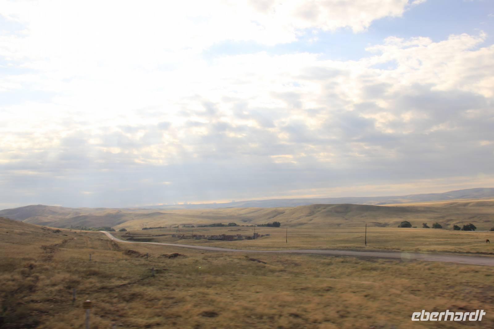 Als gerade ein Schauer über uns hinein brechen wollte, fuhren wir wieder aus der Schlucht hinaus und weiter in Richtung Karakol.
