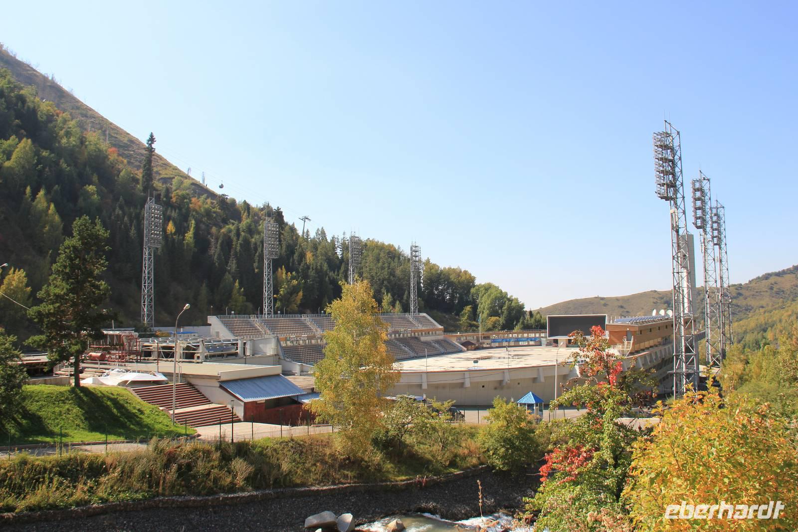 Nach einem leckeren letzten zentralasiatischen Mittagessen fuhren wir nachmittags etwas raus aus der Stadt. Zuerst ging es hoch auf den Aussichtsberg Koktobe, wo sich auch der Fernsehturm der Stadt befindet. Hier genossen wir die Aussicht bei strahlendem Sonnenschein. Weiter ging es dann in die Medeo Schlucht. Wir fuhren bis zum Eisstadion von Medeo, wo wir die Freizeit vor allem mit Treppensteigen verbrachten. Denn hier führen 841 Stufen hoch hinauf zum Medeo-Damm. Nicht alle wagten den Aufstieg bis ganz hoch, aber die Aussicht auf das Stadion und die umliegende Natur lohnt sich auch schon von etwas weiter unten! Nachdem alle wieder gut am Stadion angekommen waren, durfte ein nachmittäglicher Kaffee im Café hier natürlich bei unserer Gruppe nicht fehlen.