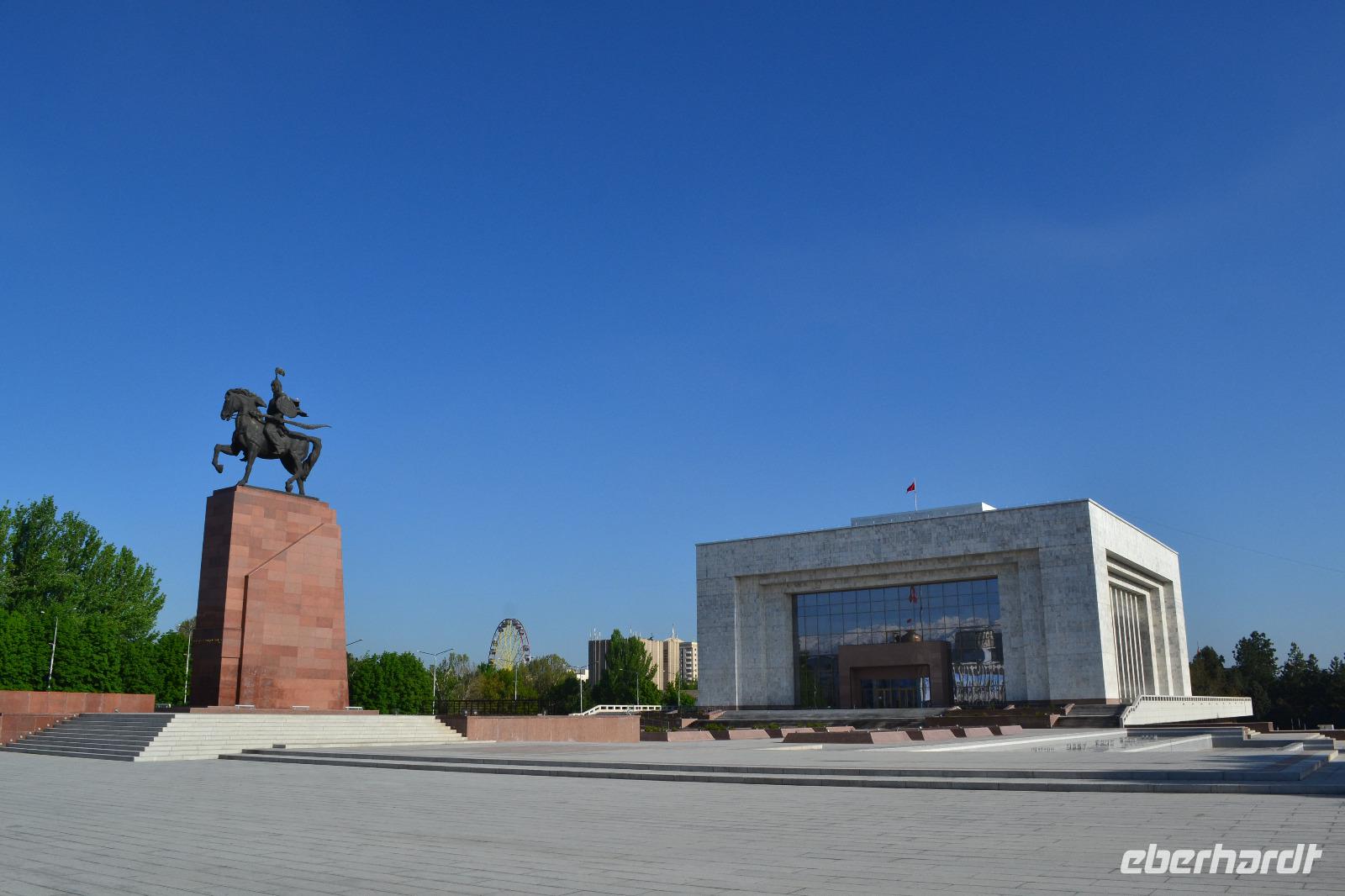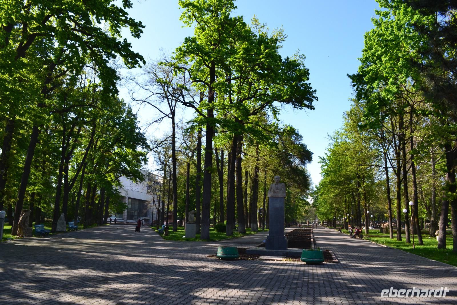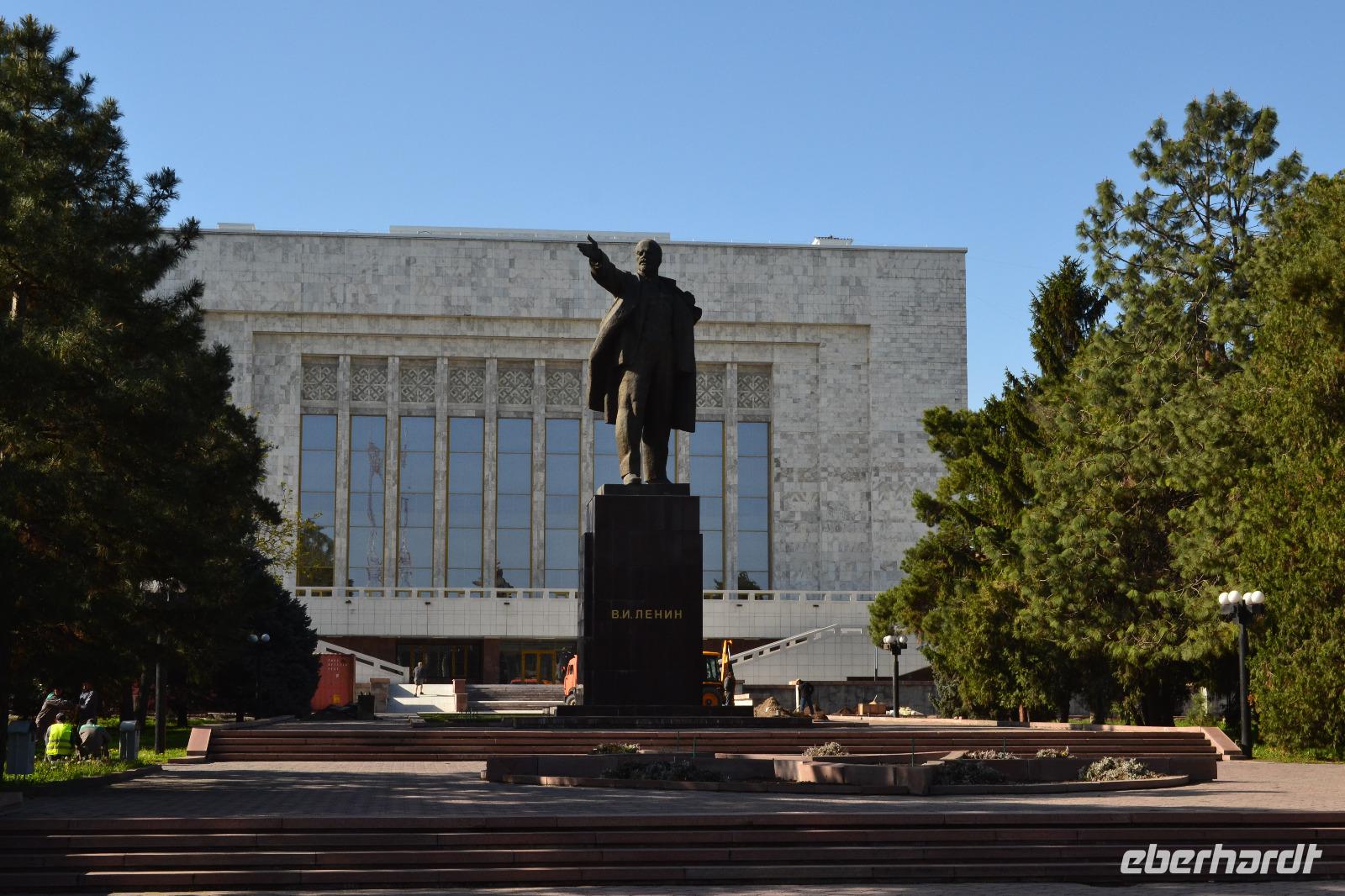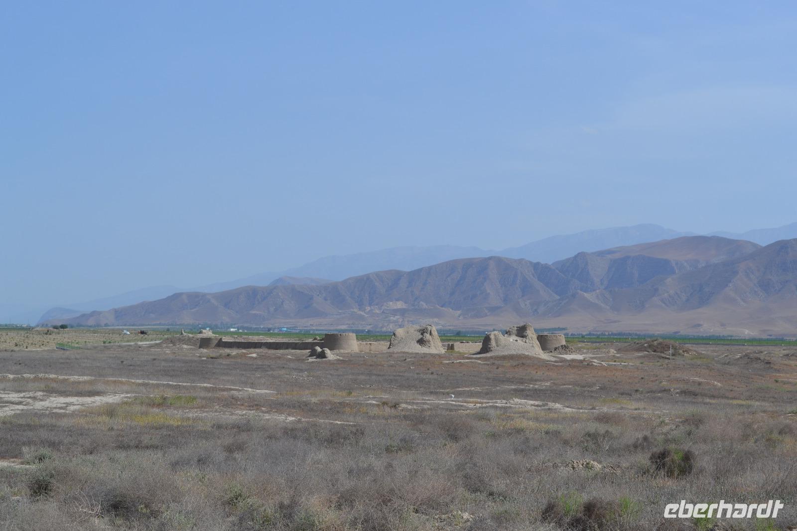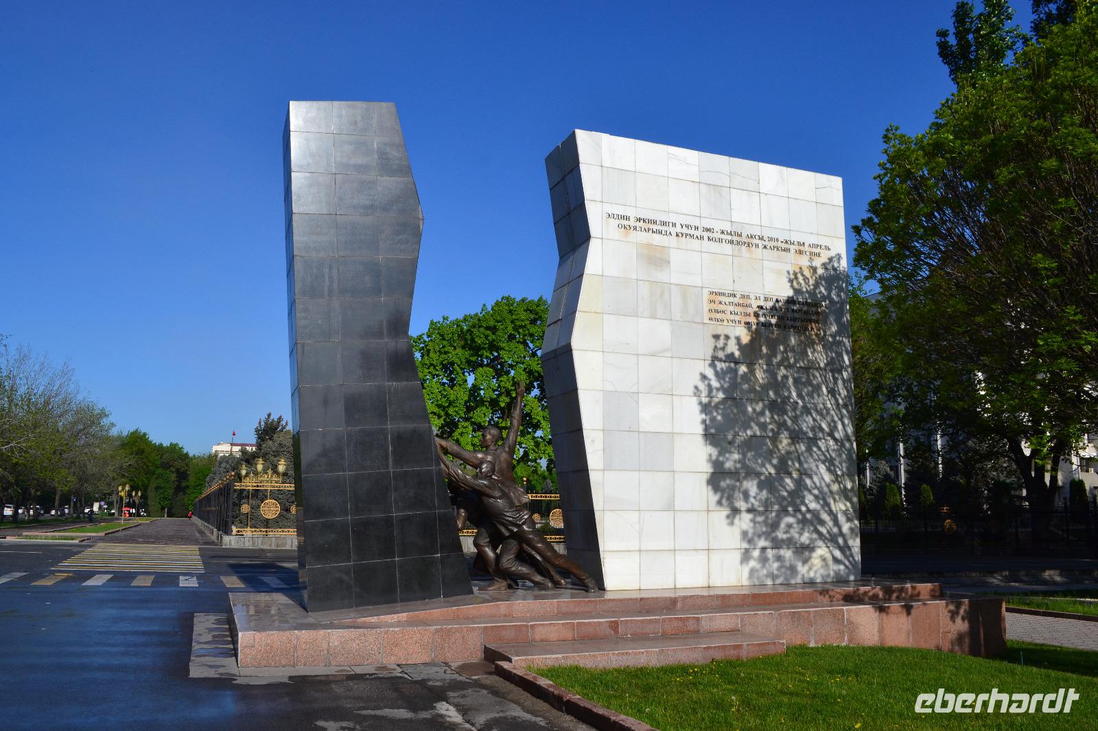 Am Vormittag führt uns Lena durch ihre Heimatstadt Bishkek. Während wir über den Ala-Too-Platz, den Alten Platz und durch den Eichenpark bummeln, erzählt uns Lena von den Revolutionen 2005 und 2010, die Kirgisistan schwer erschütterten. Daran waren nicht zuletzt das starke ökonomische Gefälle zwischen dem Nordteil und dem Südteil des Landes sowie die patriarchalischen Clanstrukturen Schuld. Nach der Stadtbesichtigung fahren wir zurück nach Kasachstan. Auch diesmal geht der Grenzübertritt - von einer einzigen längeren Kofferkontrolle abgesehen - relativ unkompliziert vonstatten. Zurück in Kasachstan folgen wir dem Grenzverlauf in Richtung Westen bis nach Taras. Am Fluss Talas halten wir kurz an, denn hier in der Nähe fand 761 n. Chr. eine schicksalhafte Schlacht zwischen Chinesen und Arabern statt. Der Sieg der Araber leitete letztendlich die Vorherrschaft des Islam in Zentralasien ein. Unser Hotel in Taras erreichen wir am Nachmittag. Bis zum Abendessen ist noch etwas Zeit, weshalb Lena und ich einen Spaziergang zu einem Aussichtsturm anbieten, von dem man einen Blick über die Stadt und die benachbarten Ausgrabungsstätten hat. Die alte Karawanenstadt mit einer Geschichte, die mehr als 2.000 Jahre zurückreicht, wurde im 13. Jahrhundert von den Mongolen verwüstet, und später ein paar Kilometer weiter wieder aufgebaut.