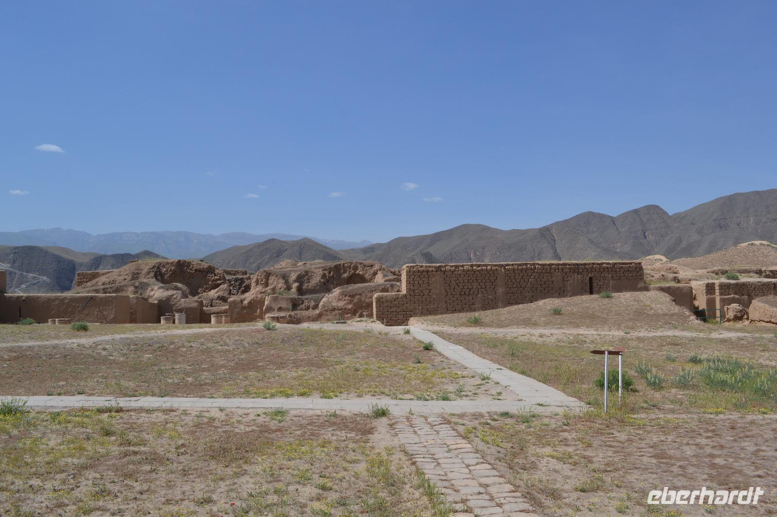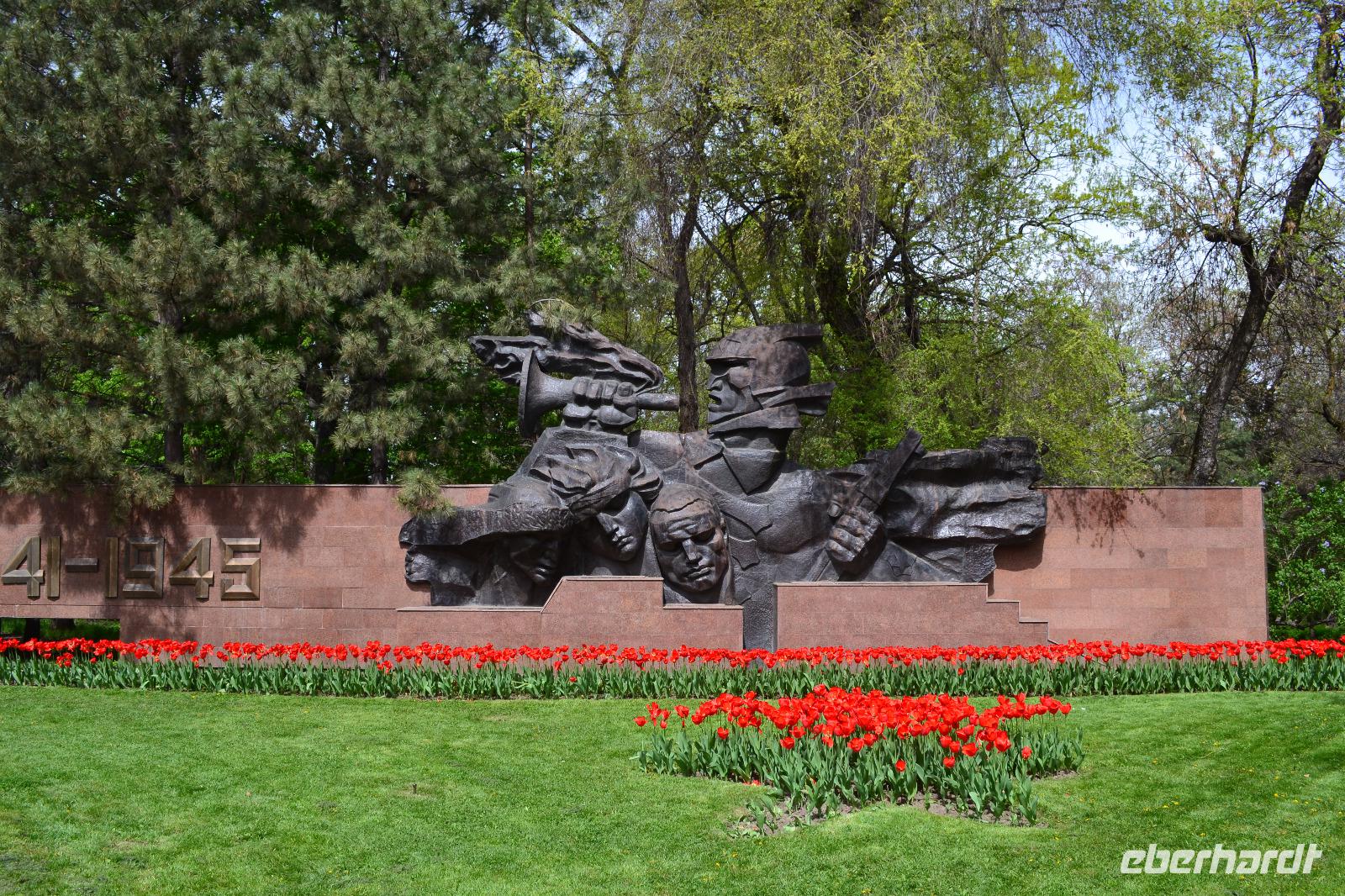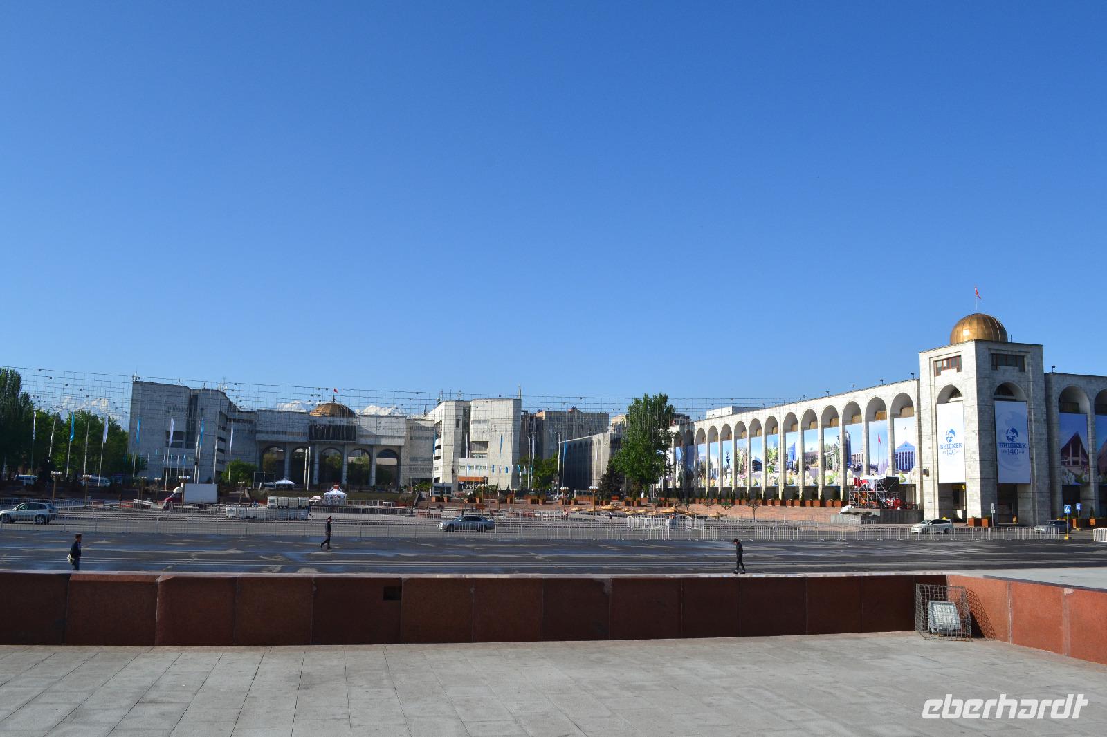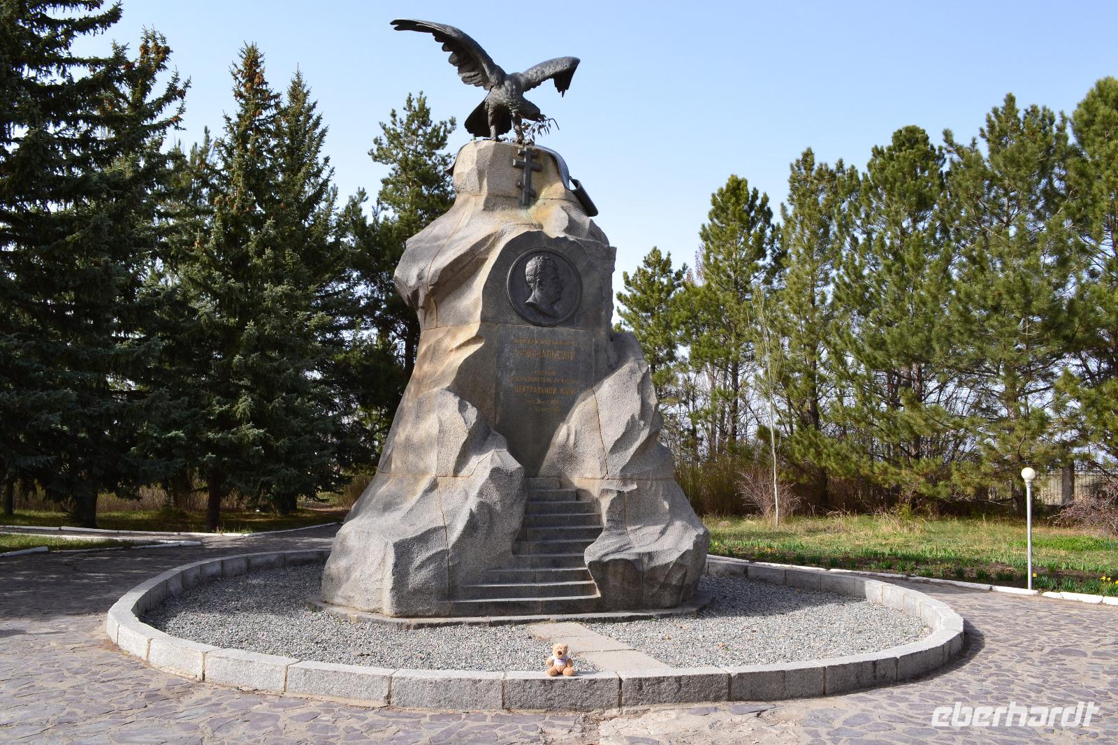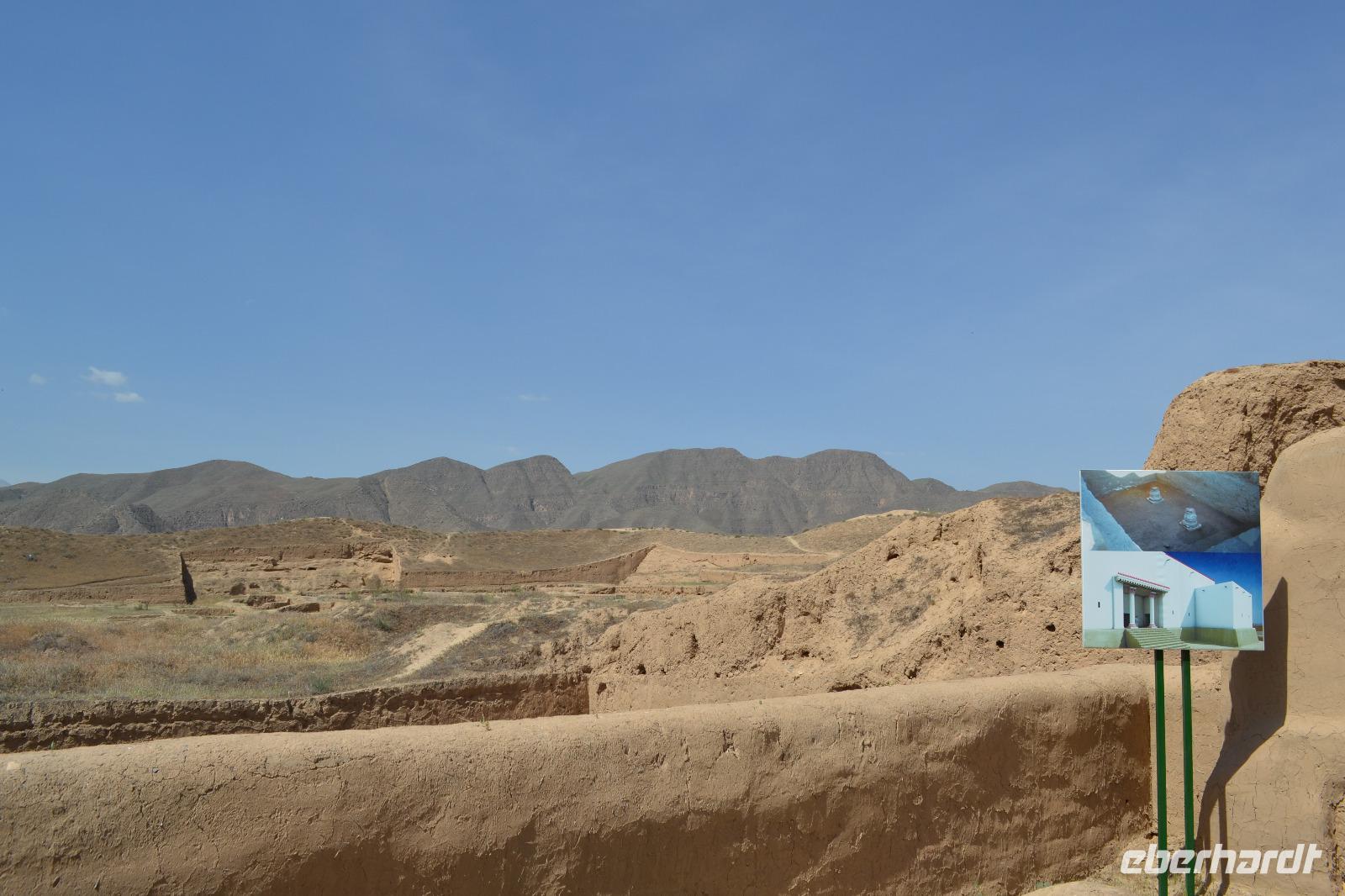 Am Vormittag führt uns Lena durch ihre Heimatstadt Bishkek. Während wir über den Ala-Too-Platz, den Alten Platz und durch den Eichenpark bummeln, erzählt uns Lena von den Revolutionen 2005 und 2010, die Kirgisistan schwer erschütterten. Daran waren nicht zuletzt das starke ökonomische Gefälle zwischen dem Nordteil und dem Südteil des Landes sowie die patriarchalischen Clanstrukturen Schuld. Nach der Stadtbesichtigung fahren wir zurück nach Kasachstan. Auch diesmal geht der Grenzübertritt - von einer einzigen längeren Kofferkontrolle abgesehen - relativ unkompliziert vonstatten. Zurück in Kasachstan folgen wir dem Grenzverlauf in Richtung Westen bis nach Taras. Am Fluss Talas halten wir kurz an, denn hier in der Nähe fand 761 n. Chr. eine schicksalhafte Schlacht zwischen Chinesen und Arabern statt. Der Sieg der Araber leitete letztendlich die Vorherrschaft des Islam in Zentralasien ein. Unser Hotel in Taras erreichen wir am Nachmittag. Bis zum Abendessen ist noch etwas Zeit, weshalb Lena und ich einen Spaziergang zu einem Aussichtsturm anbieten, von dem man einen Blick über die Stadt und die benachbarten Ausgrabungsstätten hat. Die alte Karawanenstadt mit einer Geschichte, die mehr als 2.000 Jahre zurückreicht, wurde im 13. Jahrhundert von den Mongolen verwüstet, und später ein paar Kilometer weiter wieder aufgebaut.