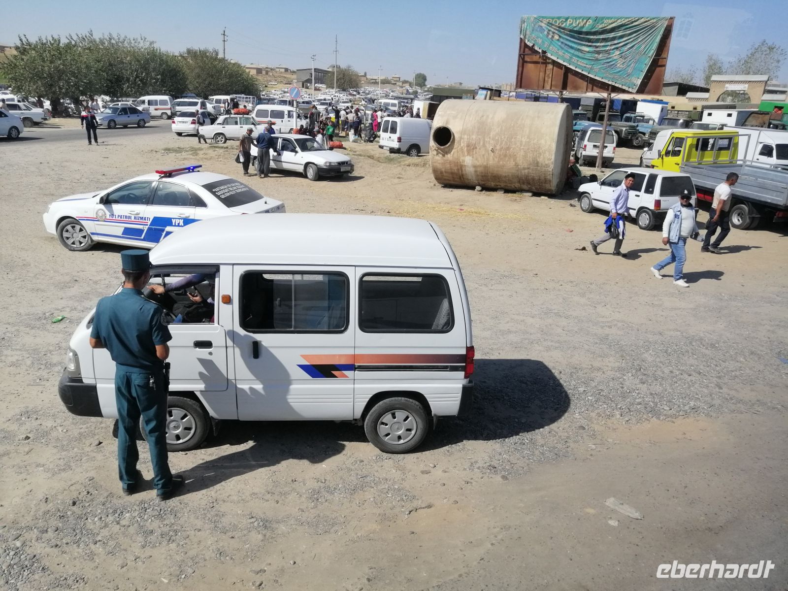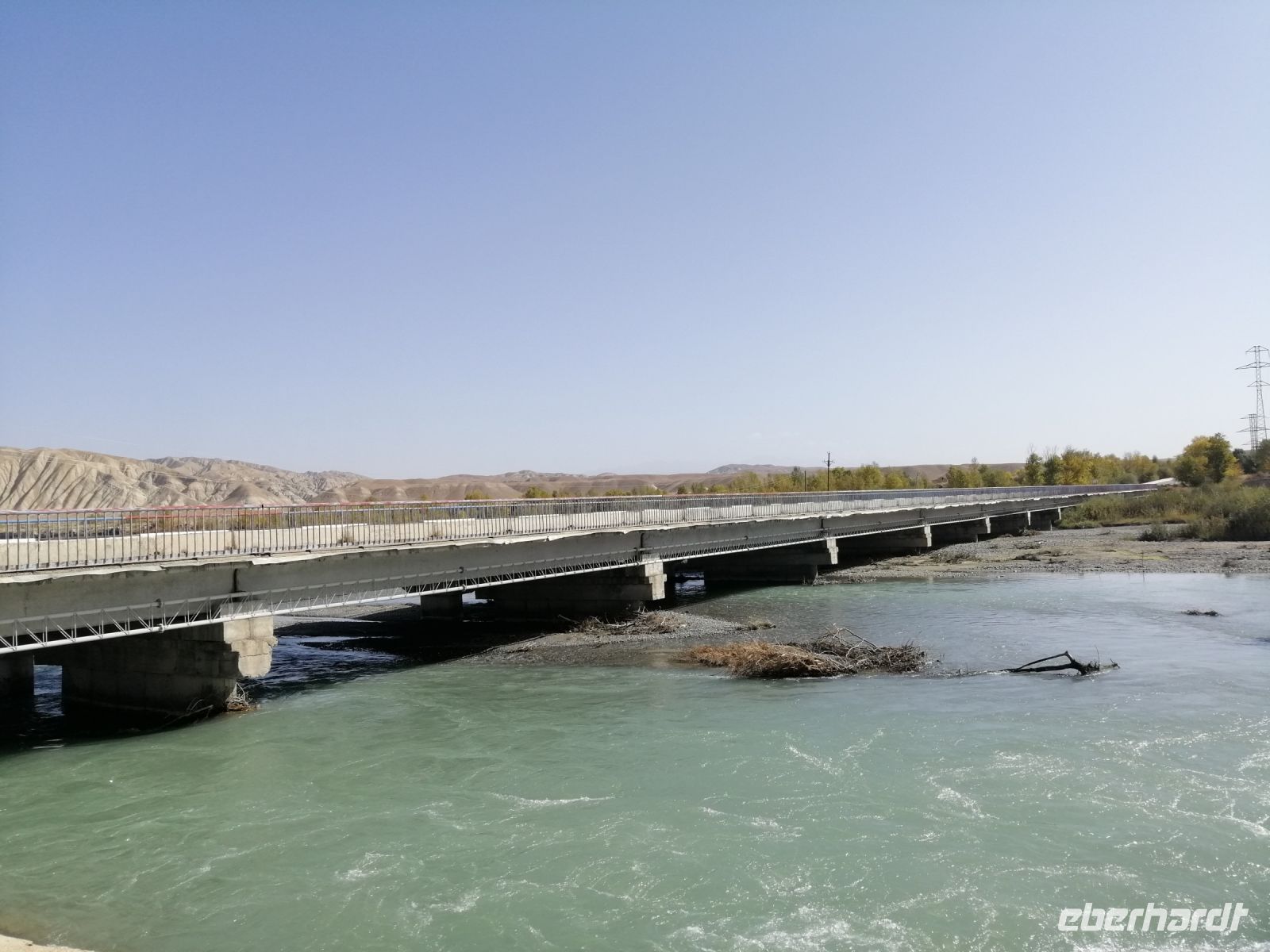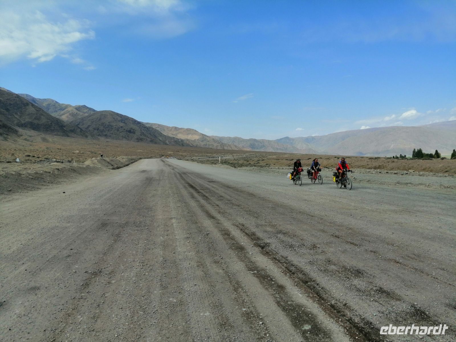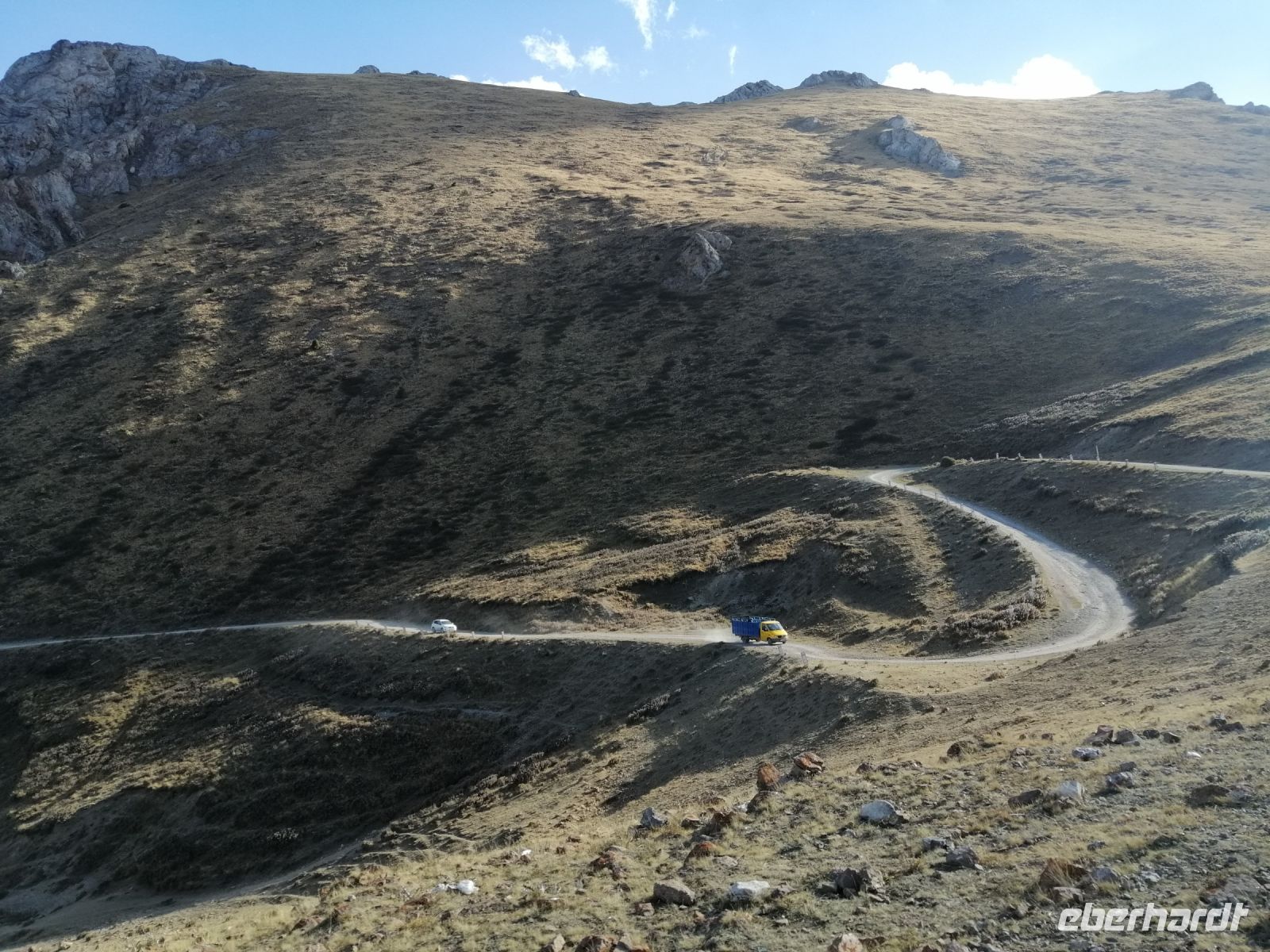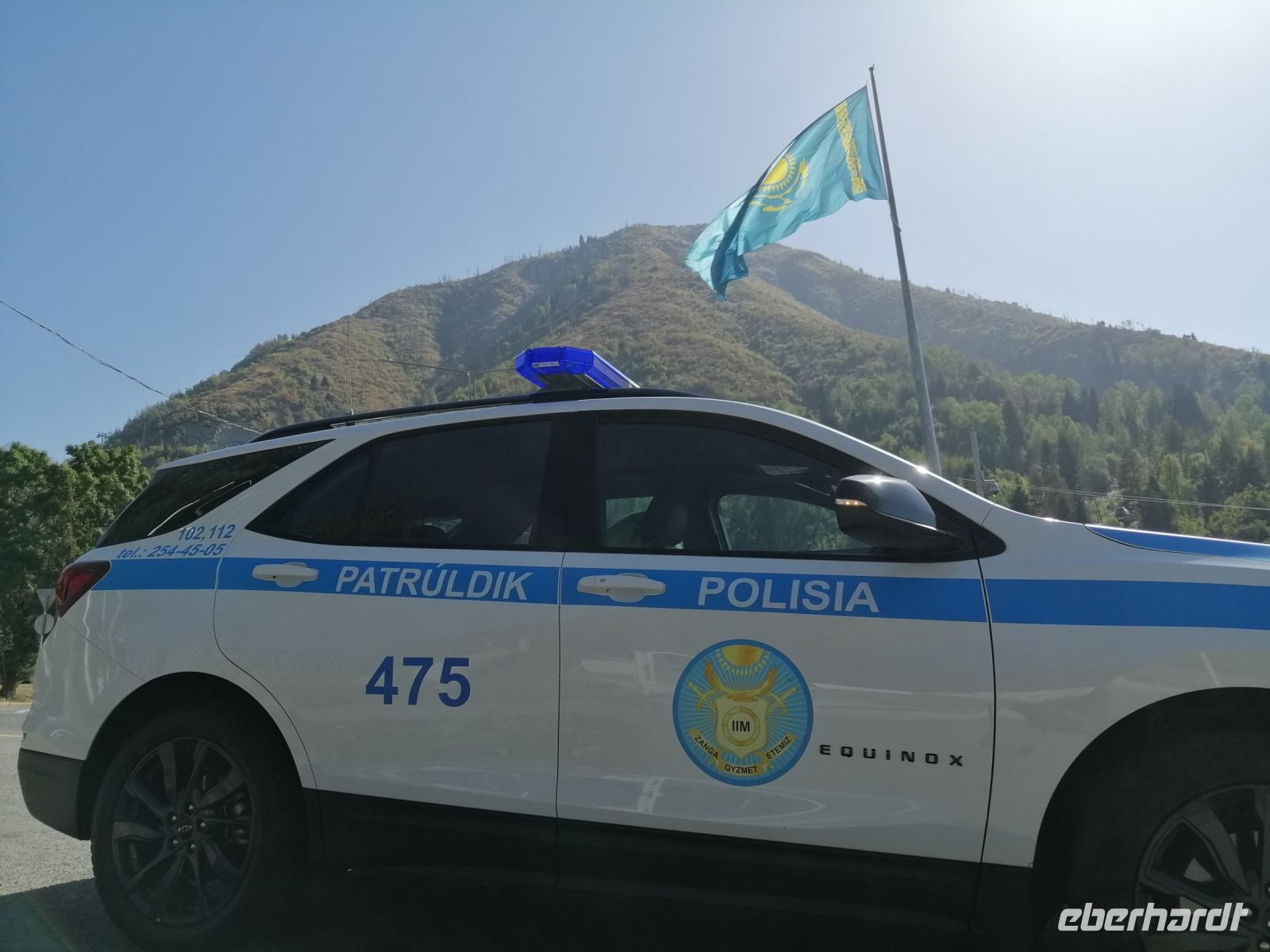 Fast die ganze Straße am Südufer des Issyk Kul-Sees wurde neu gebaut: die Freude für künftige Reisegruppen, motivierte uns die Strapazen der Fahrt nicht ernst zu nehmen. Mit einer kurzen Zwischen-Pause an der Ortotokoi-Talsperre, erreichten wir gegen 12 Uhr die Stadt Kotschkor, wo wir in kleinere Mercedes-Sprinter umstiegen und Richtung Kalmak-Aschuu-Pass starteten.