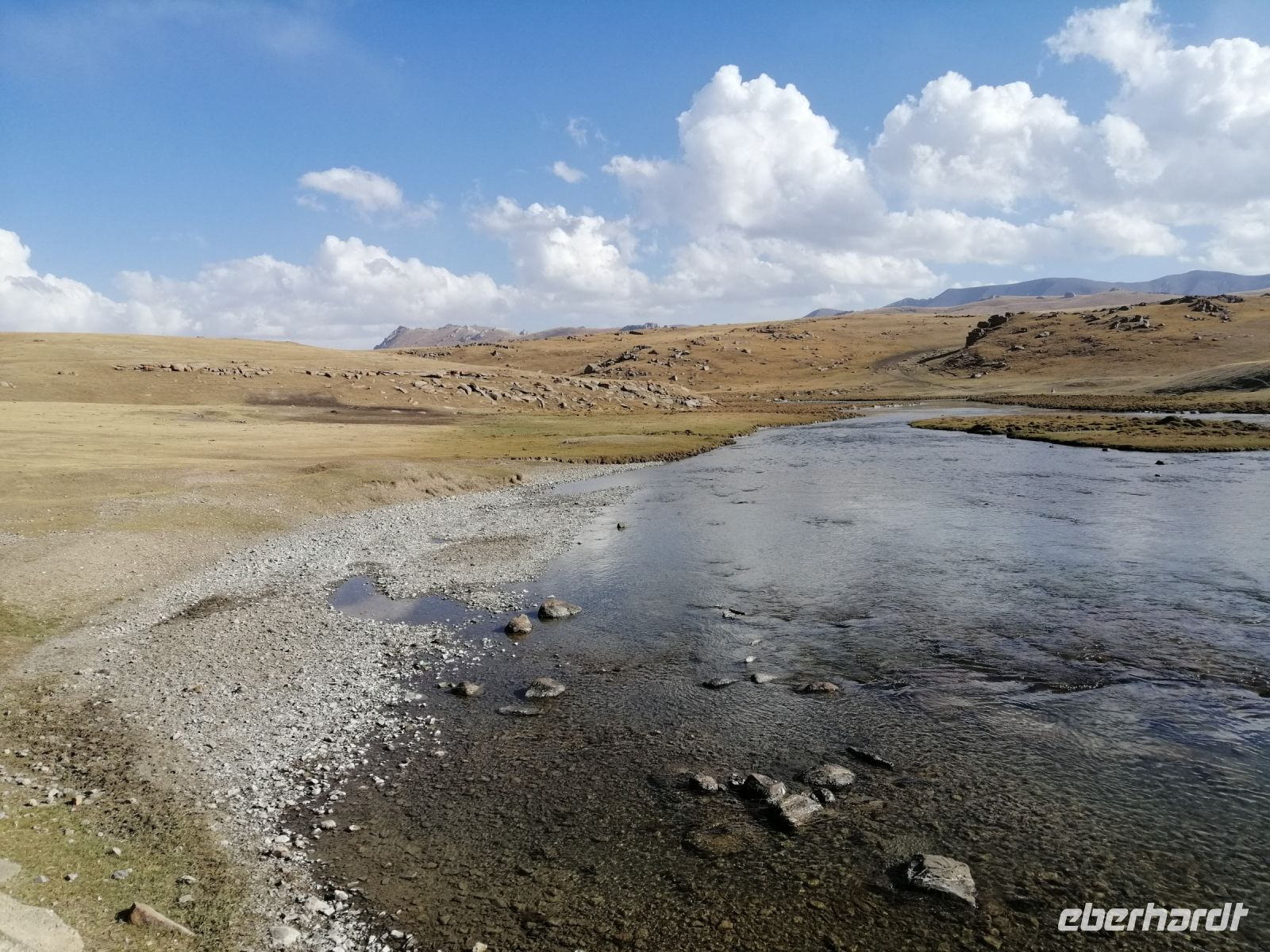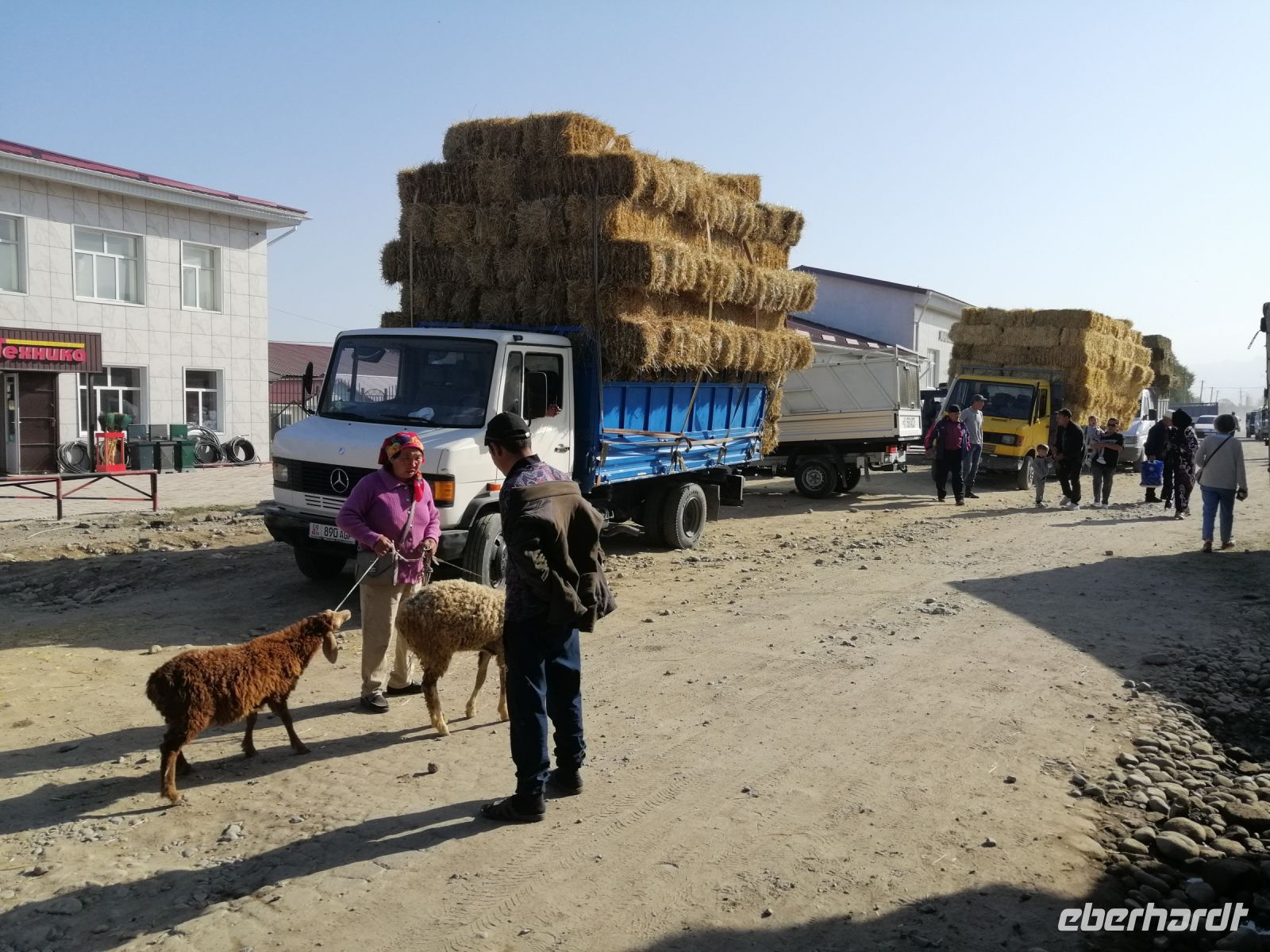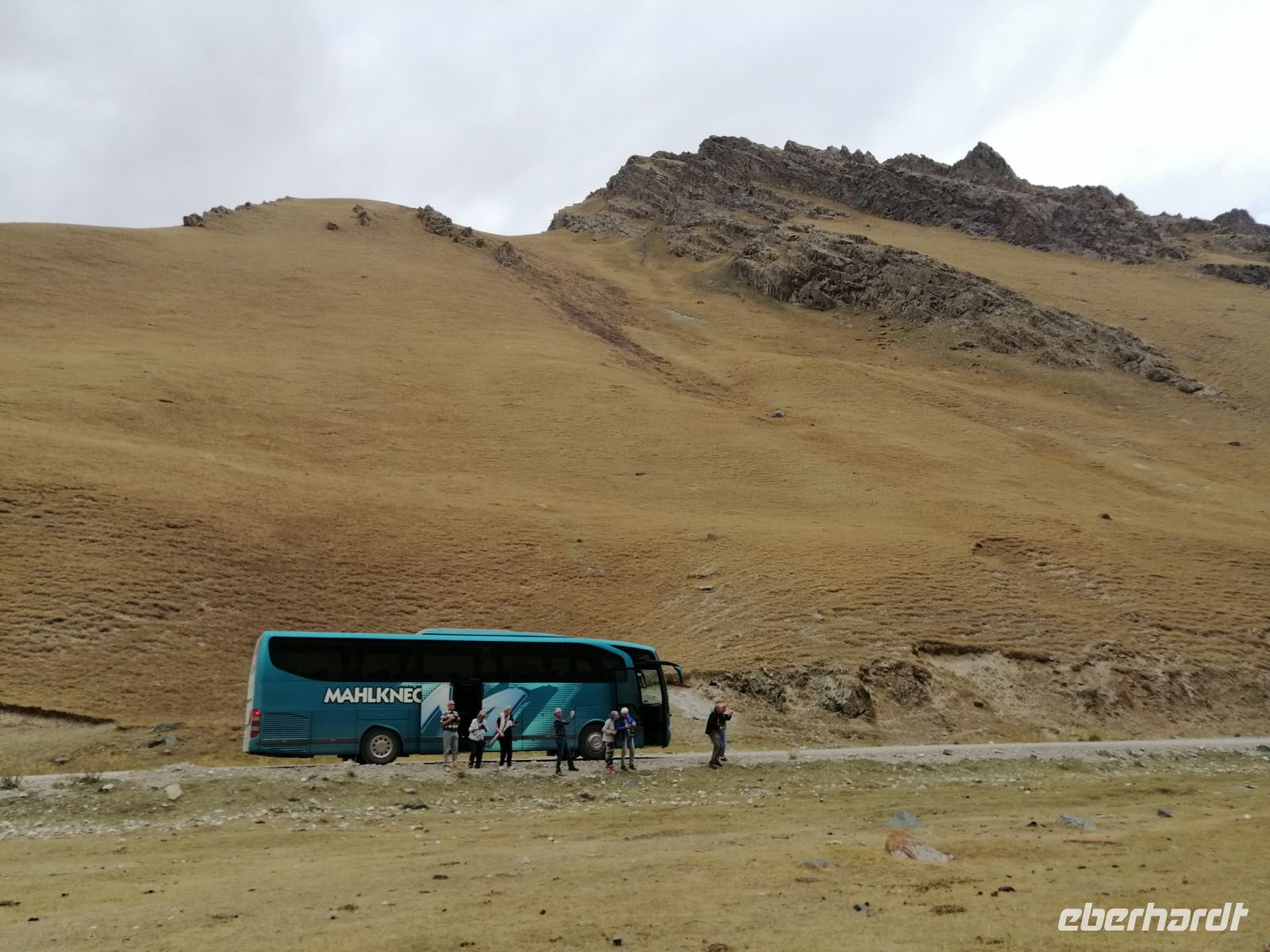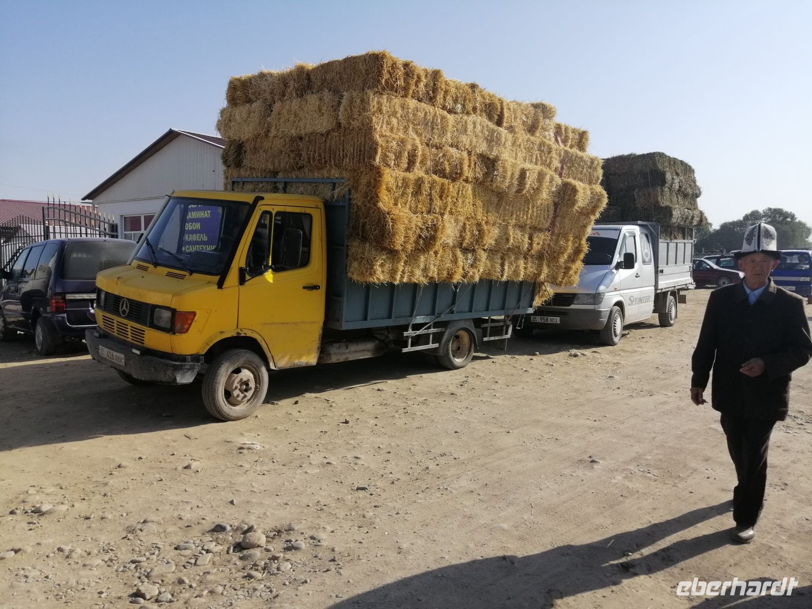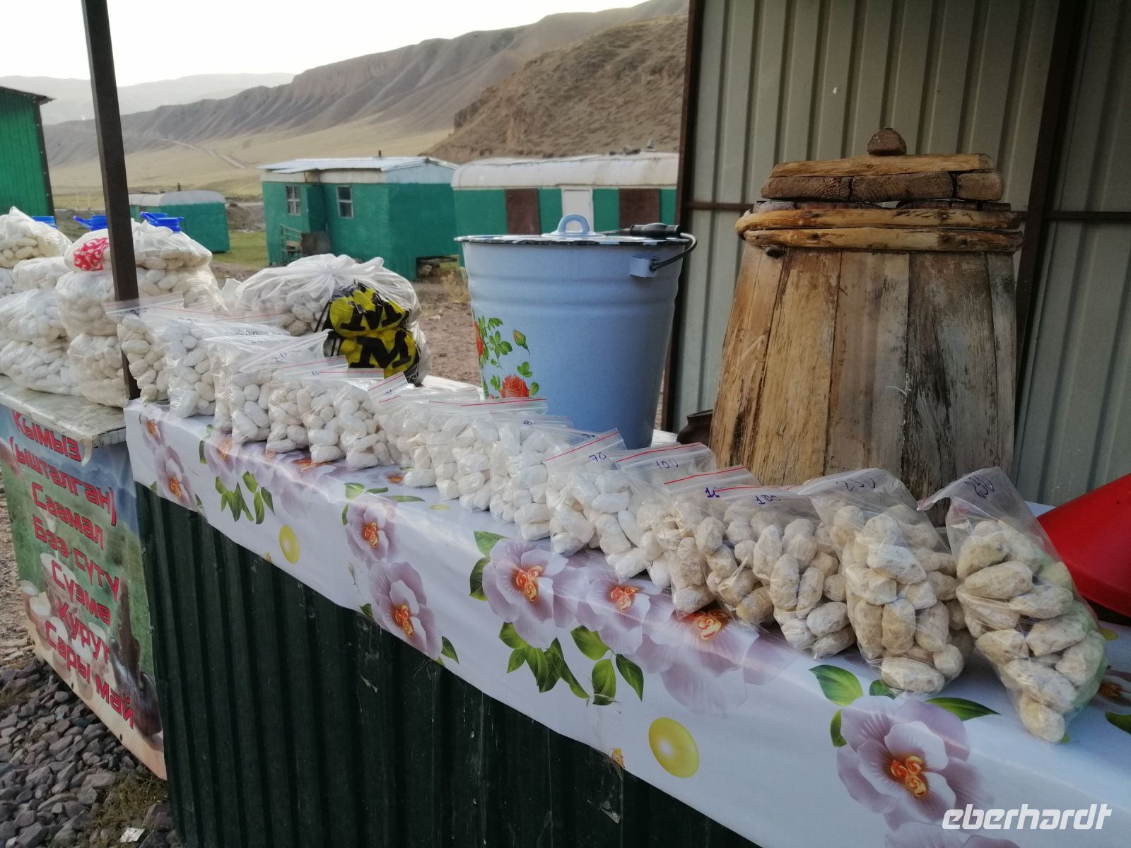 Fast die ganze Straße am Südufer des Issyk Kul-Sees wurde neu gebaut: die Freude für künftige Reisegruppen, motivierte uns die Strapazen der Fahrt nicht ernst zu nehmen. Mit einer kurzen Zwischen-Pause an der Ortotokoi-Talsperre, erreichten wir gegen 12 Uhr die Stadt Kotschkor, wo wir in kleinere Mercedes-Sprinter umstiegen und Richtung Kalmak-Aschuu-Pass starteten.