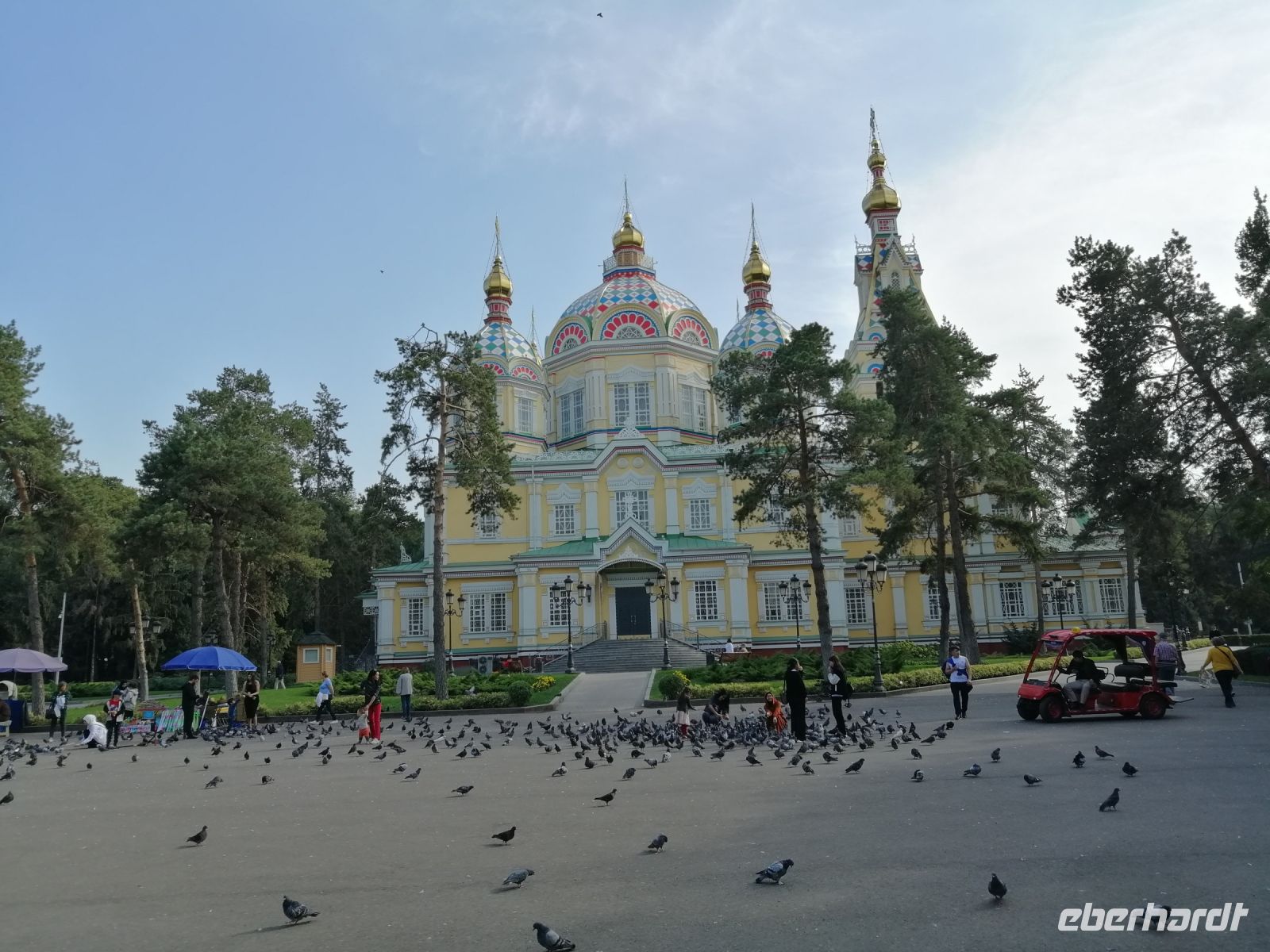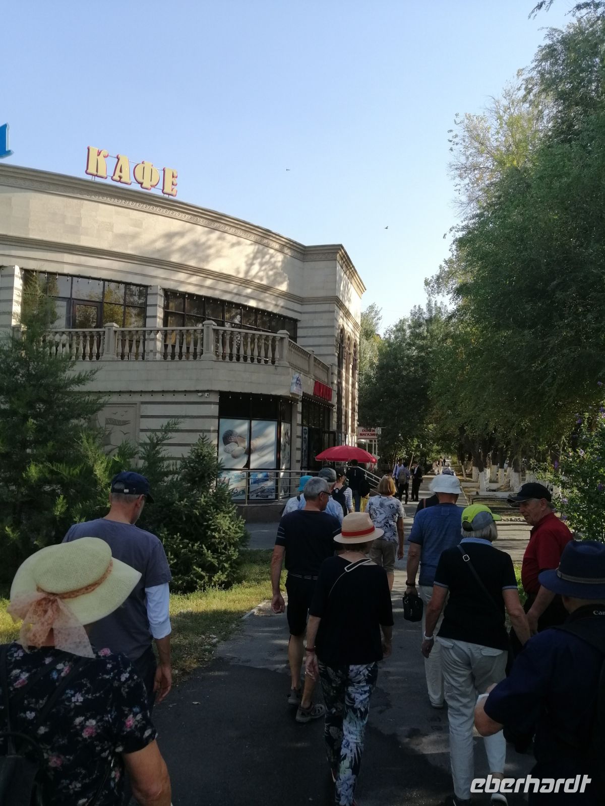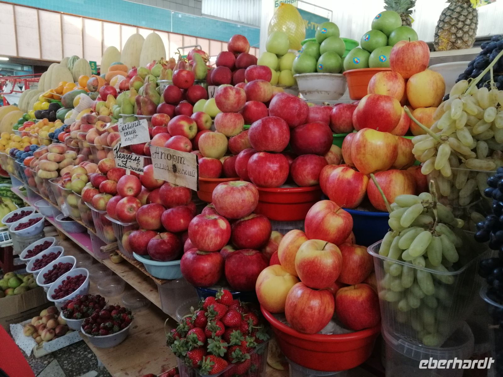 Nachmittag unternahmen wir einen Stadtrundgang und besichtigten im Panfiloff-Park die wunderschöne russisch-orthodoxe Holzkirche des Architekten Zenkow. Anschließend bummelten wir auf dem Grünen-Markt: einem Basar, mit einem unglaublichen Angebot an Obst und Gemüse aber auch an Trockenfrüchten und Fleisch.