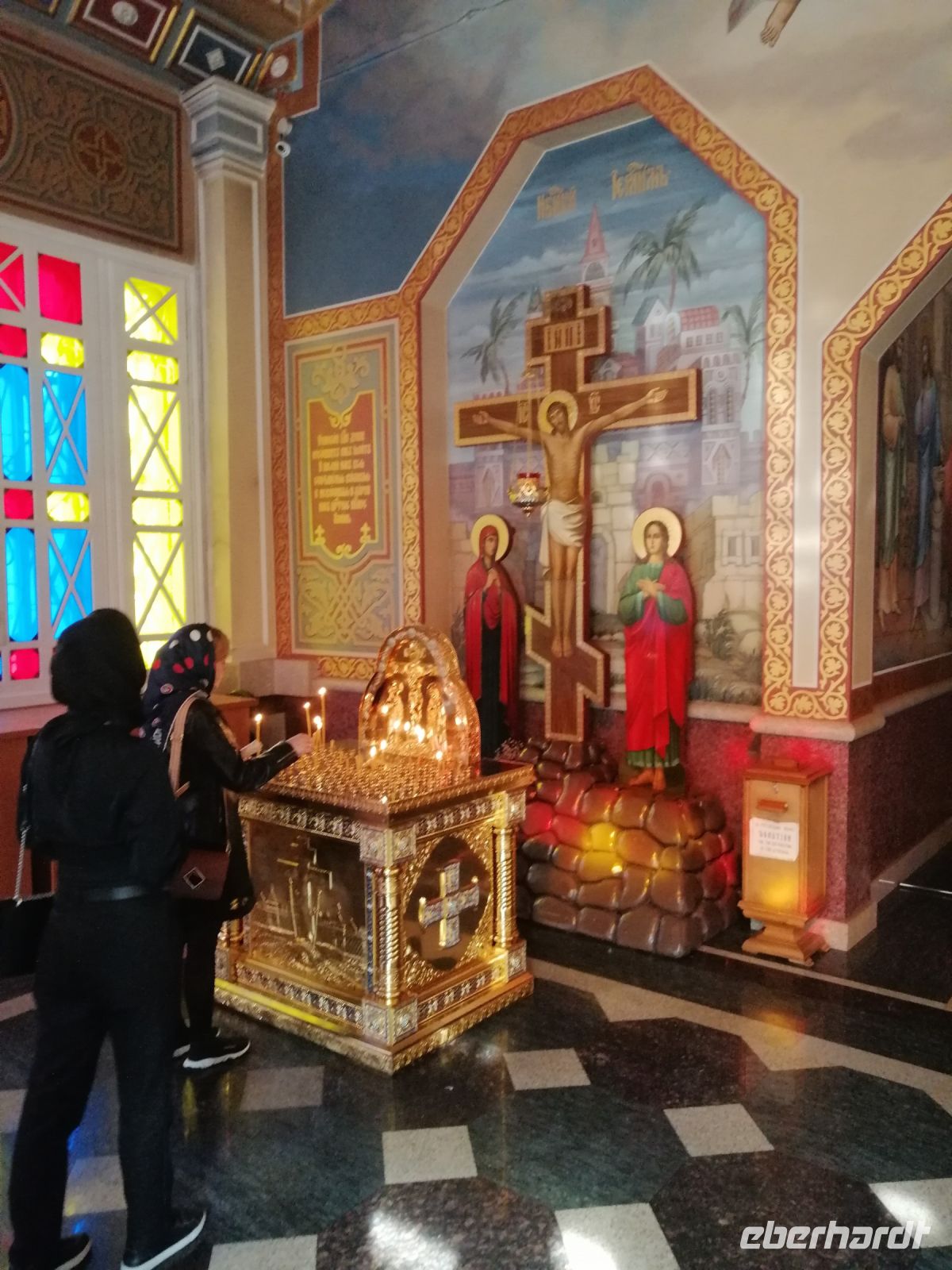 Danach besichtigten wir die russisch-orthodoxe Kirche. Die Orthodoxe Kirche der Heiligen Dreifaltigkeit wurde in den Jahren 1894-1895 an der Stelle einer alten Backsteinkirche errichtet, die 1876 durch ein Erdbeben zerstört wurde. Innerhalb der Mauern der Orthodoxen Kirche der Heiligen Dreifaltigkeit befinden sich die Reliquien der heiligen Märtyrer - Tarachus, Probus und Andronicus, sowie die Ikone der Gottesmutter von Tichwin (Tichwinskaja), die vor etwa anderthalb Jahrhunderten in Athen gemalt wurde und nur dank der mutigen Menschen erhalten blieb, die die wunderbare Ikone vor den Zerstörern des frühen zwanzigsten Jahrhunderts versteckten.