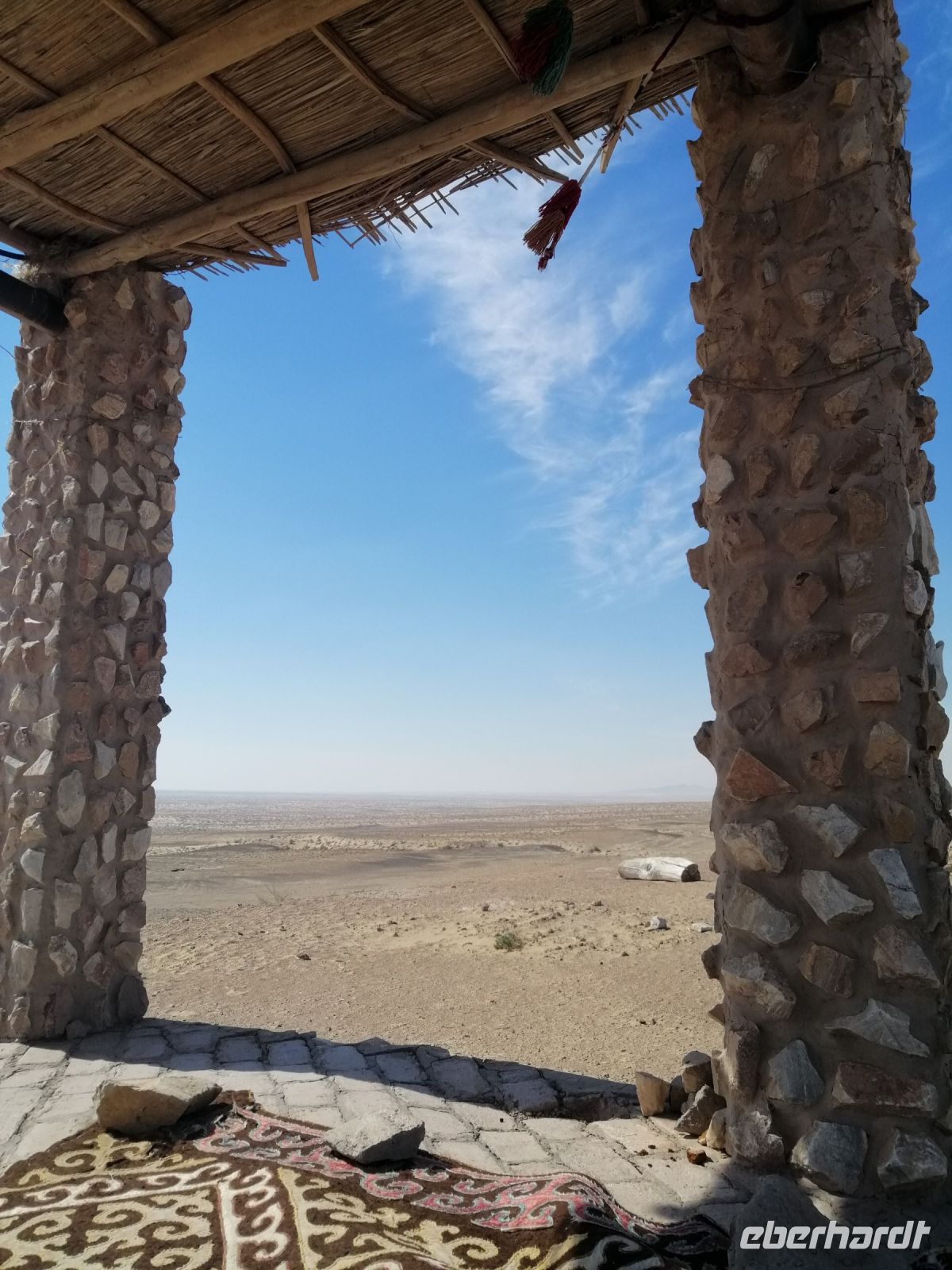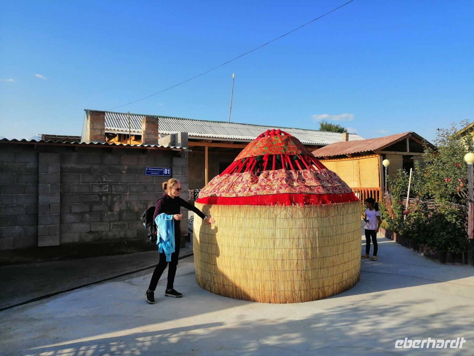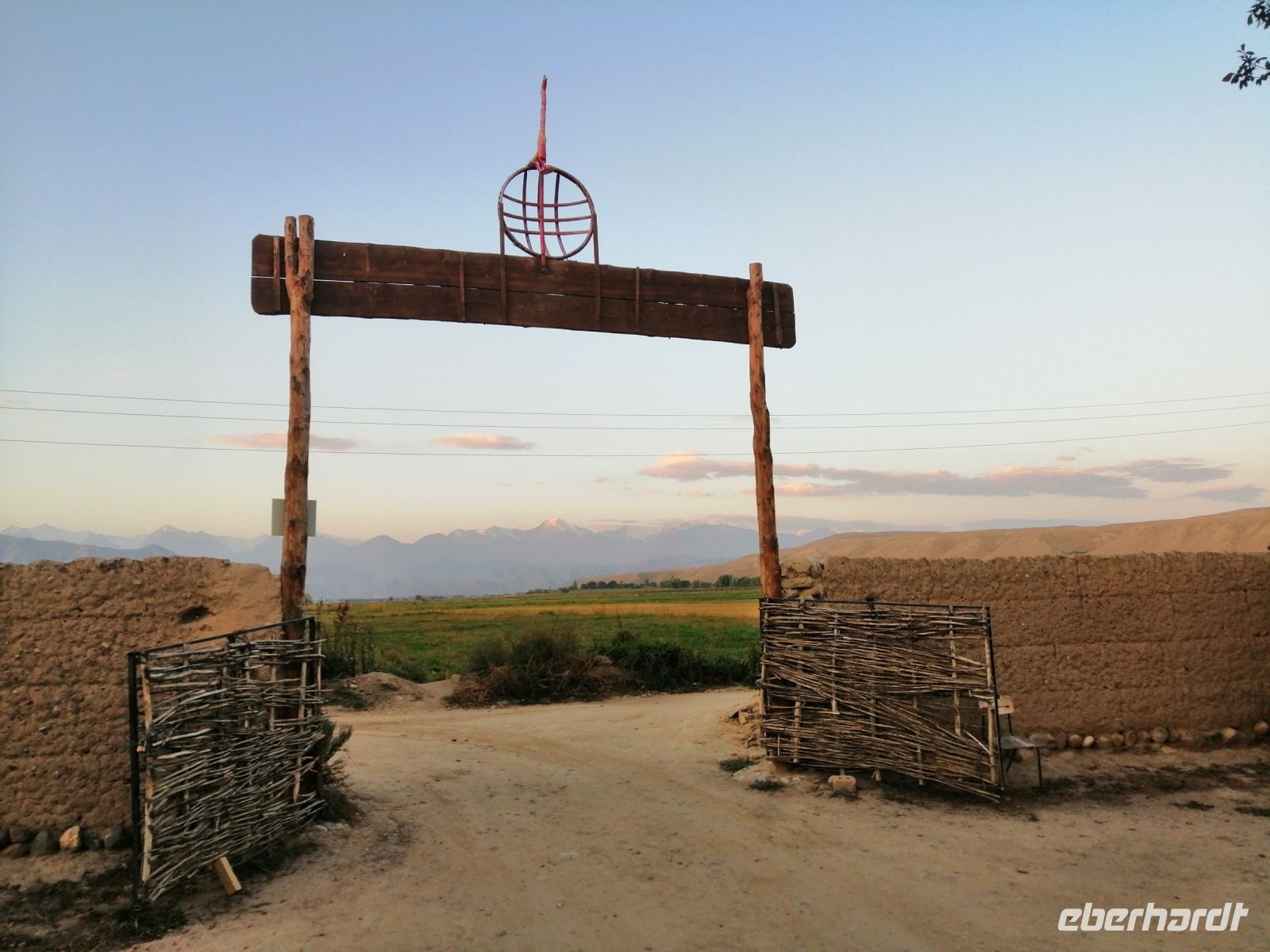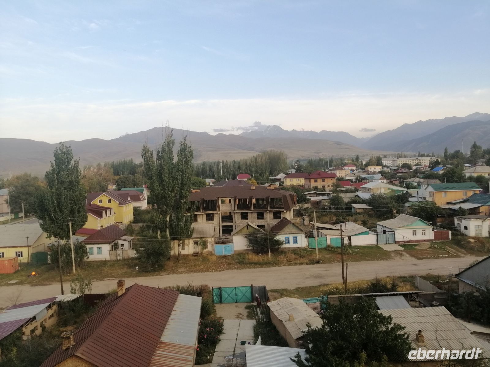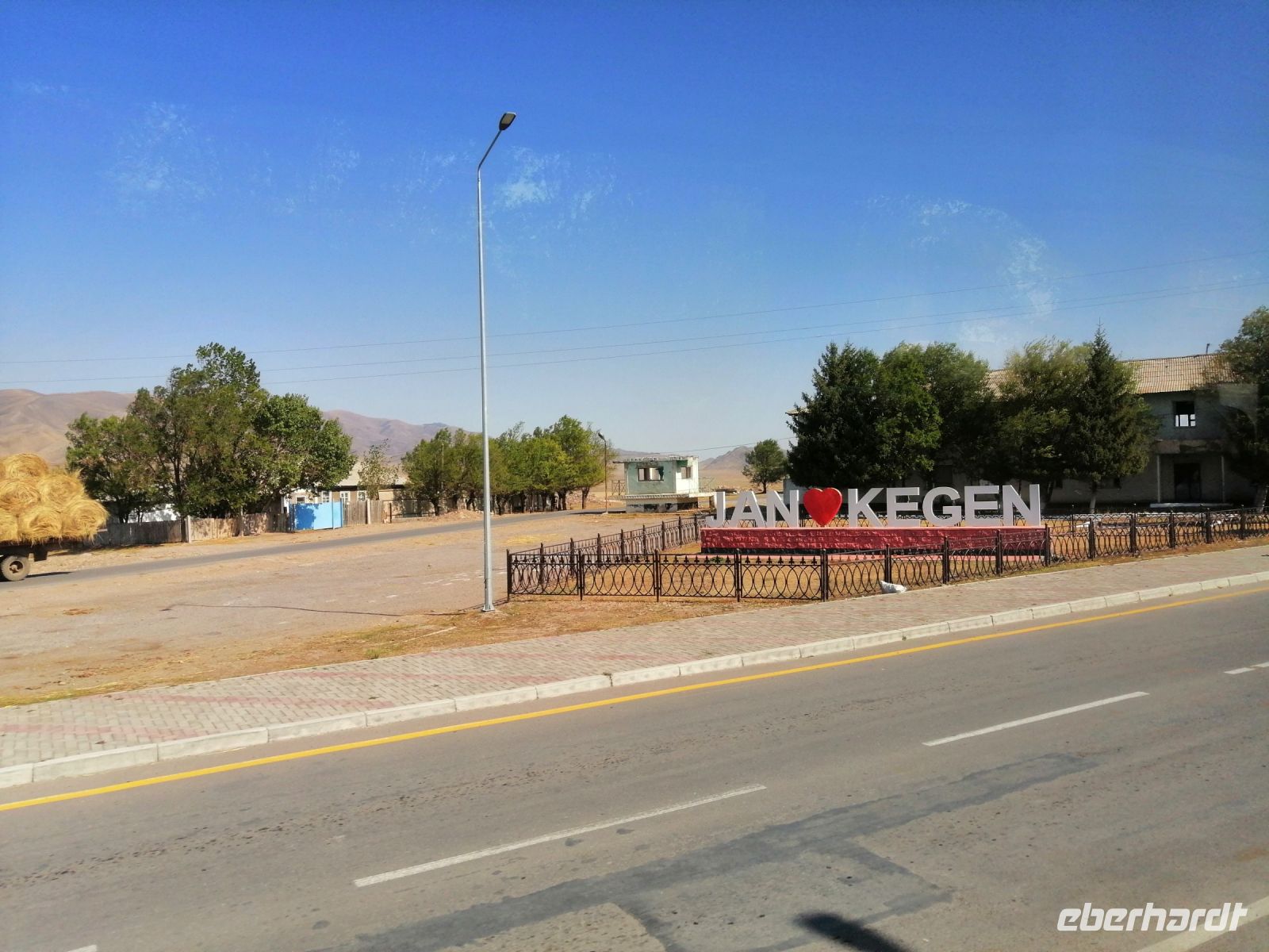 Gegen 8 Uhr starteten wir in Almaty Richtung Charyn-Canyon. Wir fuhren durch uigurische Ortschaften und Elena informierte uns über die Bräuche der Uiguren. Ein davon sind die ständig offenen Türen entlang der ganzen Ortschaften: ein Zeichen des Willkommens seins in Erwartung, dass der Erfolg und Glück durch die offene Tür ins Haus und in die Familie rein kommen!