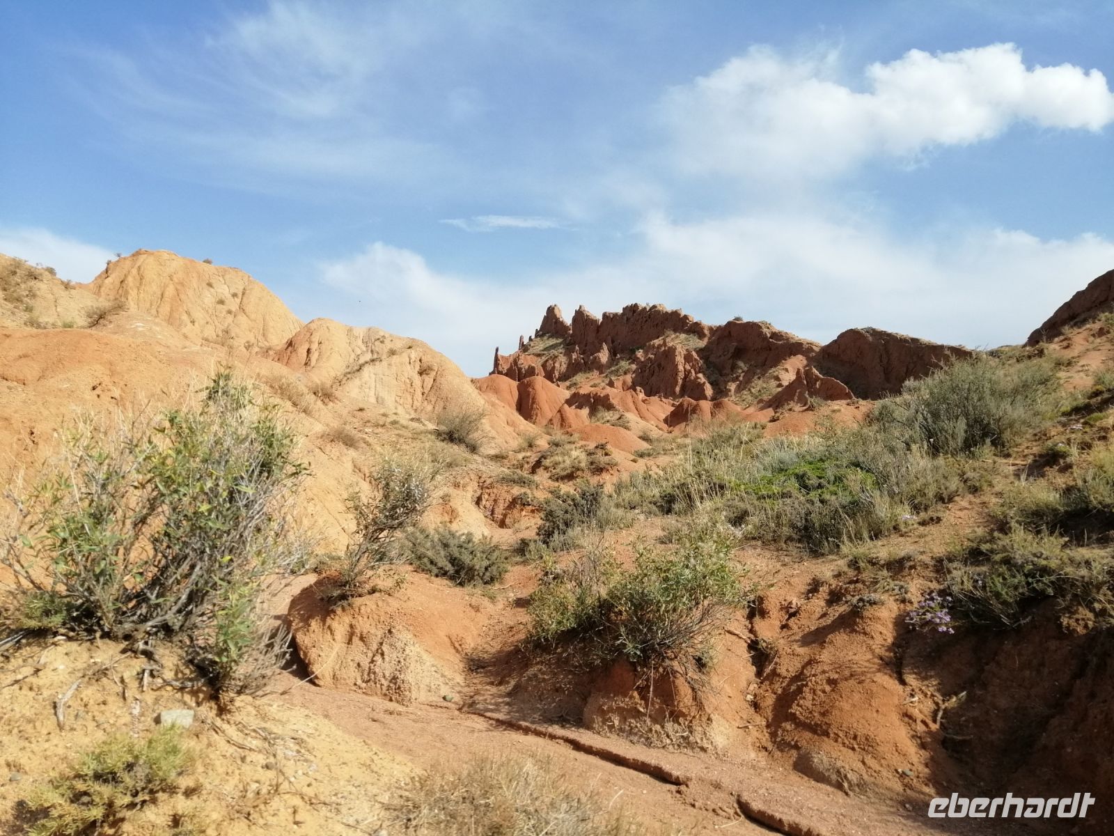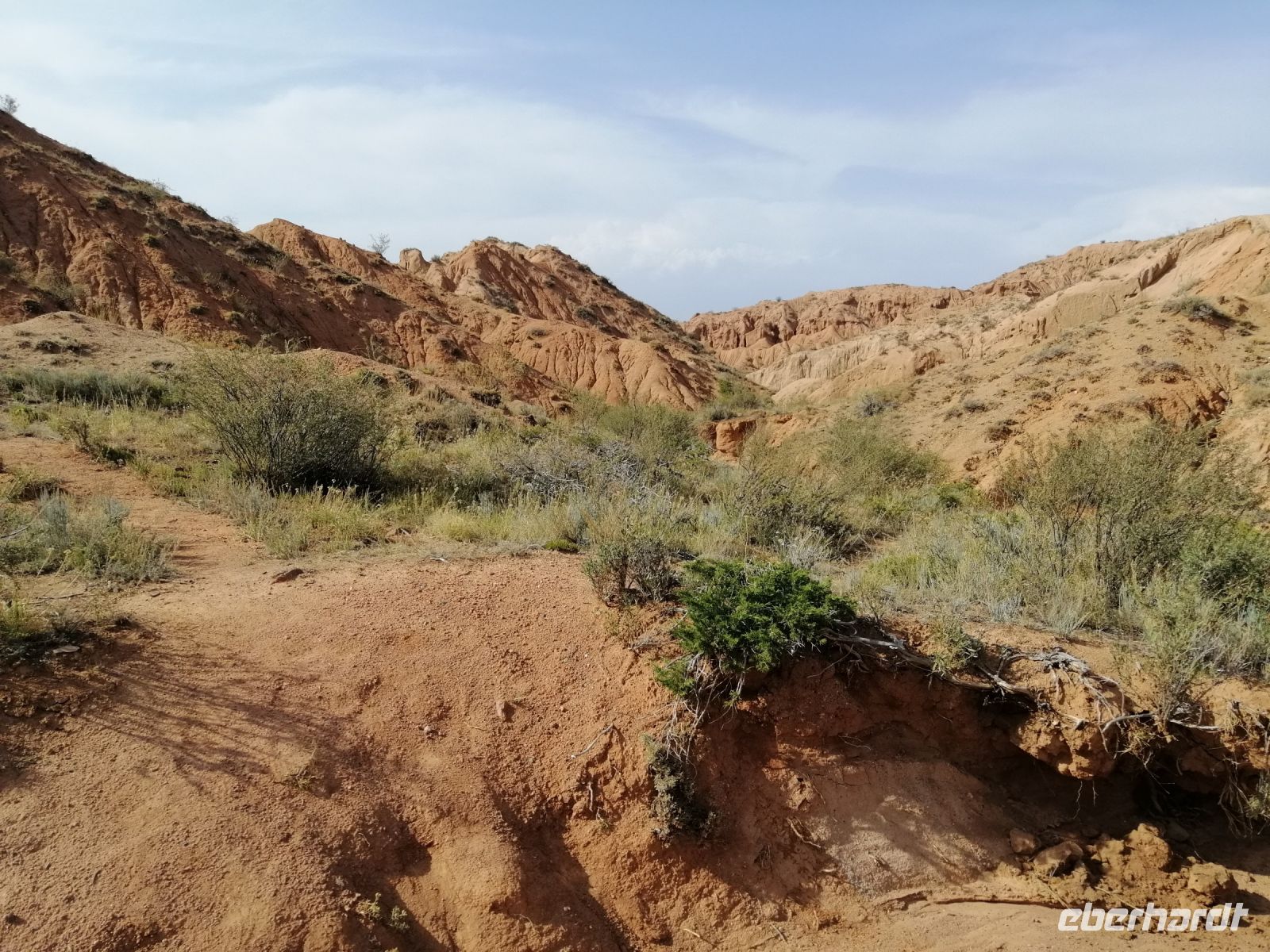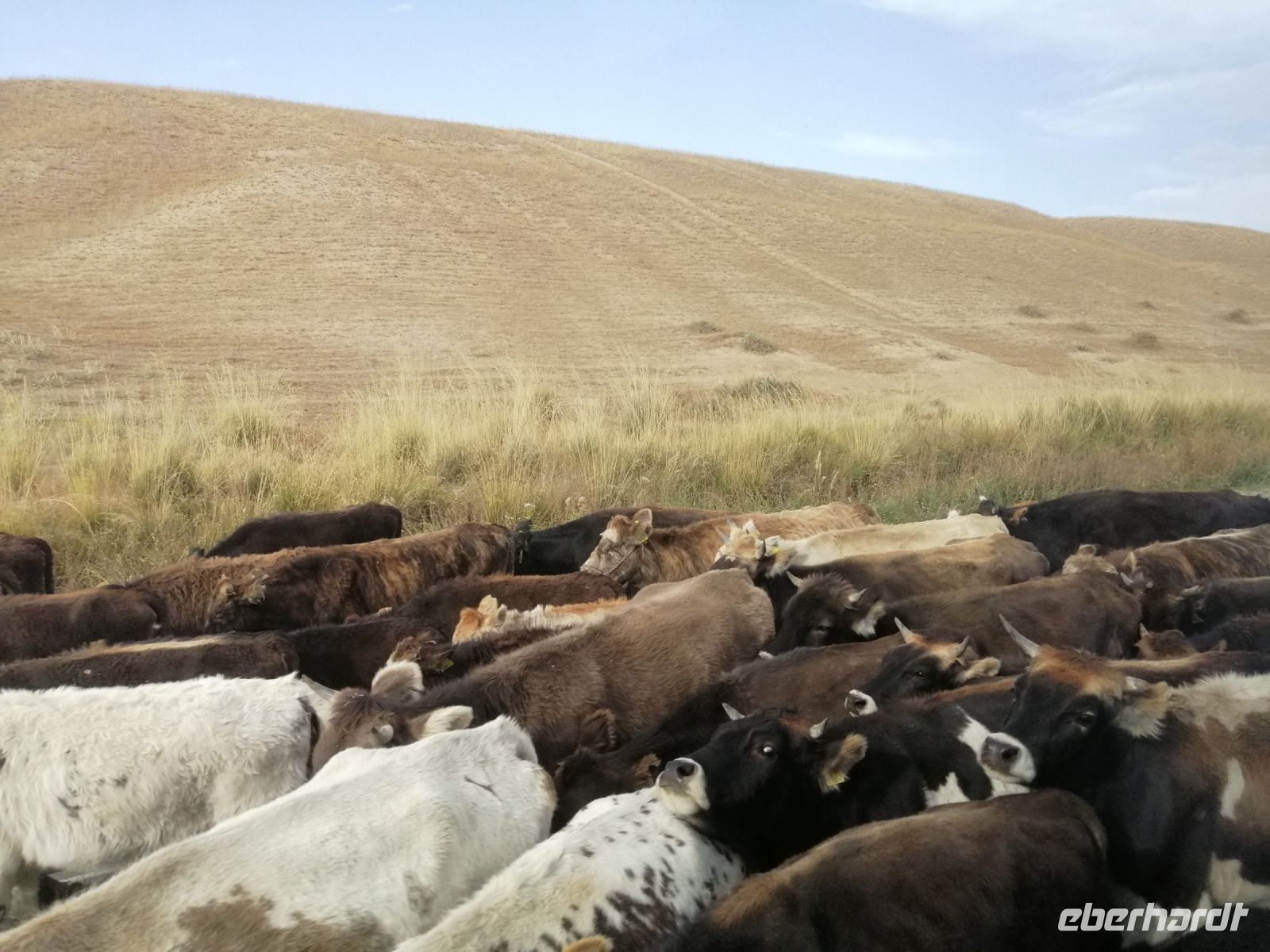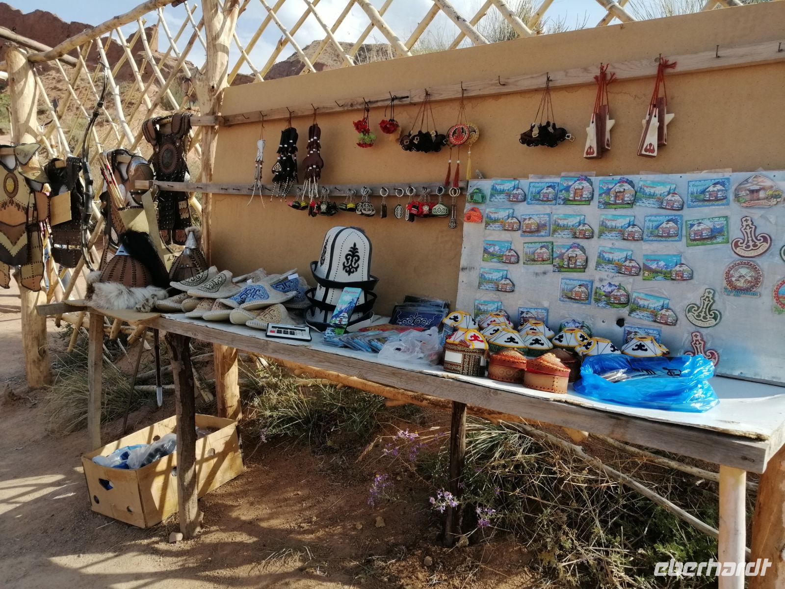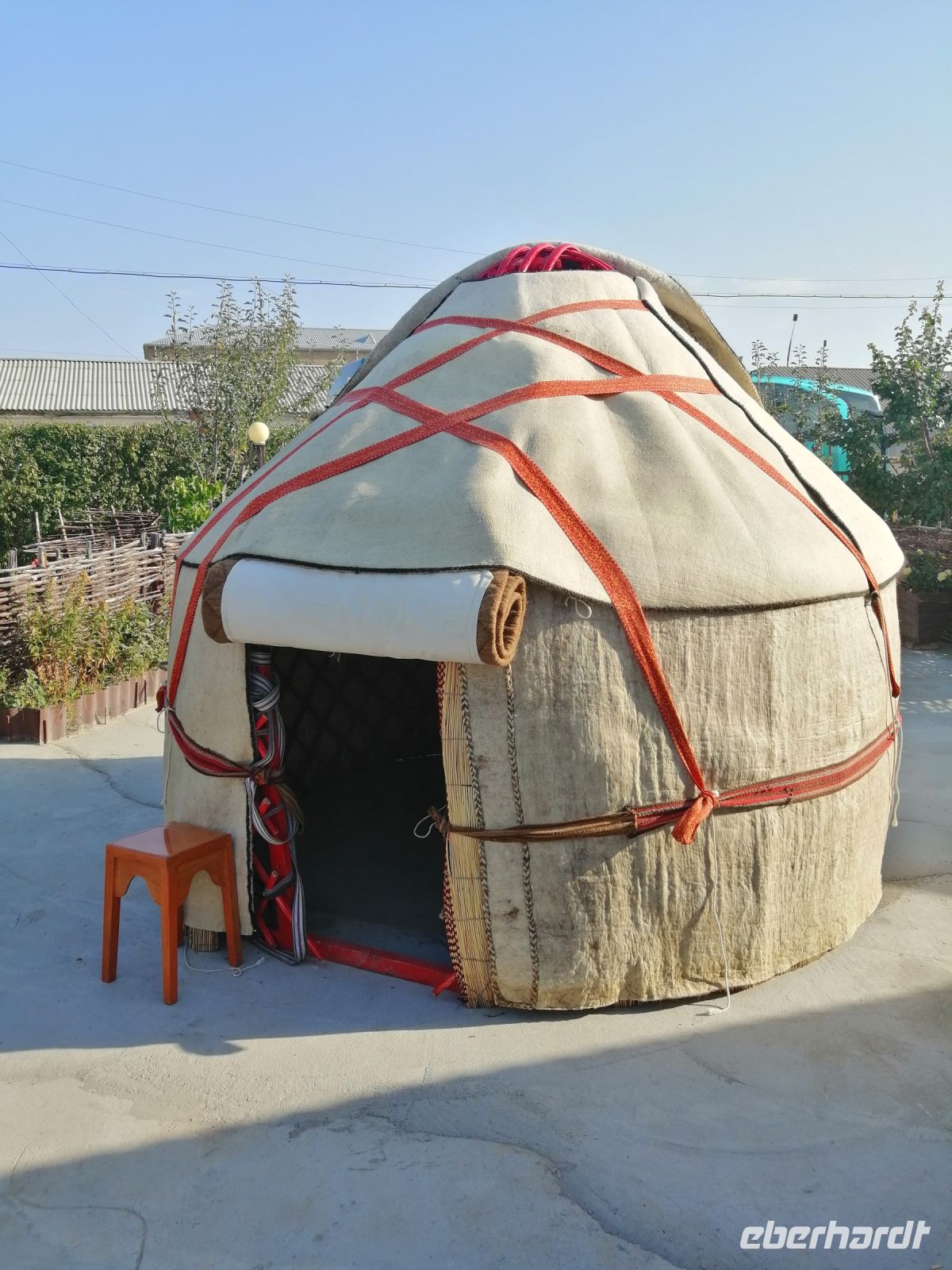 Gegen 8 Uhr starteten wir in Almaty Richtung Charyn-Canyon. Wir fuhren durch uigurische Ortschaften und Elena informierte uns über die Bräuche der Uiguren. Ein davon sind die ständig offenen Türen entlang der ganzen Ortschaften: ein Zeichen des Willkommens seins in Erwartung, dass der Erfolg und Glück durch die offene Tür ins Haus und in die Familie rein kommen!