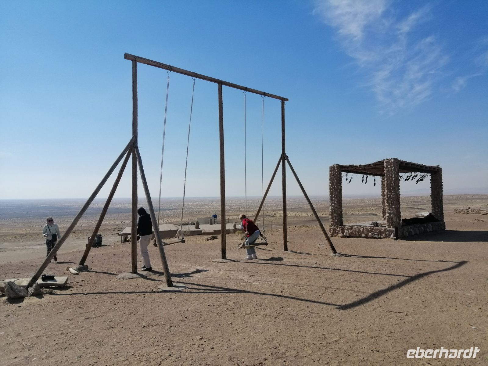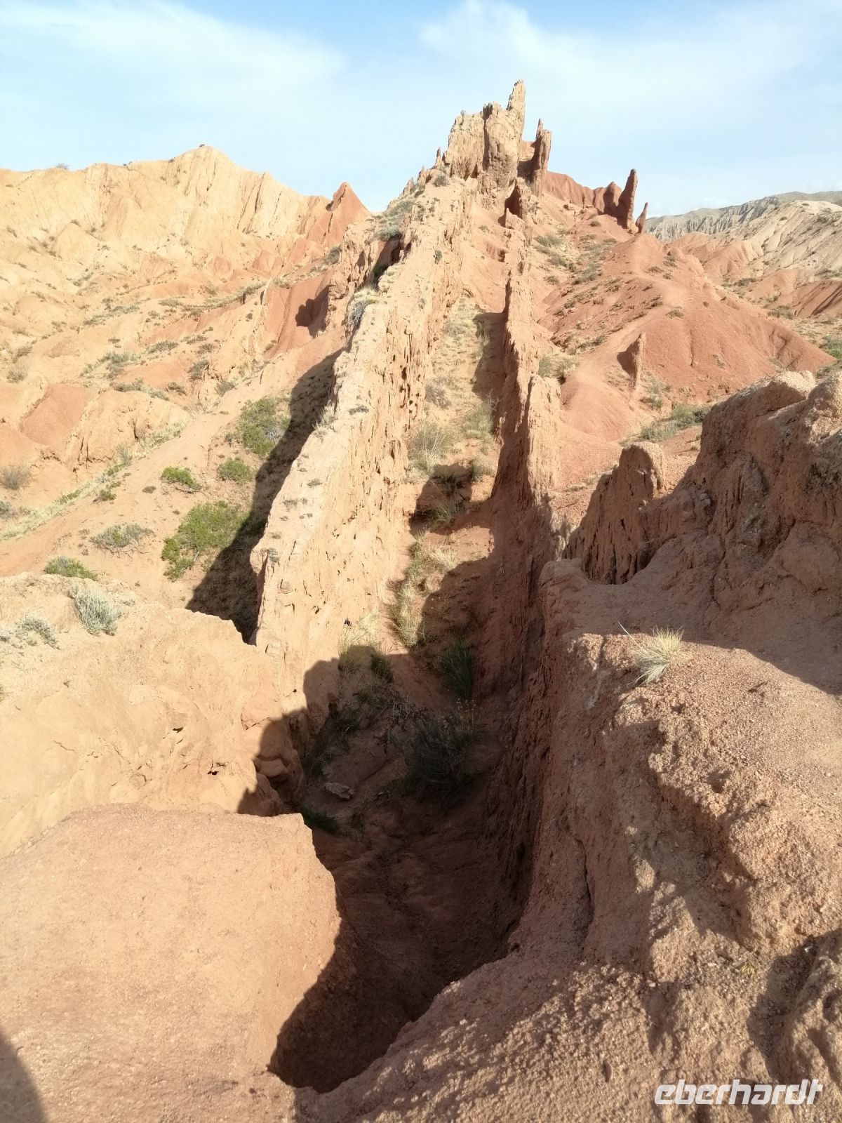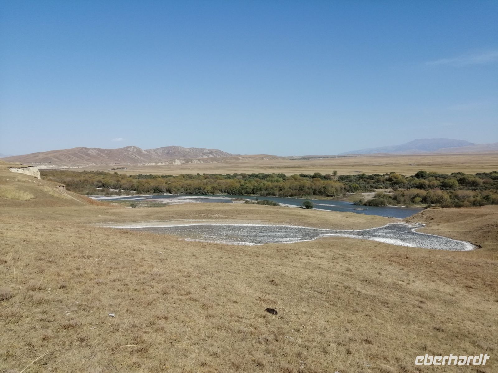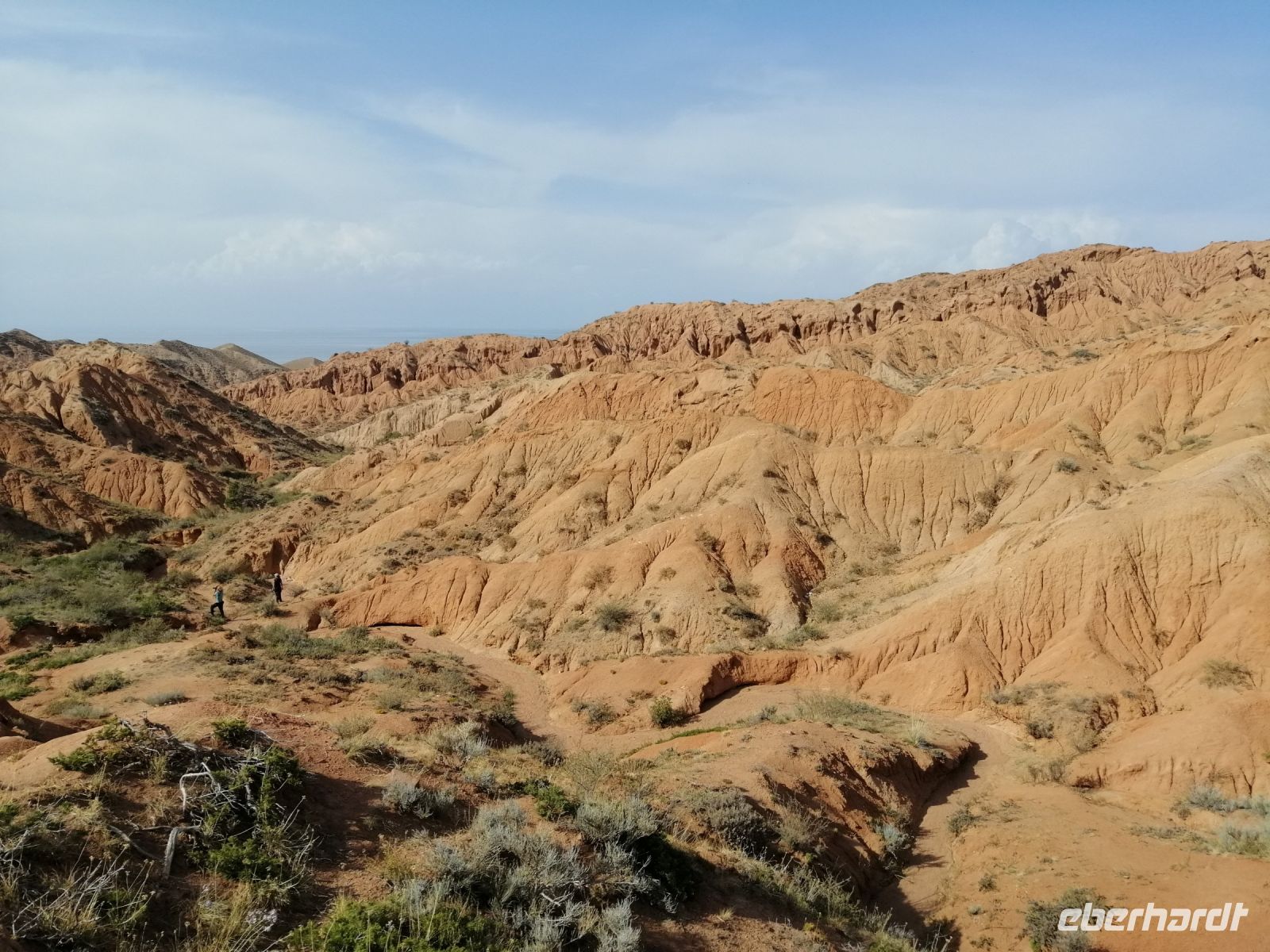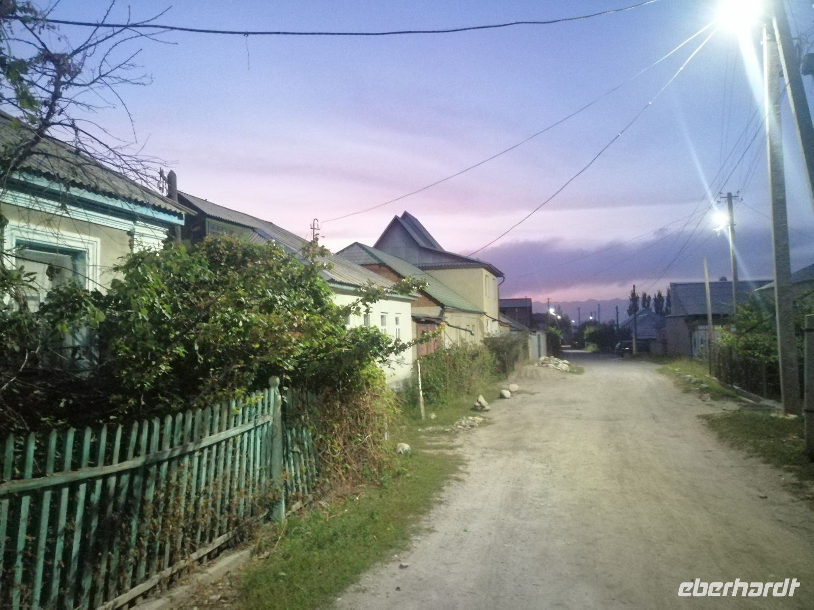 Gegen 8 Uhr starteten wir in Almaty Richtung Charyn-Canyon. Wir fuhren durch uigurische Ortschaften und Elena informierte uns über die Bräuche der Uiguren. Ein davon sind die ständig offenen Türen entlang der ganzen Ortschaften: ein Zeichen des Willkommens seins in Erwartung, dass der Erfolg und Glück durch die offene Tür ins Haus und in die Familie rein kommen!