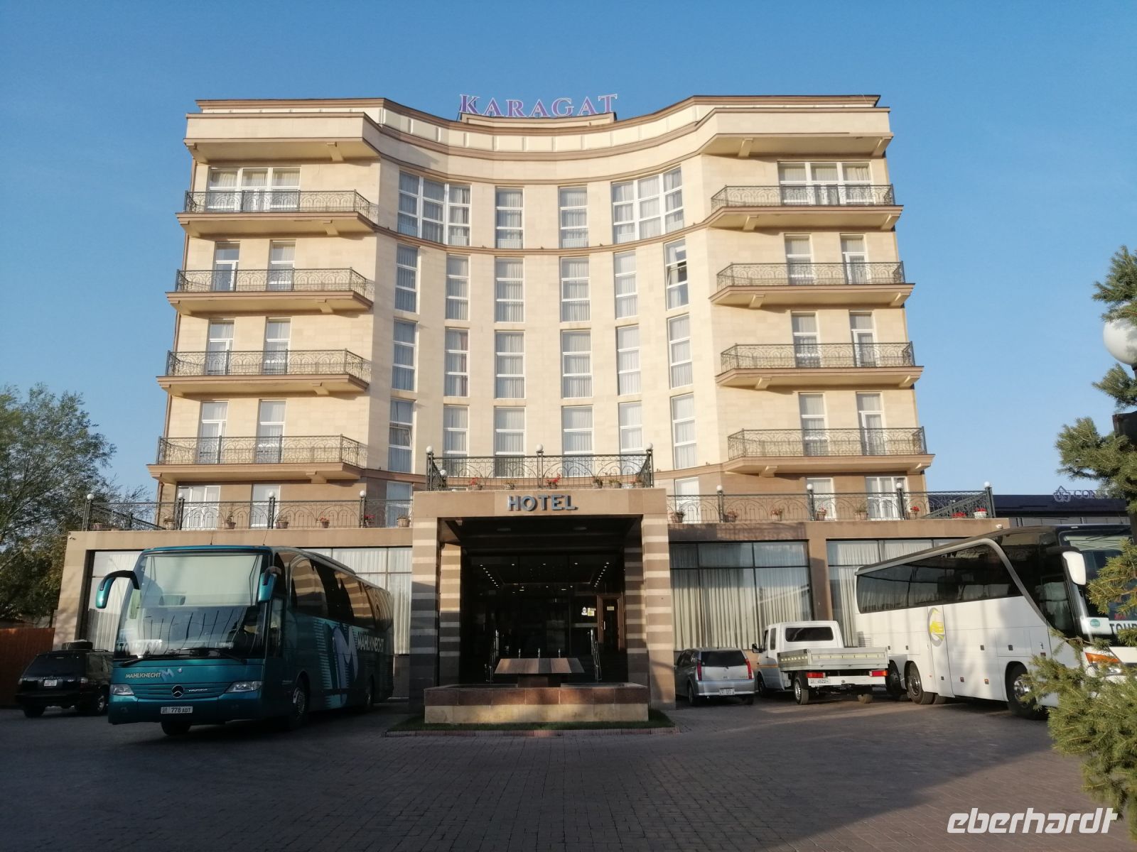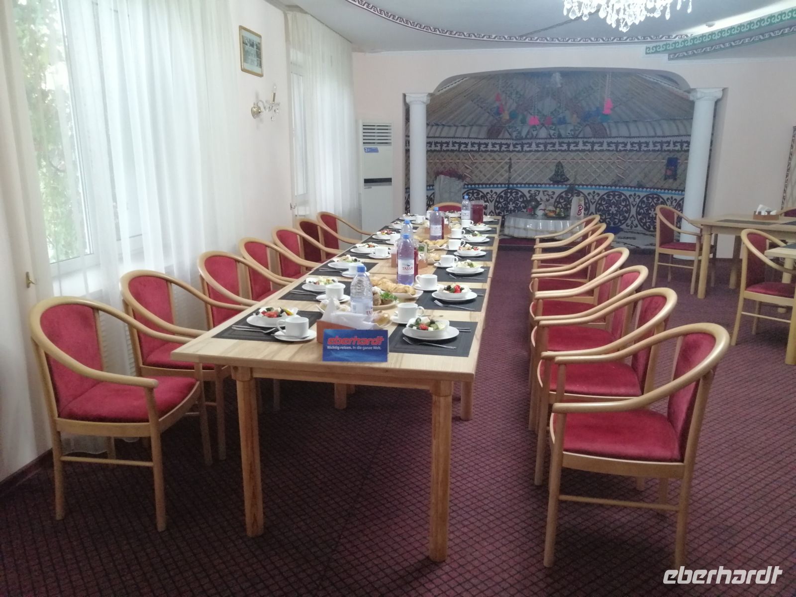 In Taraz angekommen, checkten wir uns im Hotel an und nach der kurzen Erholung unternahmen wir einen Stadtrundgang und besichtigten den zentralen Platz der Stadt, eine früh-islamische Moschee mit einem Karawanserei und das neu gestaltete historisch-kulturelle Zentrum von Taraz. Der erlebnisreiche Tag endete mit einem leckeren Abendessen direkt im Hotelrestaurant und der anschließenden gemütlichen Runde an der Hotel-Bar.