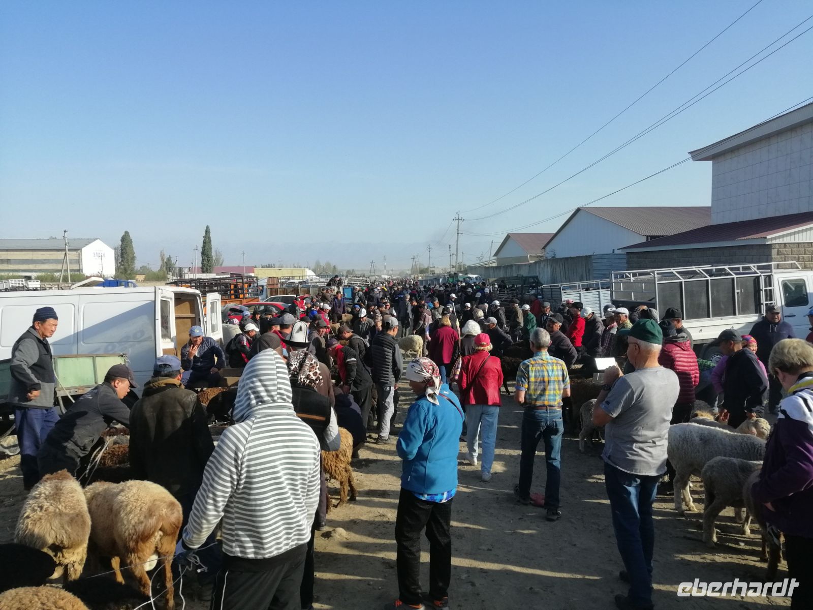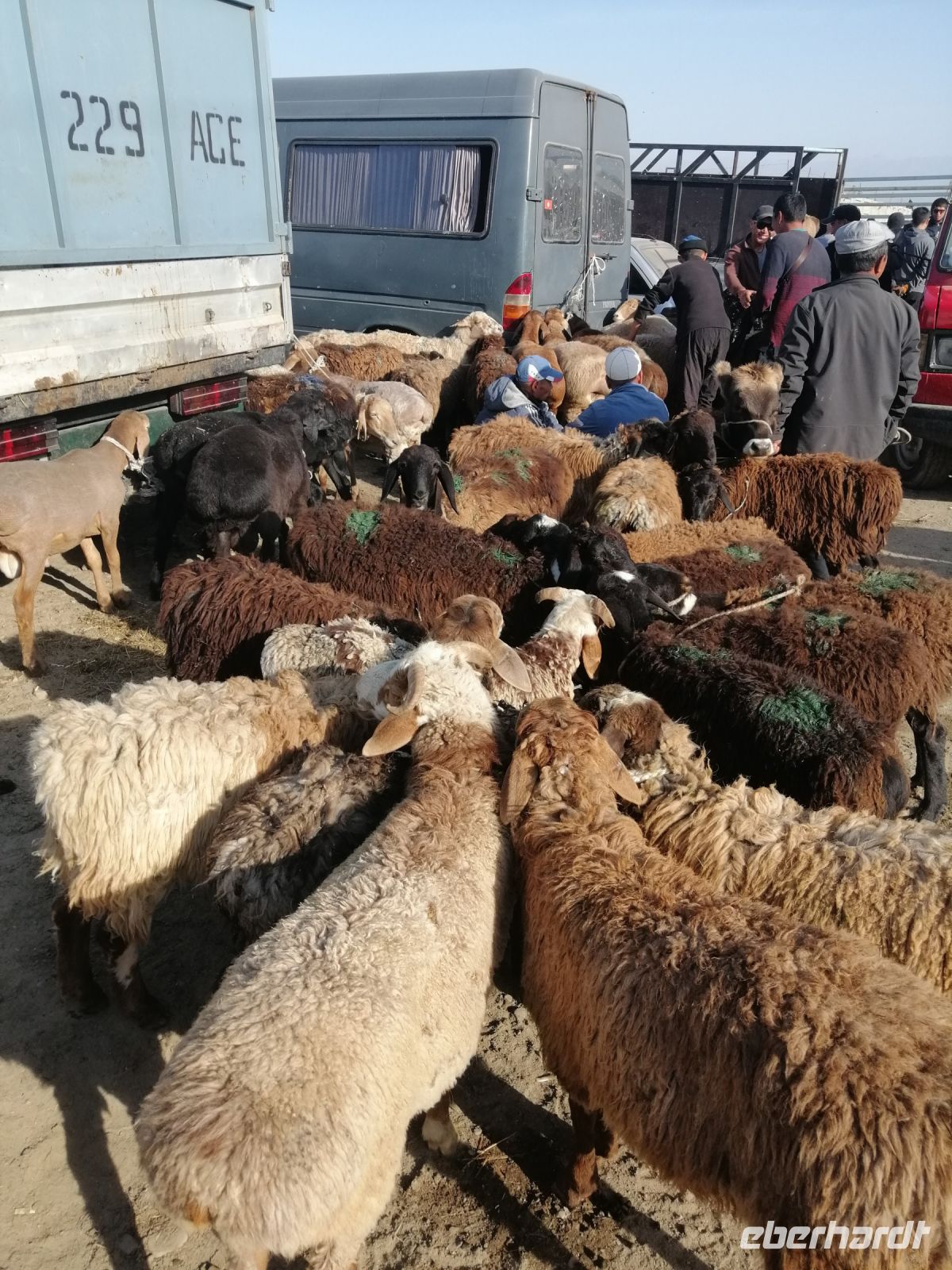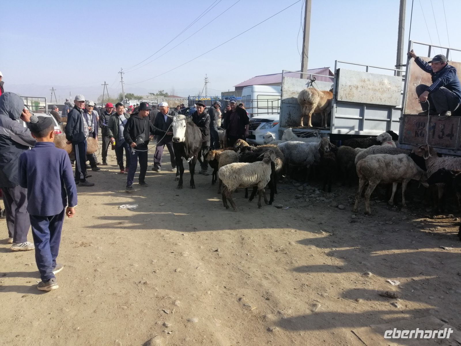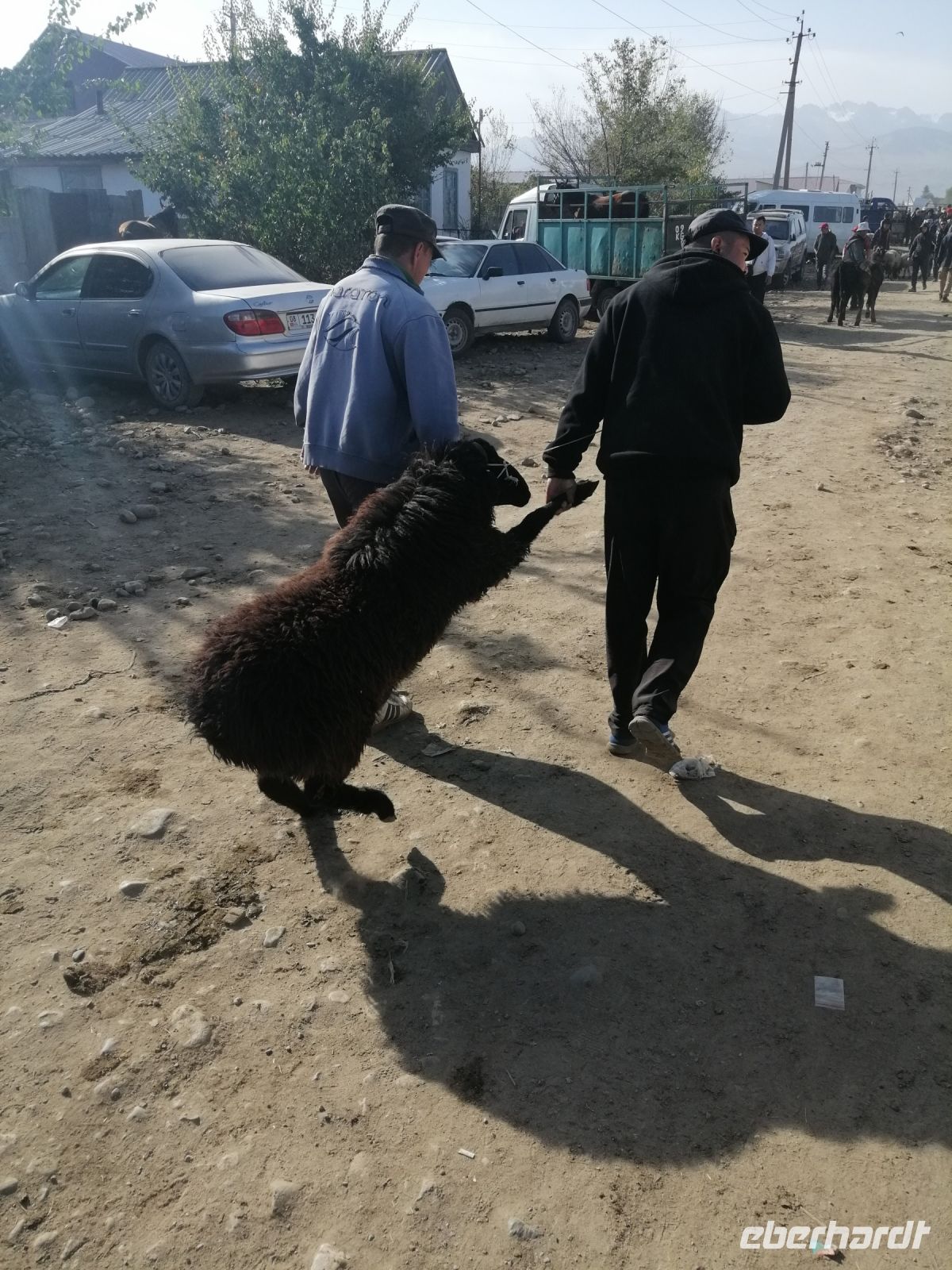 Den heutigen Tag im kirgisischen Karakol starteten wir mit etwas ganz Besonderem: mit der Besichtigung des Viehmarktes. Jeden Sonntagmorgen findet in Karakol in aller Herrgottsfrühe ein Viehmarkt statt. Bauern aus der Umgebung bieten ihre Ziegen, Schafe, Rinder und Pferde zum Verkauf an. Es ist voll, dem Vieh wird auf den Zahn geschaut und das ein oder andere Geschäft abgeschlossen. Nichts für Langschläfer: denn gegen 10 Uhr ist der Spuk auch schon wieder vorbei. Zum Glück hatten wir noch kein kirgisisches Geld (Som): somit sind uns für „gute Schnäppchen“ die Hände gebunden:-)