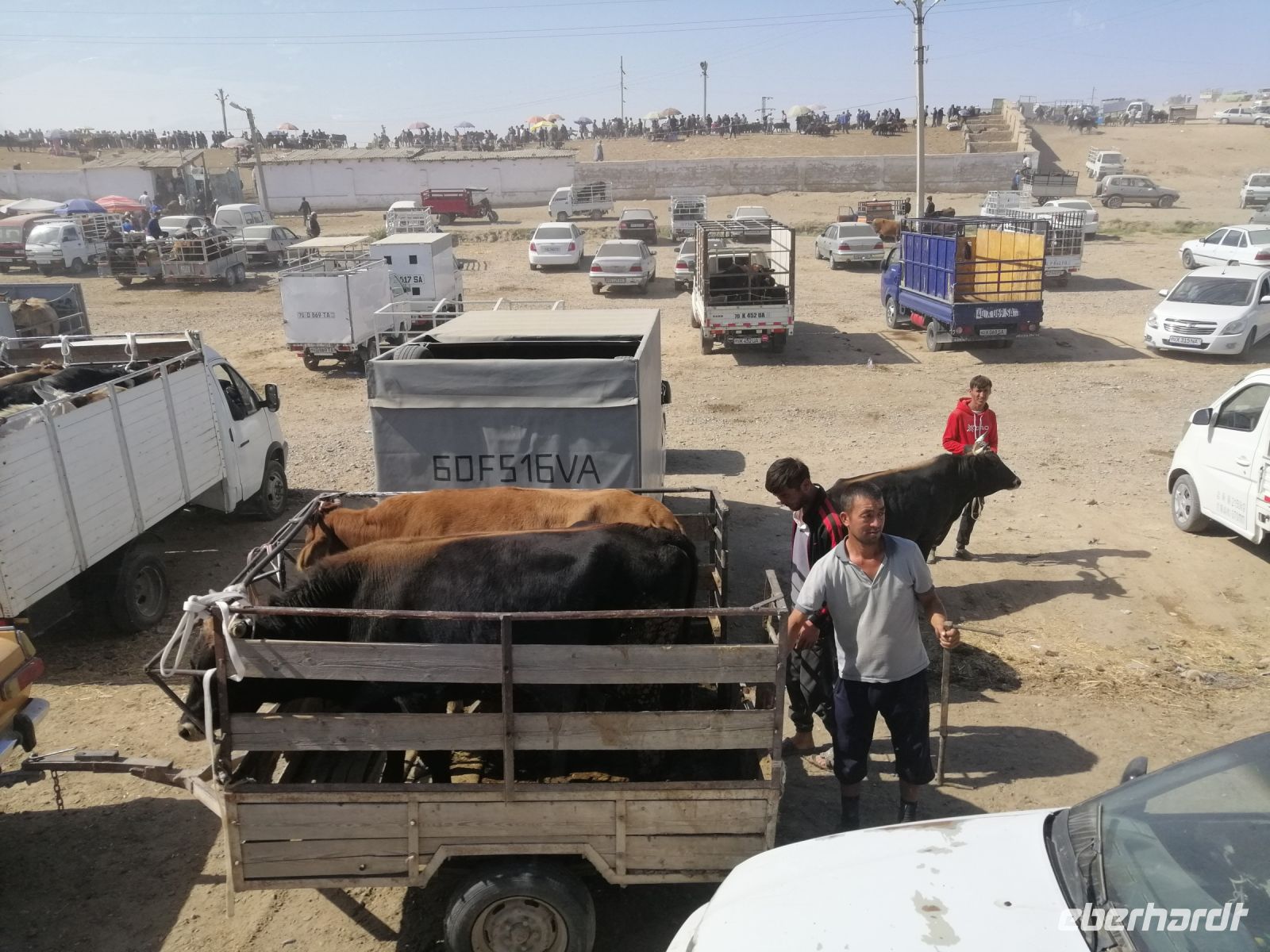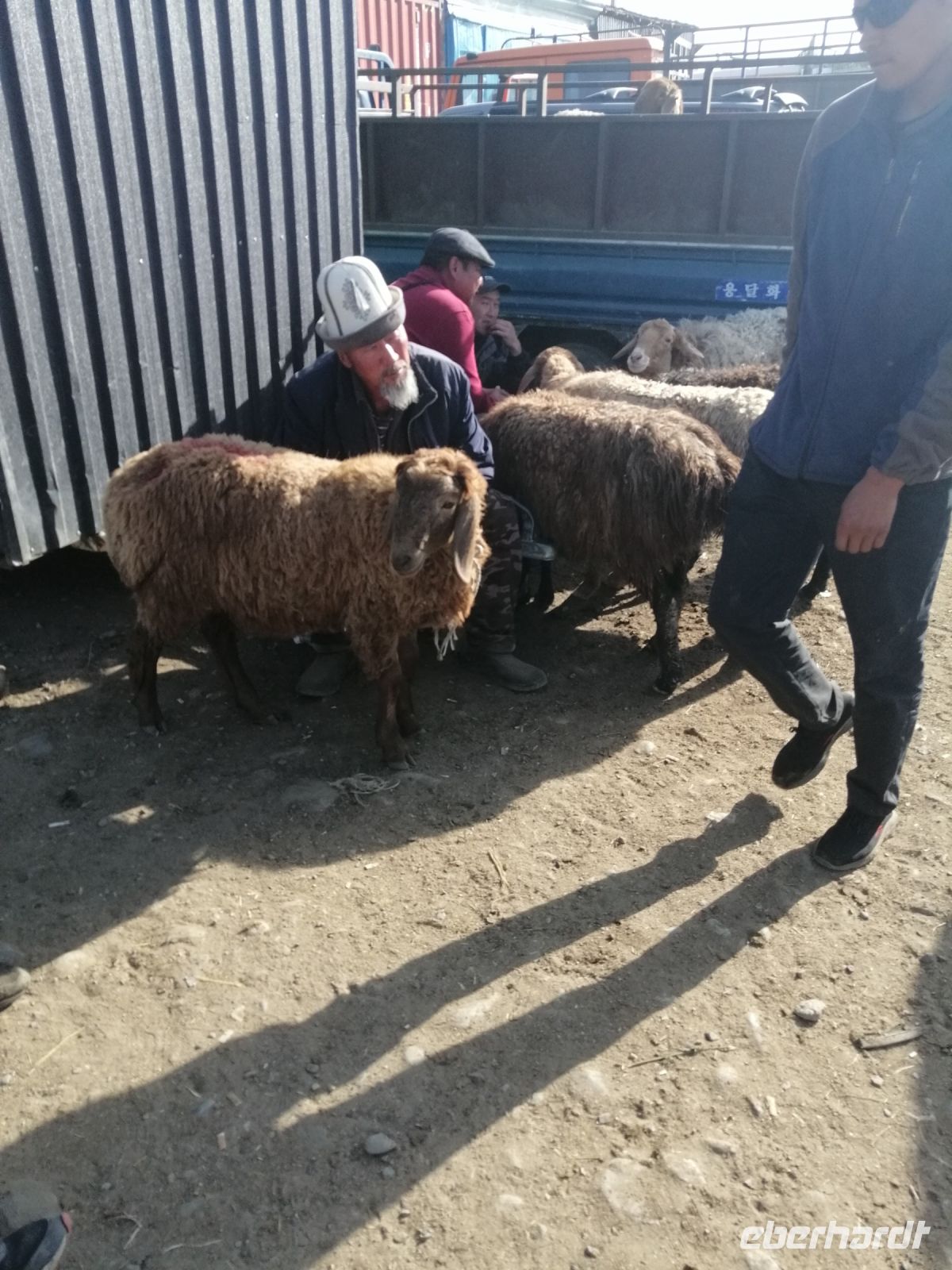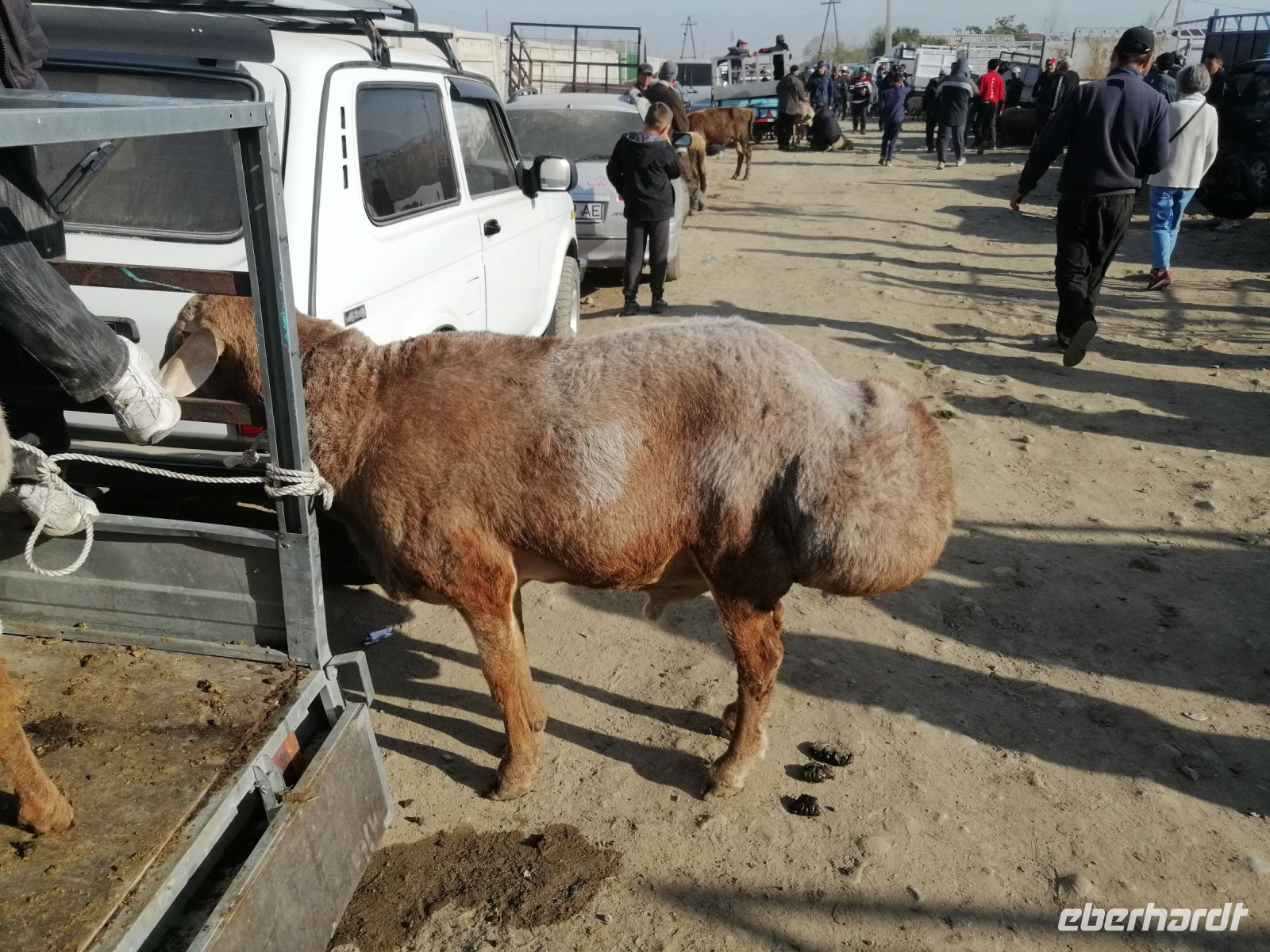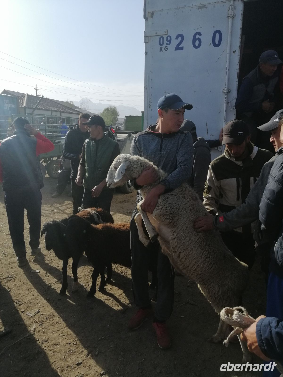 Den heutigen Tag im kirgisischen Karakol starteten wir mit etwas ganz Besonderem: mit der Besichtigung des Viehmarktes. Jeden Sonntagmorgen findet in Karakol in aller Herrgottsfrühe ein Viehmarkt statt. Bauern aus der Umgebung bieten ihre Ziegen, Schafe, Rinder und Pferde zum Verkauf an. Es ist voll, dem Vieh wird auf den Zahn geschaut und das ein oder andere Geschäft abgeschlossen. Nichts für Langschläfer: denn gegen 10 Uhr ist der Spuk auch schon wieder vorbei. Zum Glück hatten wir noch kein kirgisisches Geld (Som): somit sind uns für „gute Schnäppchen“ die Hände gebunden:-)