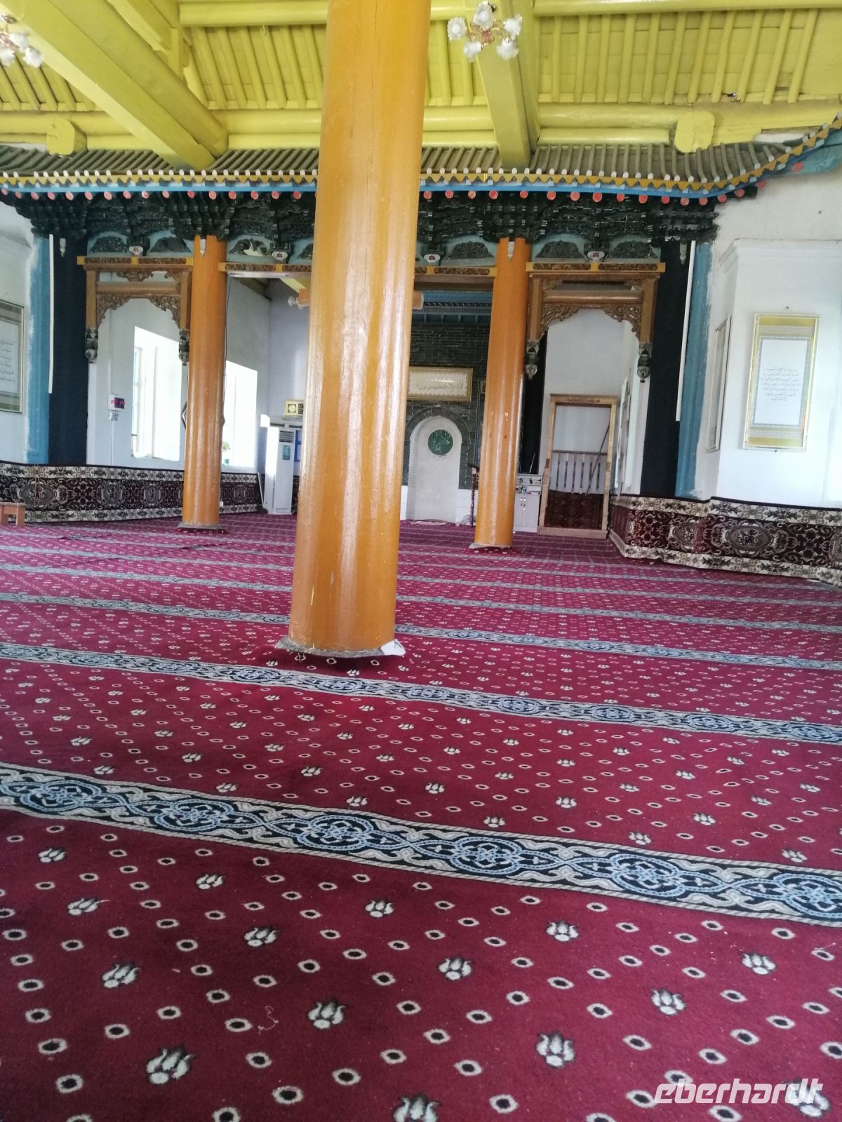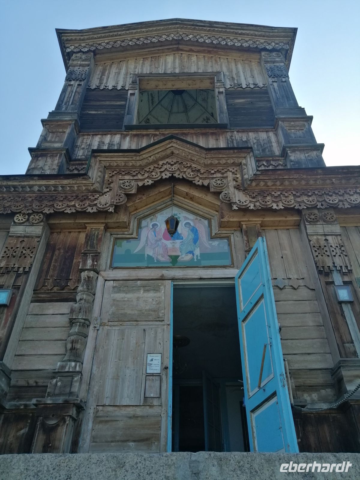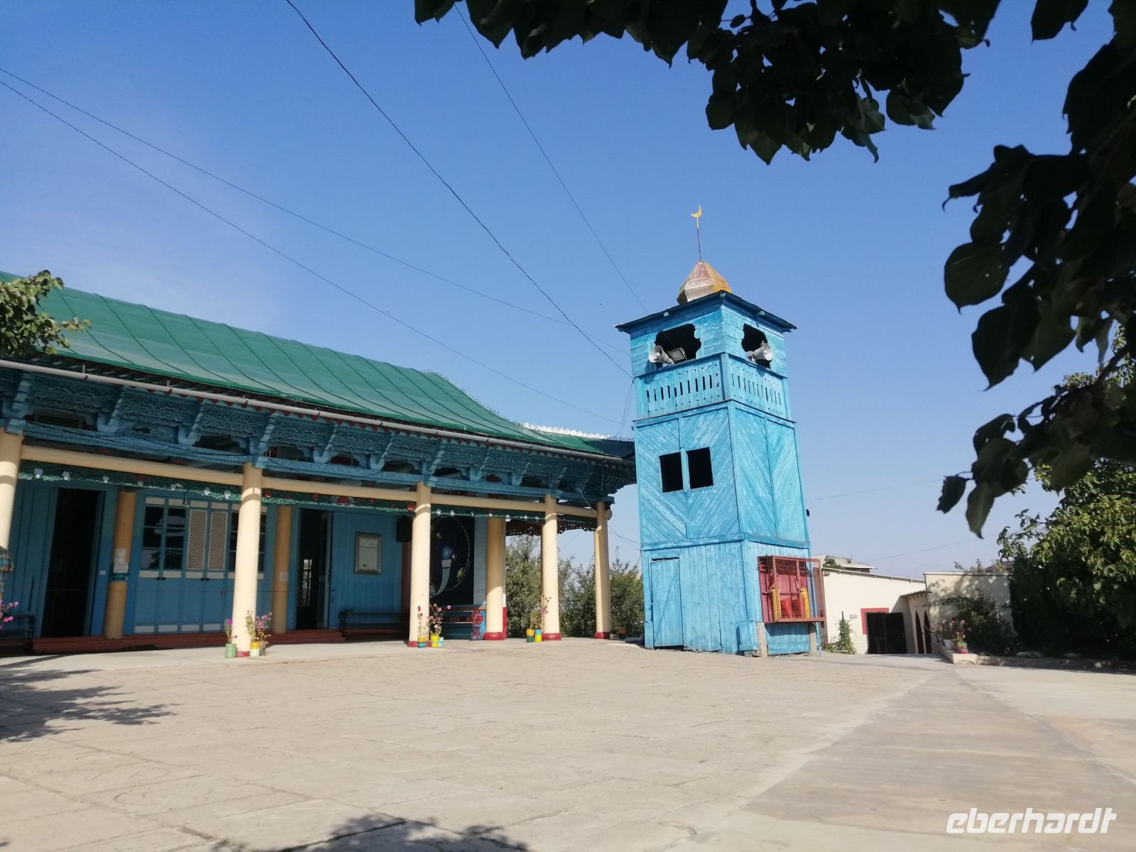 Unmittelbar danach unternahmen wir einen Stadtrundgang und besichtigten zuerst die Dunganen-Moschee. Elena erzählte uns die Entstehungsgeschichte dieser Moschee und über die Dungan-Flüchtlinge, die 1877 aus China nach Karakol zogen und hier eine Gemeinschaft gründeten. Das Besondere dieser Moschee ist die Bauweise: sie ist komplett aus Holz und ohne Nägel gezimmert. Alle Teile des Gebäudes sind durch Schnitte und Nuten verbunden.