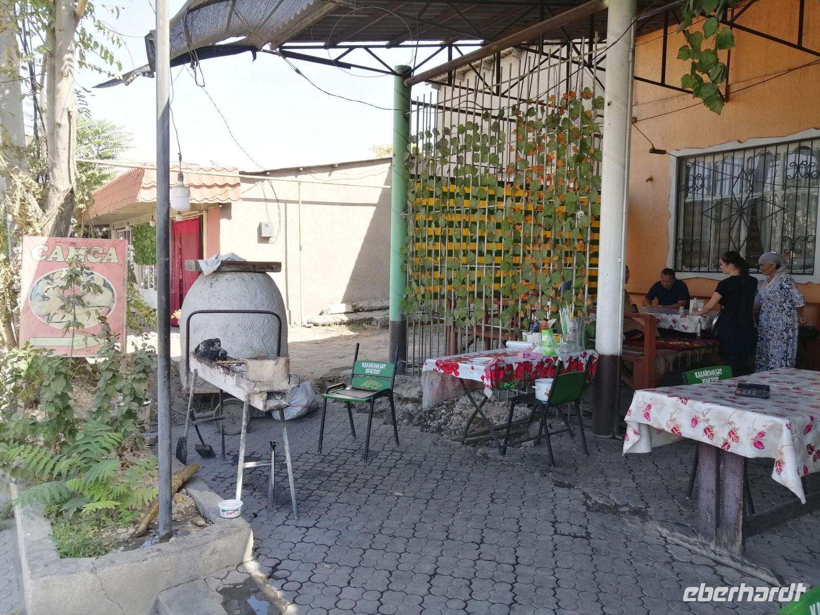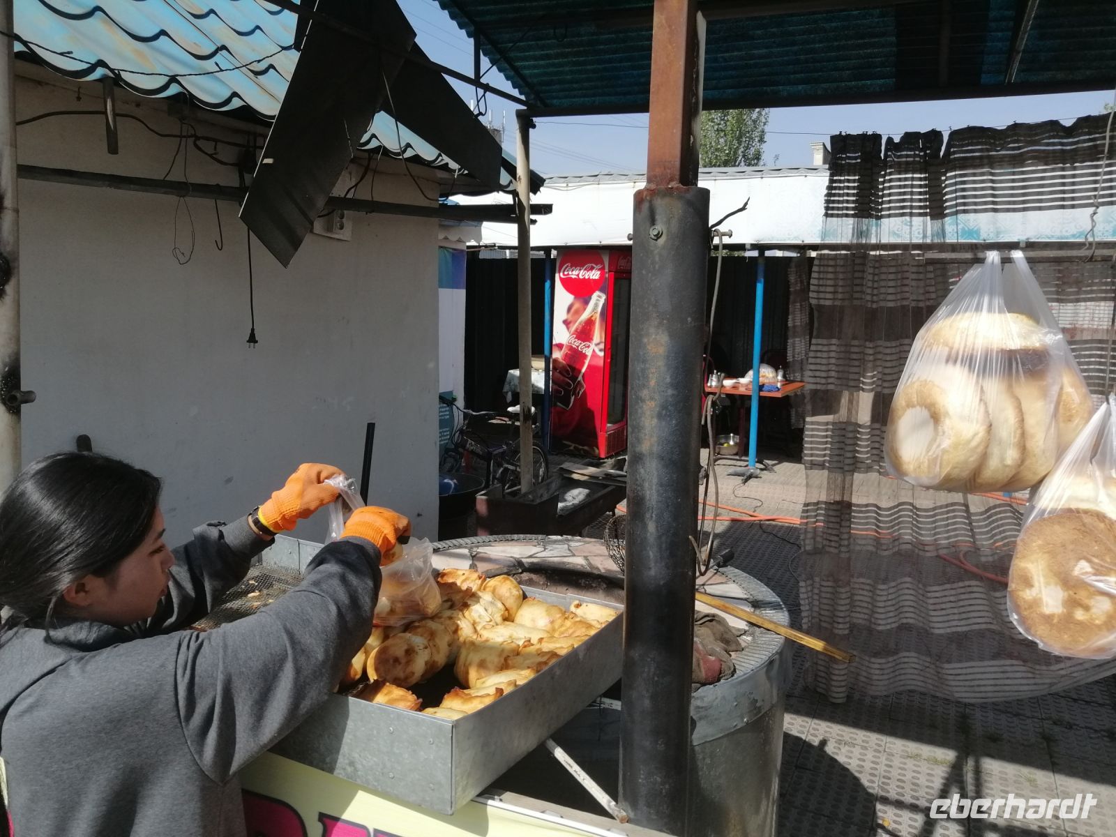 Auf der Fahrt Richtung usbekischen Grenze, stärkten wir uns in einem kleinen Straßencafé in der Stadt Tschemkent und gaben das restliche kasachische Geld in einem Tante-Emma-Laden für Getränke und Süßigkeiten aus.