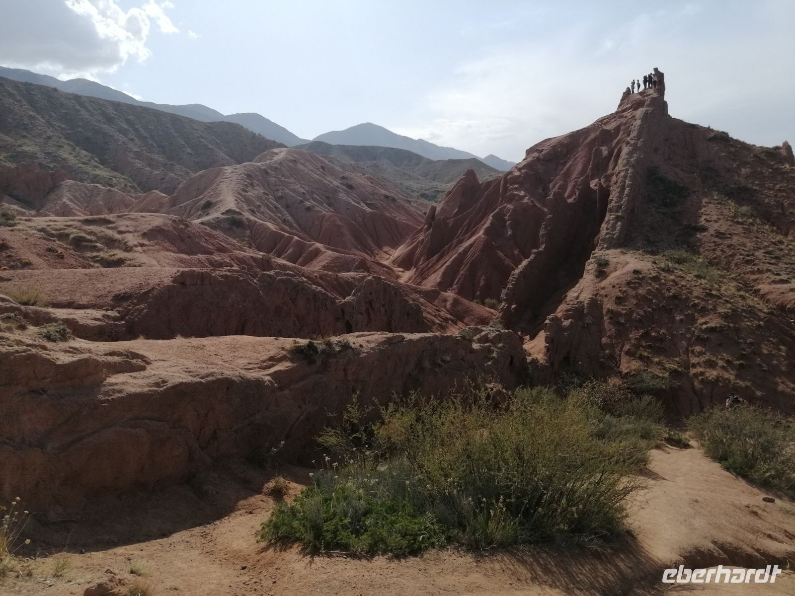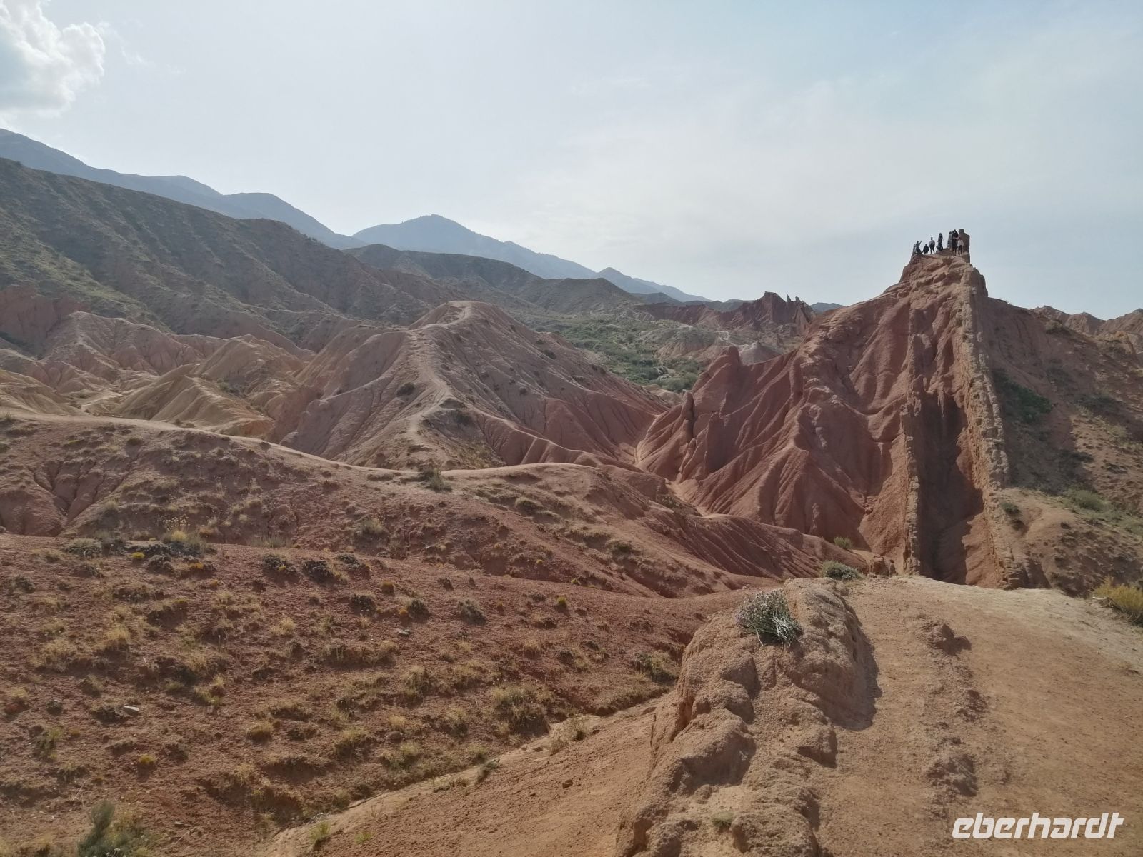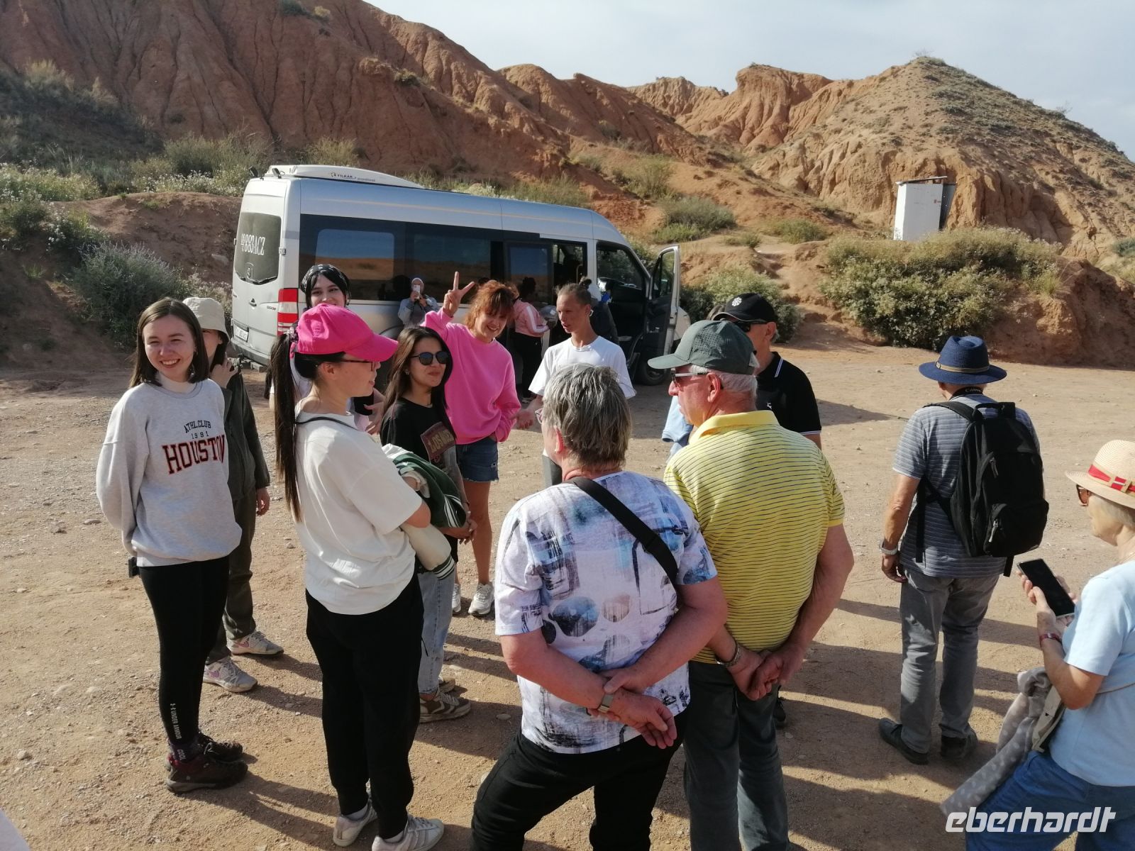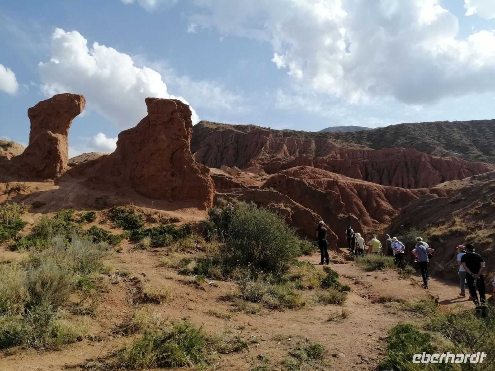 Nach dem spannenden Kulturprogramm gab es eine leckere Stärkung: frisch gebackene Samsa (mit Fleisch und Zwiebeln gefüllte Teigtasche) aus dem Brotbackofen! Anschließend ging es entlang der südlichen Küste des Issyk Kul-Sees in die Natur: wir besichtigten die Dzhety-Oguz-Schlucht – die Schlucht der Sieben Stiere und Canyon der Märchen. Von Elena erfuhren wir, dass der Canyon aus Sand und Lehm besteht und Millionen von Jahren unter dem Einfluss von geologischen Prozessen, Wasser und Wind geformt wurde. Kräfte der Natur haben an den Hängen malerische Muster gemalt und aus den roten Felsen magische Skulpturen geformt. Aufgrund der Tatsache, dass der Grund der vielen Labyrinthe des Canyons mit Sträuchern Ephedra übersät ist, so dass - wenn jemand dort spazieren geht, beginnt seine Phantasie auf diese Reliefs fabelhafte Bilder von fantastischen Tiere und Monster, Schlösser, Türme, Menschen zu zeichnen - hat der Canyon „Märchen“ seinen Namen bekommen.