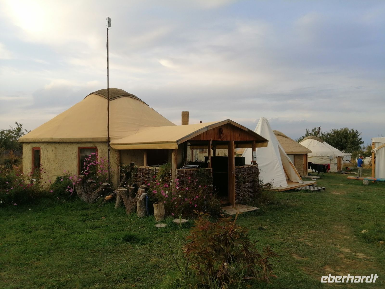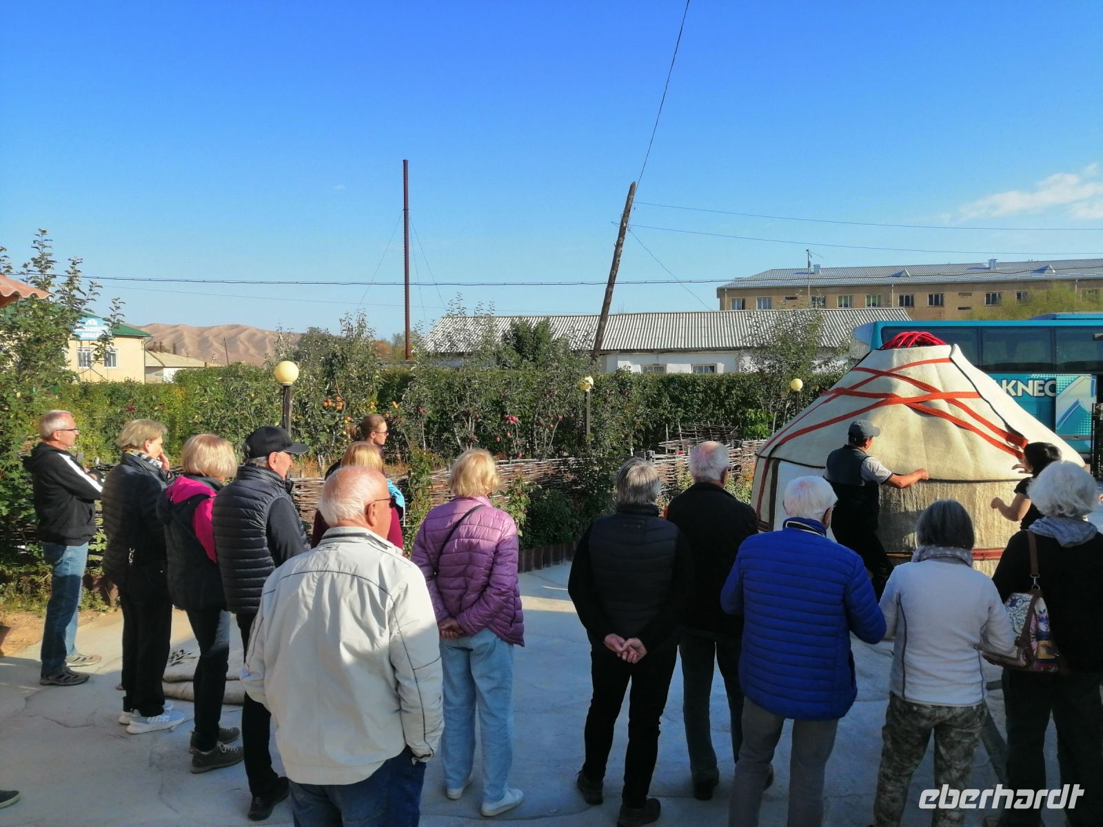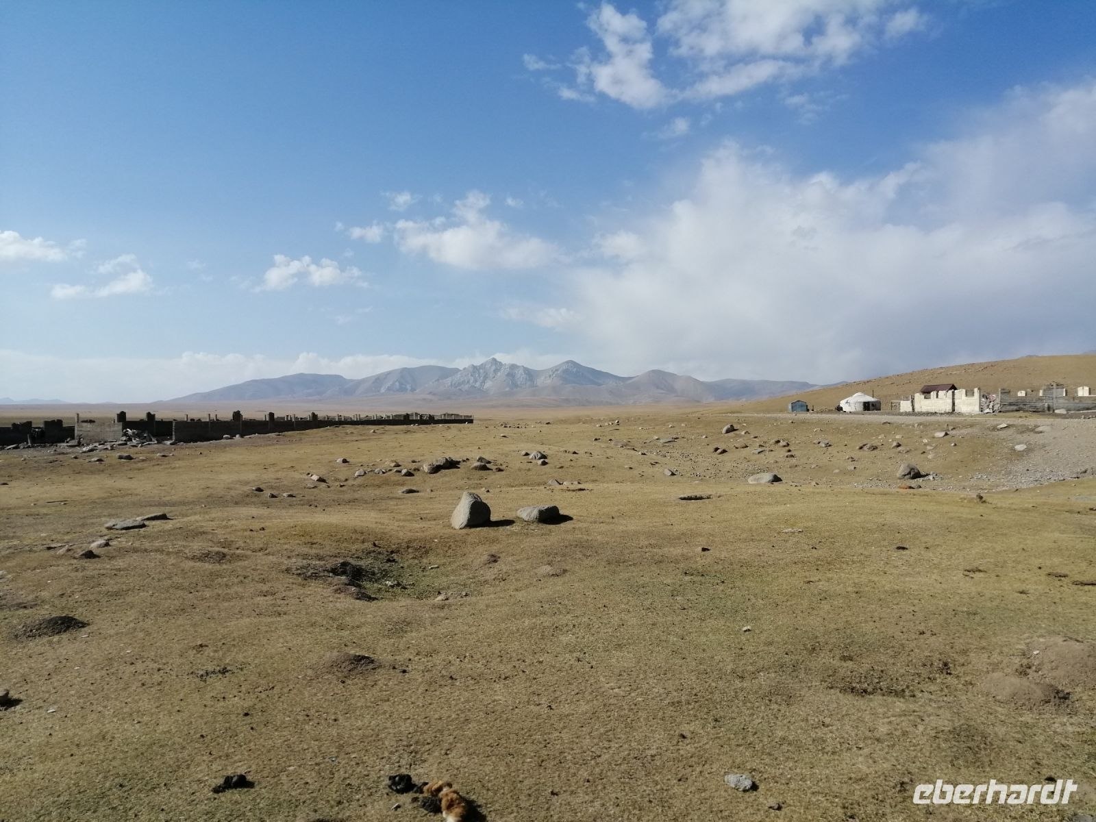 Nach dem Frühstück verließen wir das Jurtencamp Almaluu und schauten uns im benachbarten Dorf wie eine Jurte aufgestellt wird an. Neben der neu aufgebauten Jurte gratulierten wir Thomas, unserem ersten Geburtstagskind auf der Tour, zu seinem Geburtstag :-)