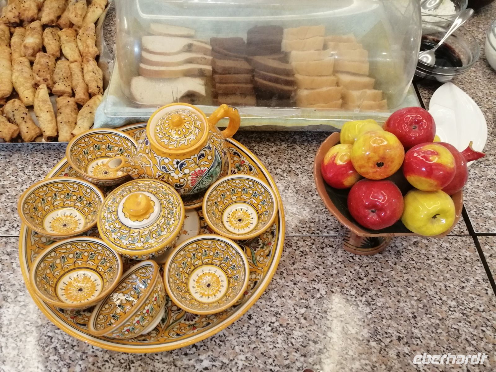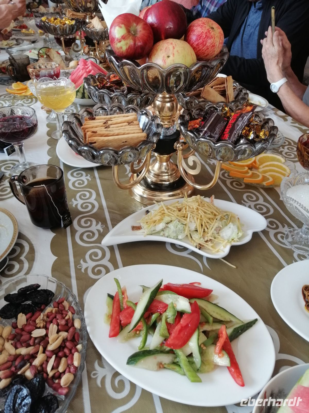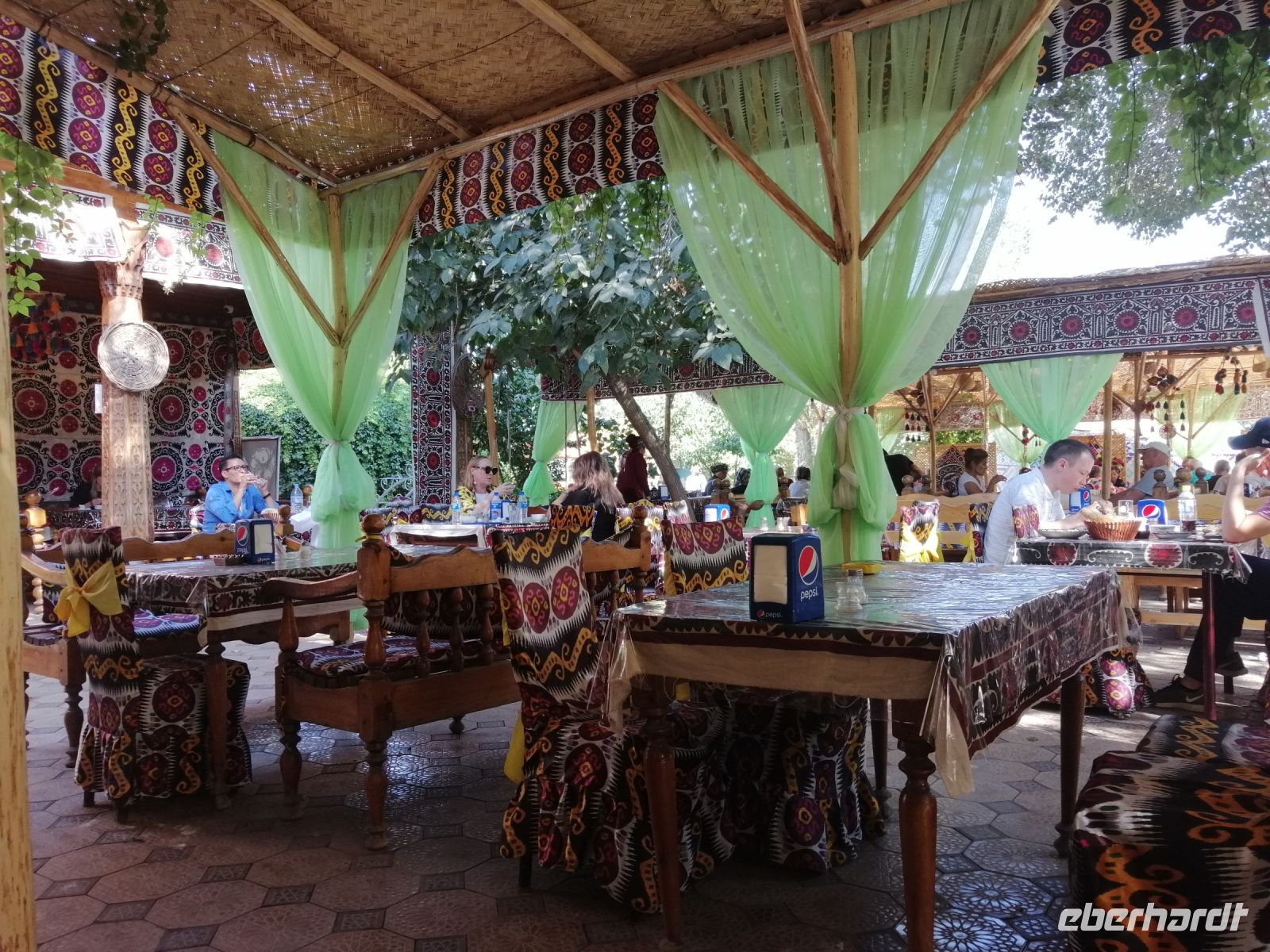 Während der gemütlichen Mittagspause in der Tschaischana „Orient Sweets“ bei Nadira konnten wir die Eindrücke von Samarkand miteinander besprechen und verschiede Leckereien unter anderem „Tschak-Tschak“ (Nachtisch „Honignudeln) verkosten.