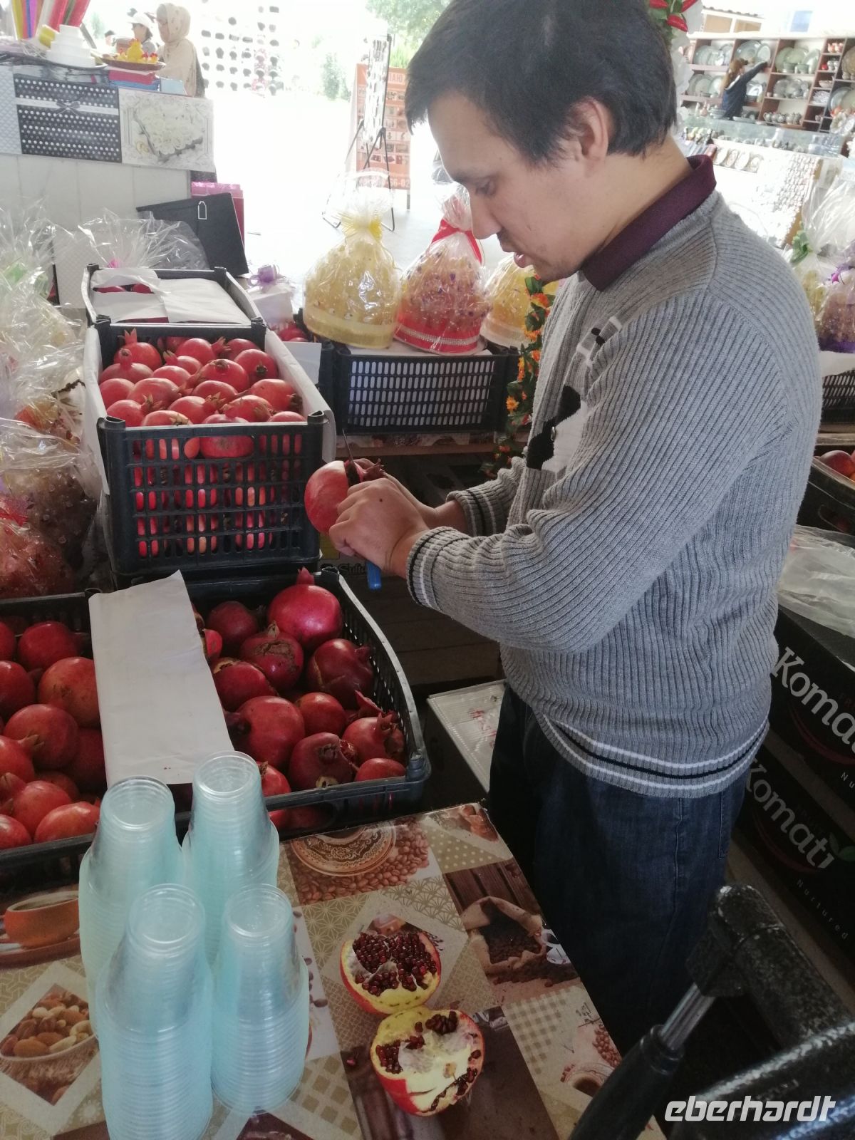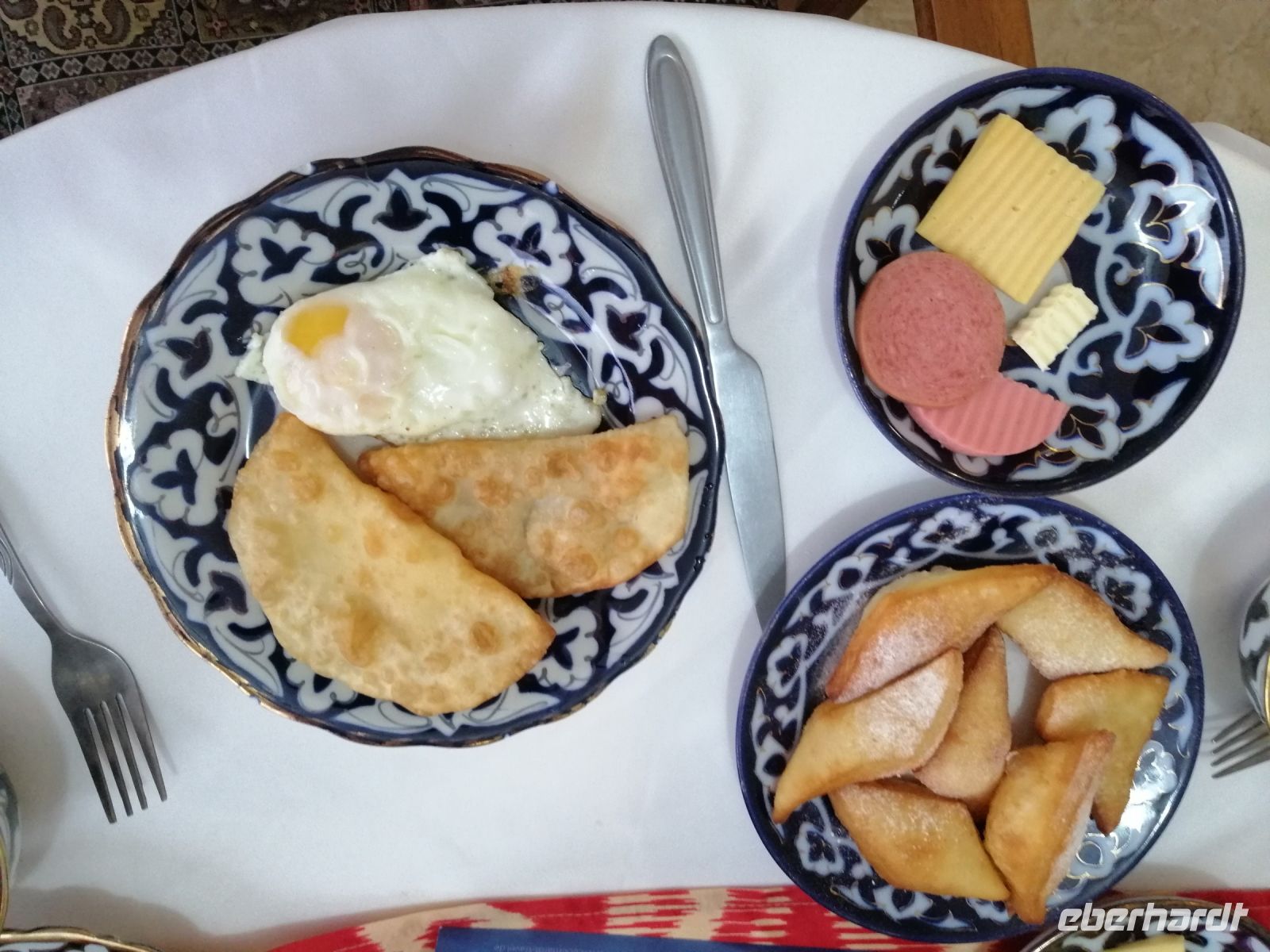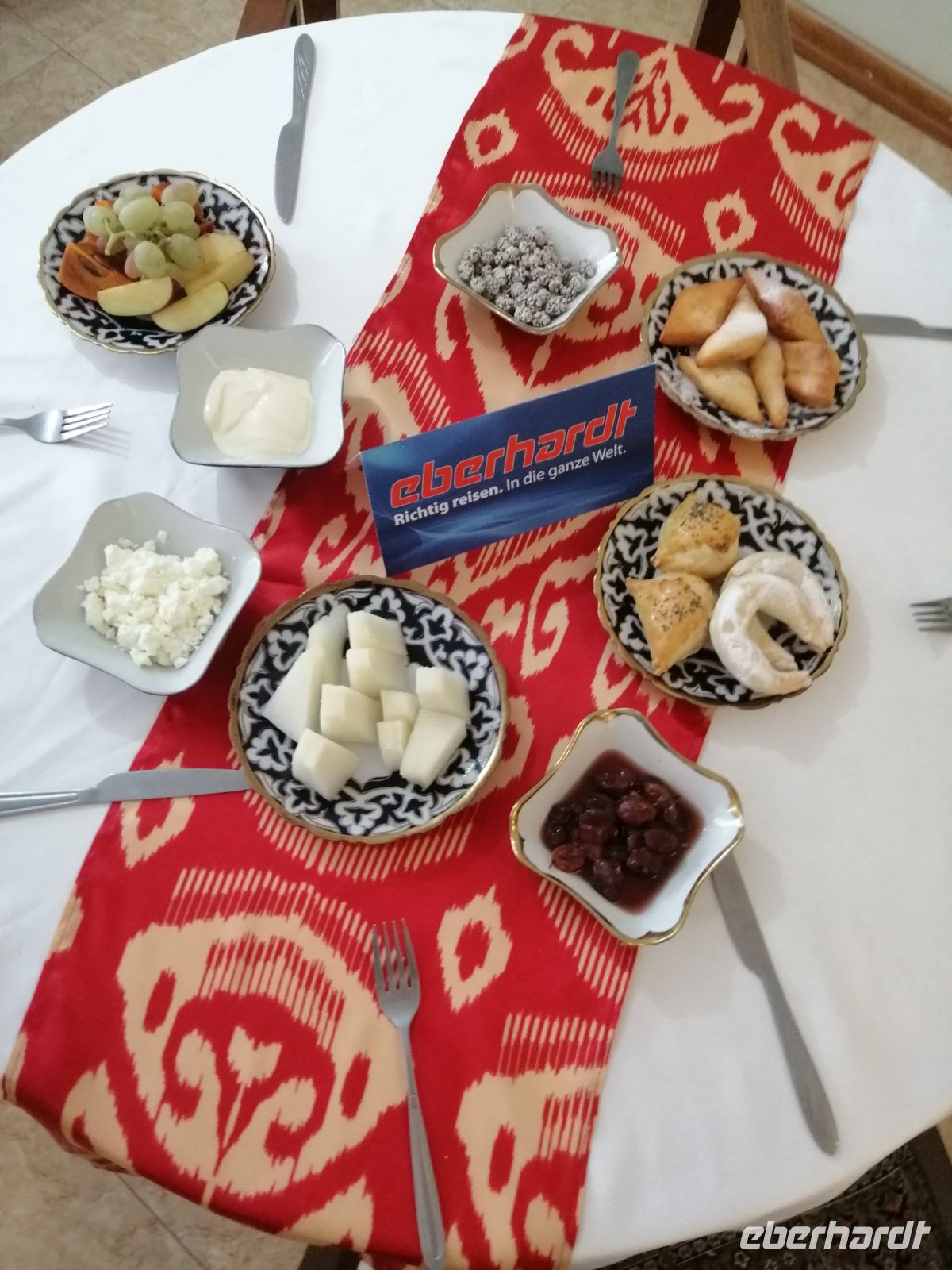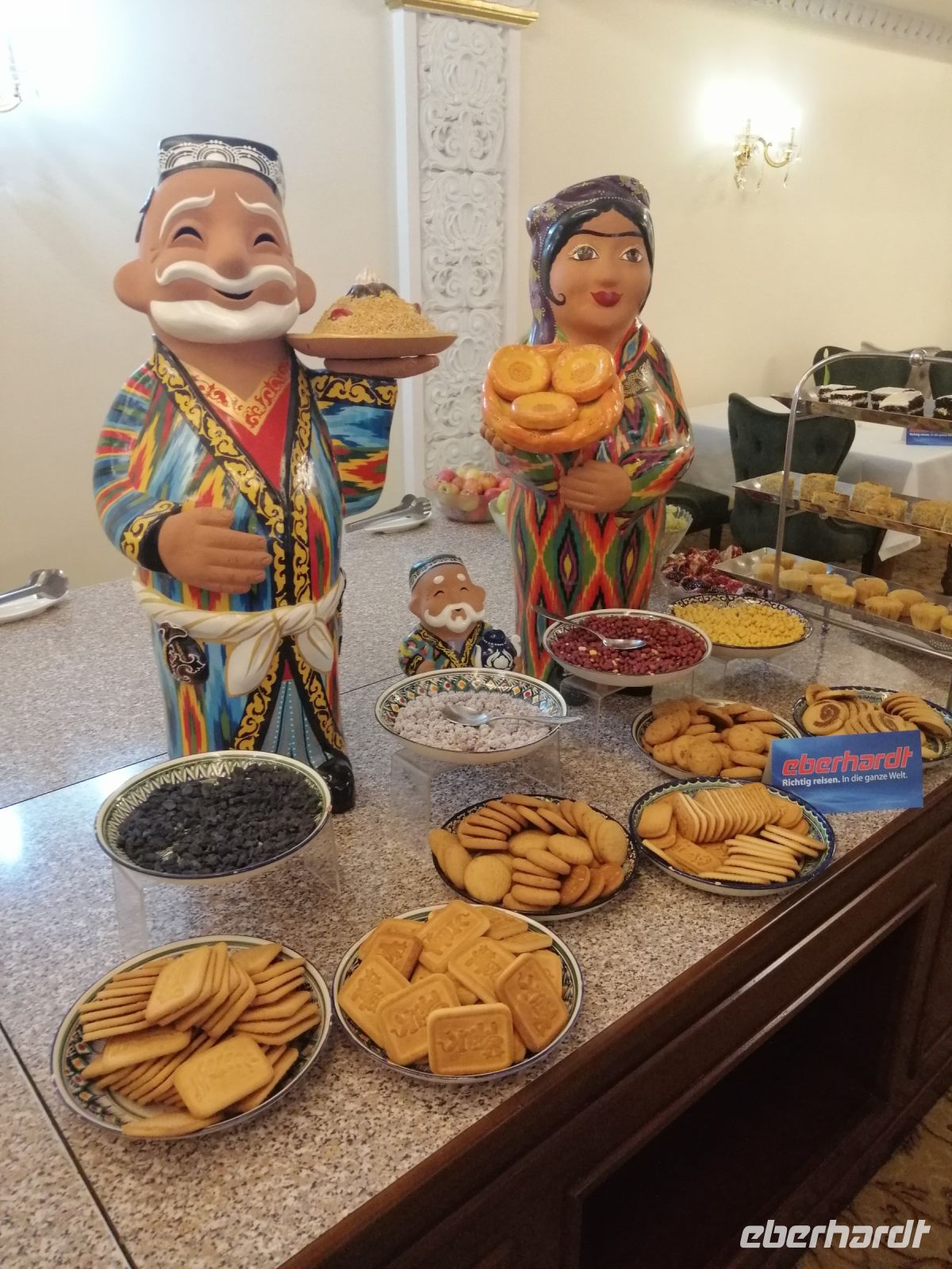 Während der gemütlichen Mittagspause in der Tschaischana „Orient Sweets“ bei Nadira konnten wir die Eindrücke von Samarkand miteinander besprechen und verschiede Leckereien unter anderem „Tschak-Tschak“ (Nachtisch „Honignudeln) verkosten.