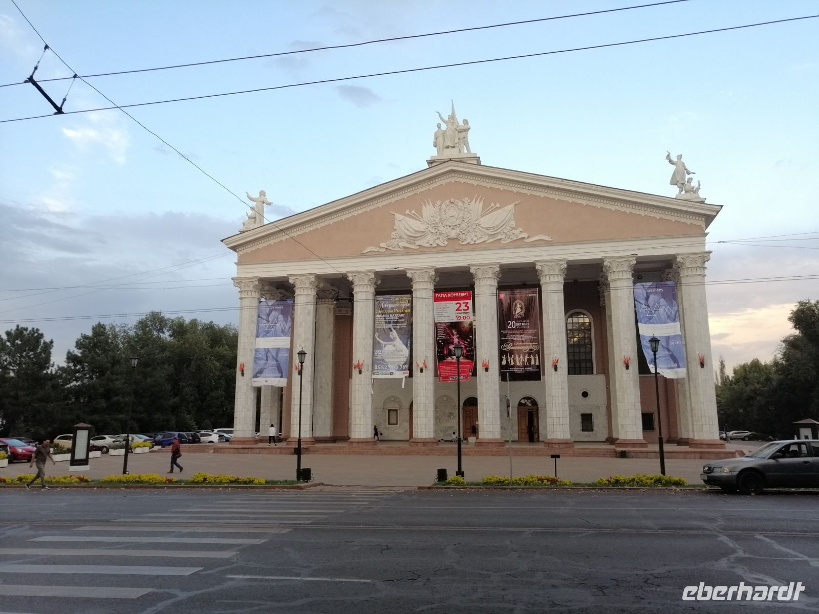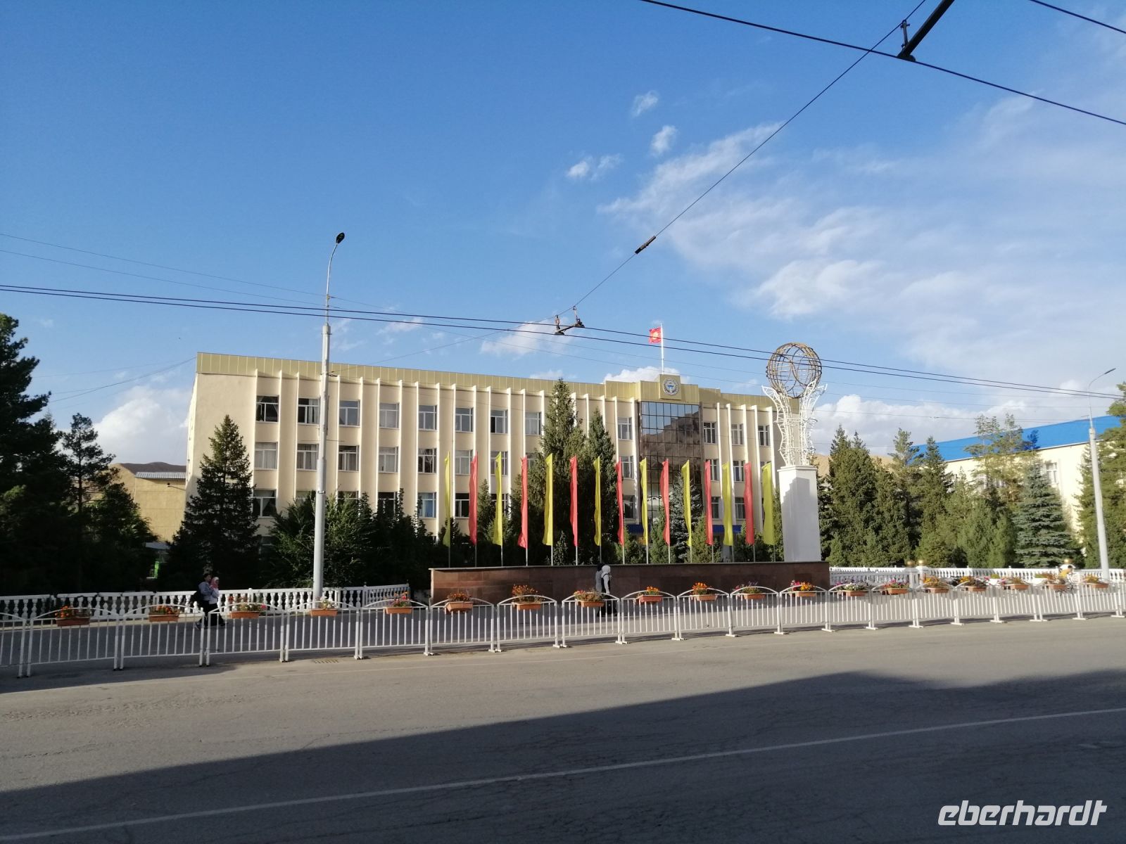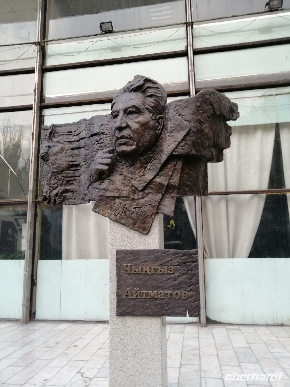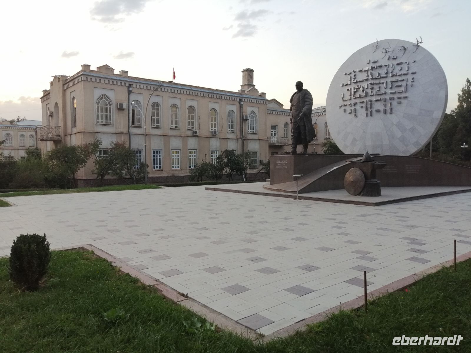 Pünktlich um 8:30 Uhr brechen wir nach Bischkek, die Hauptstadt Kirgisien auf. Im Reisebus informierte uns Elena über die kirgisische Banknoten und deren Bedeutung. Denn jeder Geldschein enthält ein Porträt einer berühmten Persönlichkeit. So beispielsweise findet man auf einem 5.000 Som-Schein das Porträt des sehr berühmten kirgisischen Schauspielers Suimenkul Chokmorov. Laut einigen Quellen, gehört Suimenkul Chokmorov neben Tschingis Aitmatow zu den bekanntesten Persönlichkeiten Kirgistans. Während der weiteren Fahrt erzählte Elena auch die Geschichte über „Basmatschi“ - mittelasiatische Aufständische, die sich 1916 gegen die allgemeine Mobilmachung im Ersten Weltkrieg in Turkestan erhoben und bis Mitte der 1920er Jahre gegen die Bolschewiki kämpften. Der Begriff Basmatschi wurde aus der turksprachigen Wurzel bosmoq („unterdrücken“) und dem Suffix für gewohnheitsmäßige Handlungen chi gebildet und bedeutet „Banditen“ oder „Räuber“.