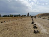 Vom Burana-Turm aus bewunderten einige von uns ein herrlicher Panoramablick auf das Tschüi-Tal und die kirgisische Gebirgskette. Außerdem konnten wir anhand der verbliebenen Überreste ein Bild von der ehemaligen Stadt schwach erkennen. Außerdem besichtigten wir einige sogenannte Balbals – das sind alte Steinfiguren aus dem 6. Jh., die aus dem kirgisischen Gebirge hierher transportiert wurden, um sie vor Diebstahl zu schützen. Vermutlich stellen die Balbals, die es auch in Sibirien, Südrussland, der Ukraine oder der Mongolei gibt, ehemalige Herrscher dar.