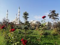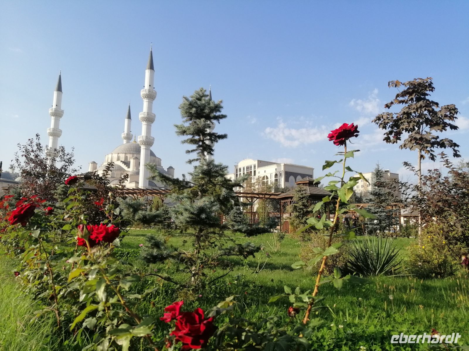 Bevor wir die Hauptstadt Kirgistans verließen, besichtigten wir die neue Borborduk-Moschee von Imam al Sarahsi der Stadt, die 2018 als neue Zentralmoschee von Bischkek mit türkischer Unterstützung gebaut wurde. Der sehr freundliche Bedienstete erlaubte uns auch rein zu kommen und ein paar Fotos von der Moschee zu machen. Sie ist heute die größte Moschee in Zentralasien.