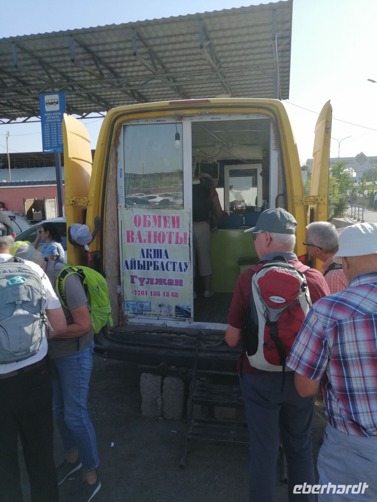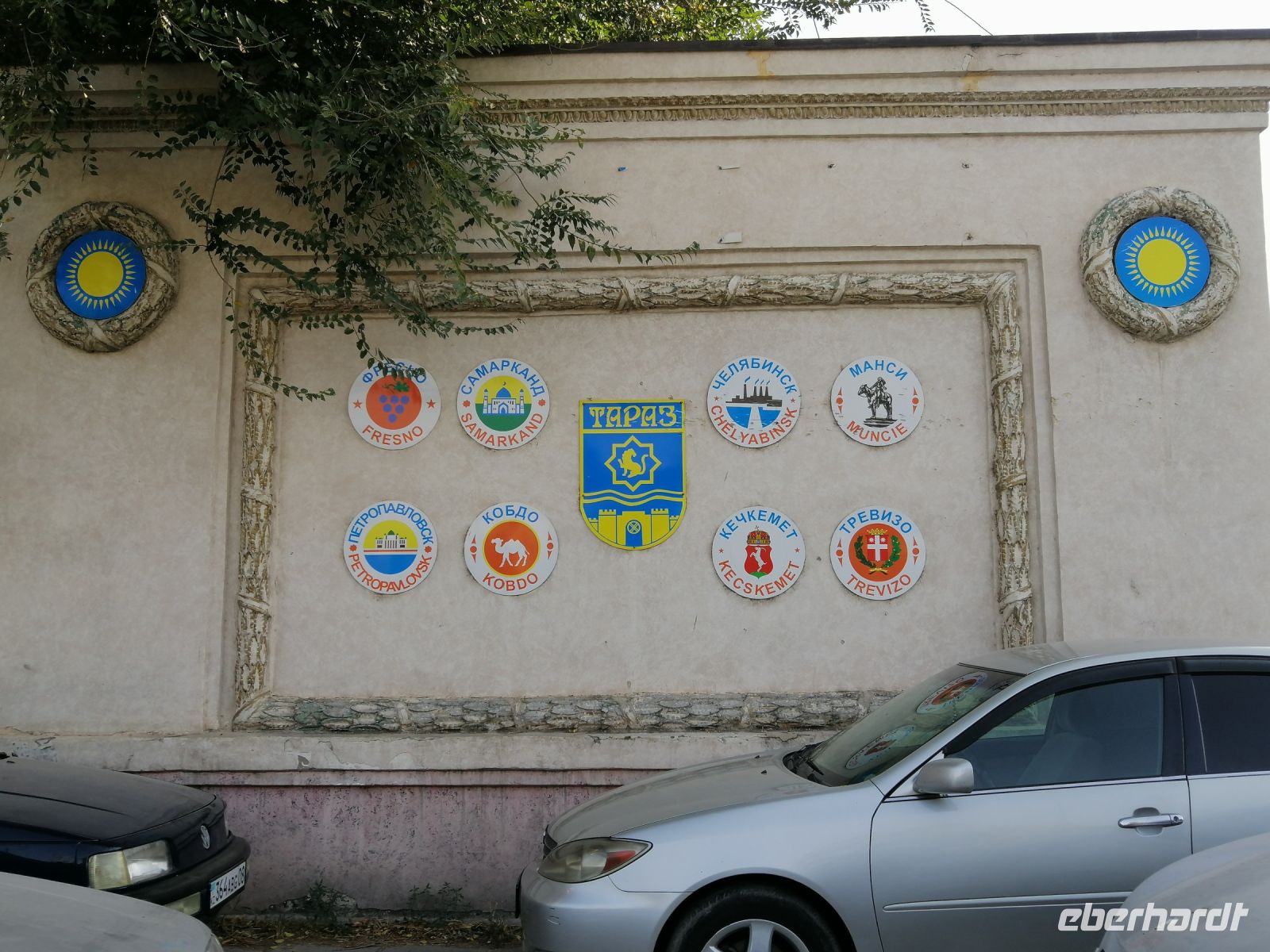 Nach dem reibungslosen Grenzübertritt nach Kasachstan und dem Geldwechsel, fuhren wir weiter Richtung Taraz. Während der Fahrt informierte uns Elena über die Banknoten der Kasachen und deren Bedeutung. Die Währung in Kasachstan heißt „Tenge“ und leitet sich vom alttürkischen Begriff „Tamga“ oder „Denga“ ab, was für ein Gewichtsmaß steht und somit eine vergleichbare Bedeutung hat wie Pfund, Lira und Peso. Die russische Bezeichnung für „Geld“ ?????? (Dengi) hat den gleichen alttürkischen Stamm wie der Tenge. Auf Kasachisch bedeutet „Tenge“ so viel wie „Gleichgewicht“.