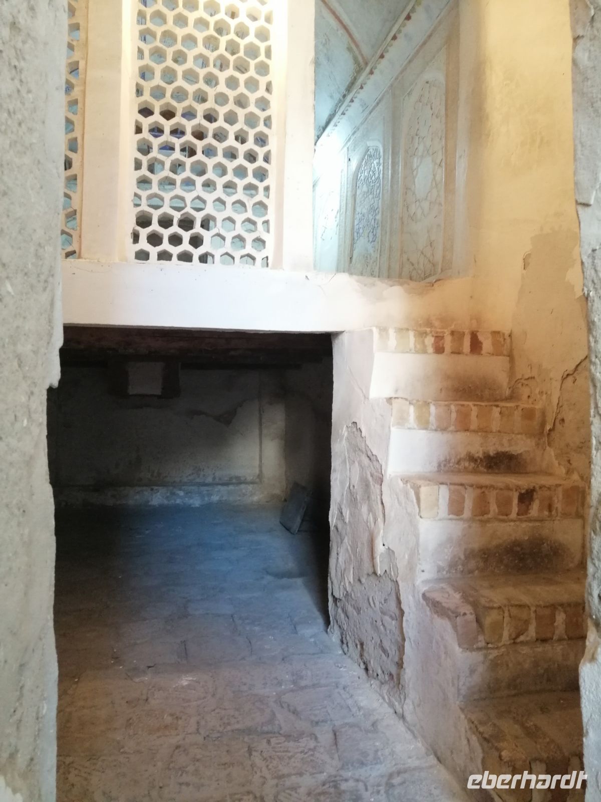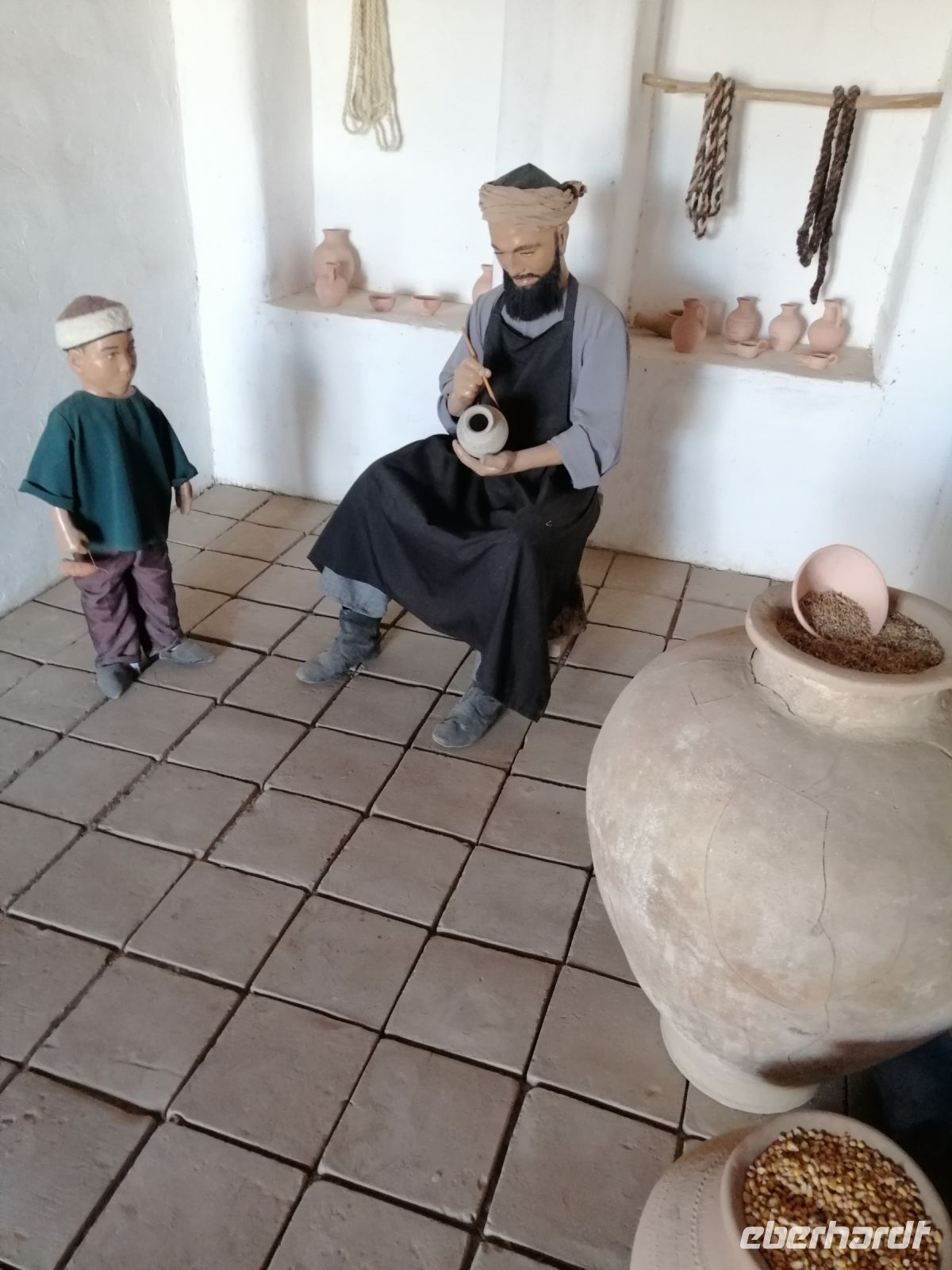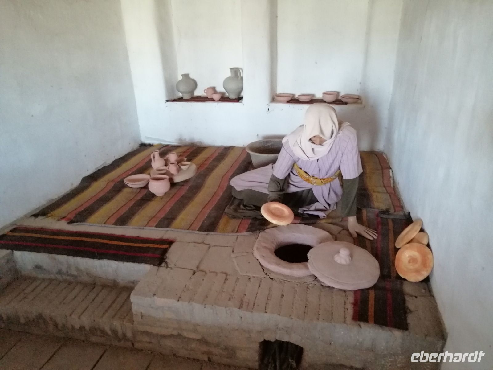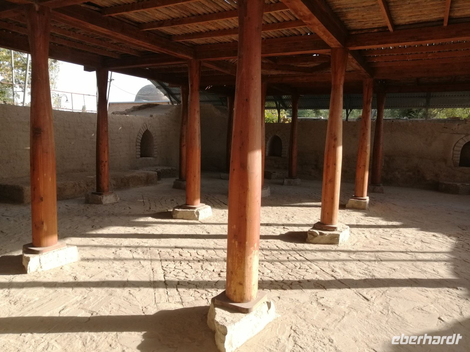 Auf dem Gelände der Zitadelle schauten wir uns die Jome-Moschee und den Thronsaal des Herrschers an. Der Thronsaal ist ein gepflasterter Hof, von der ehemaligen Überdachung sind nur einige das Dach tragende Säulen erhalten. Der Saal ist durch eine Zusatzwand hinter dem Eingang gekennzeichnet, bis zu dem sich Besucher rückwärts bewegen musste, um dem Herrschern niemals den Rücken zuzukehren. Erst beim Erreichen der Wand, durfte man sich umdrehen. Im ehemaligen Palast des Herrschers, einem einfachen Backsteinbau, besichtigten wir das Museum für Landeskunde.