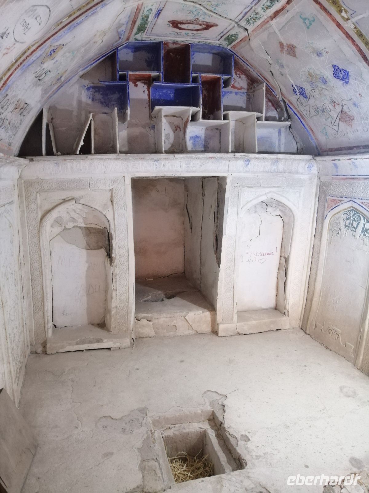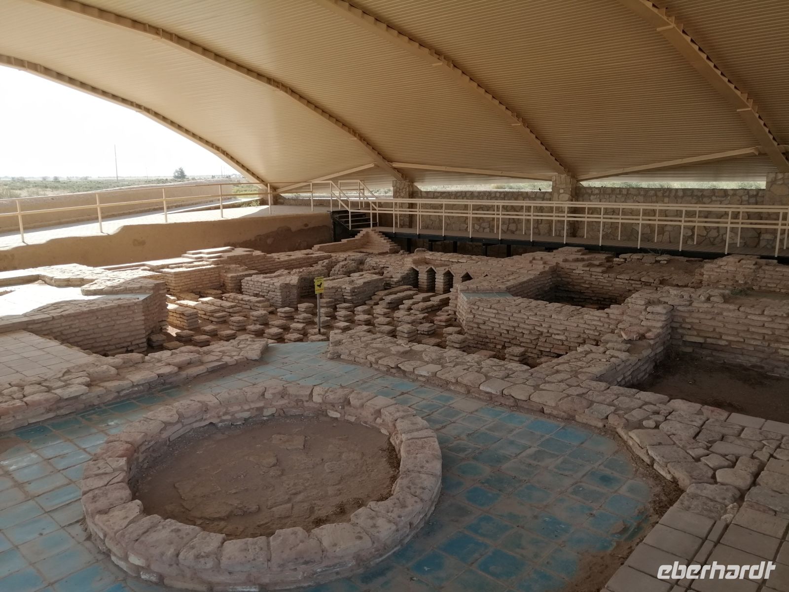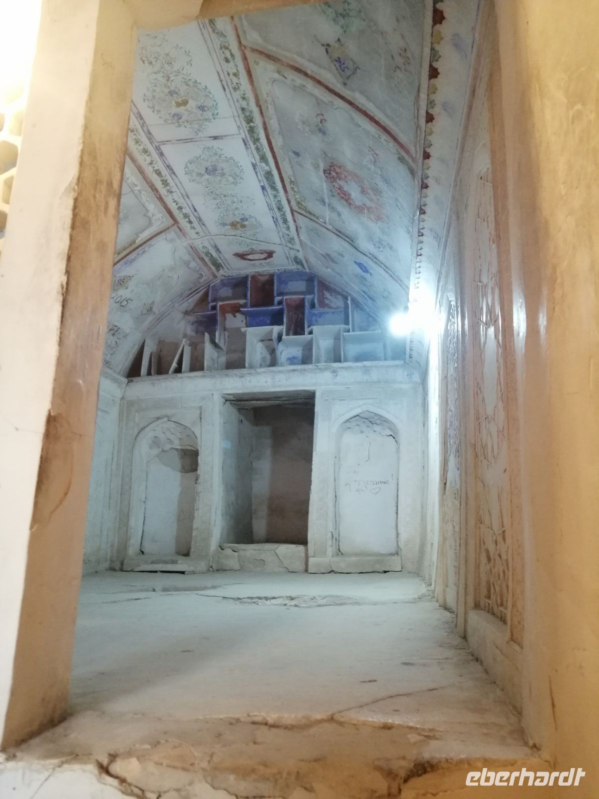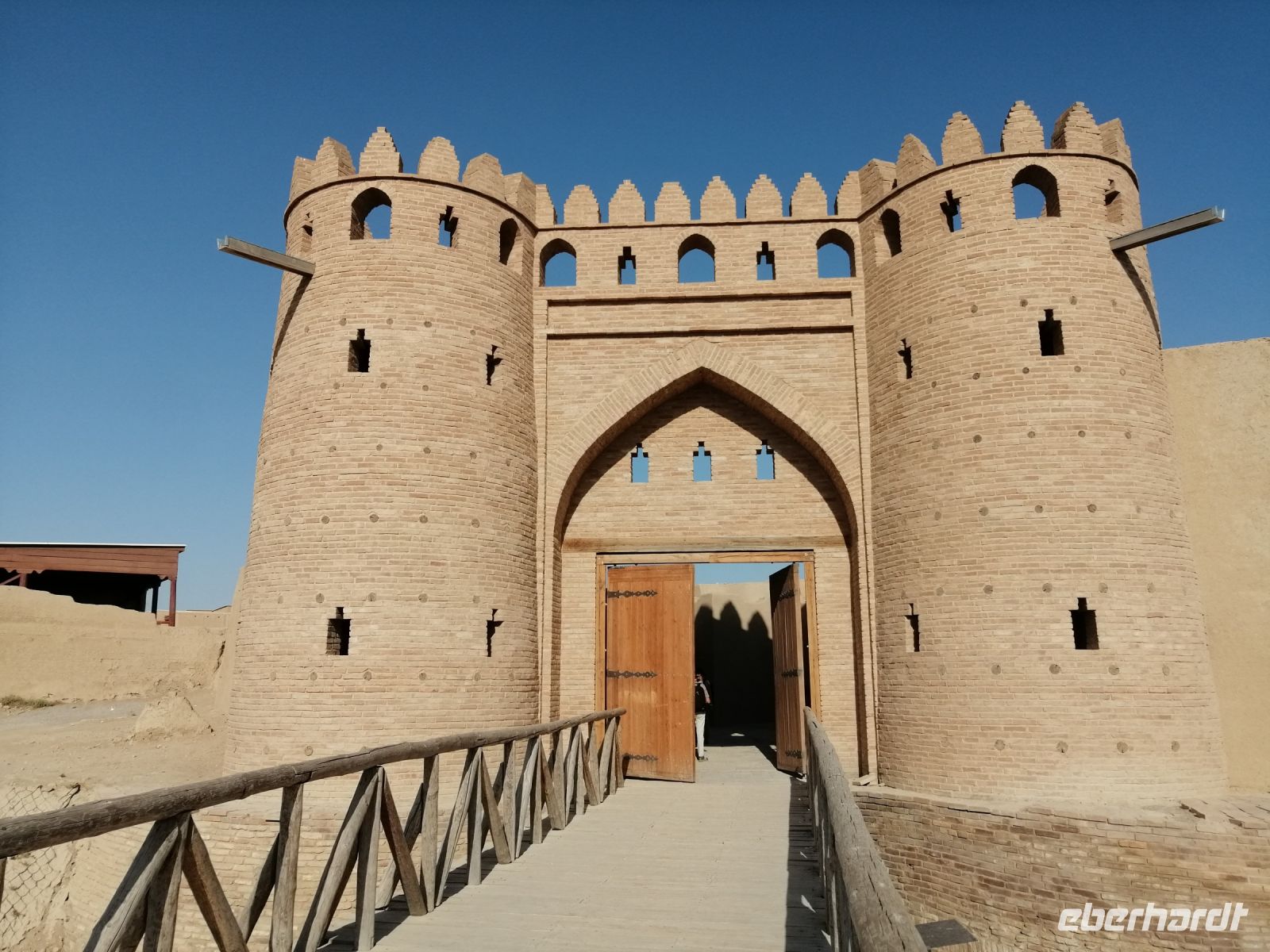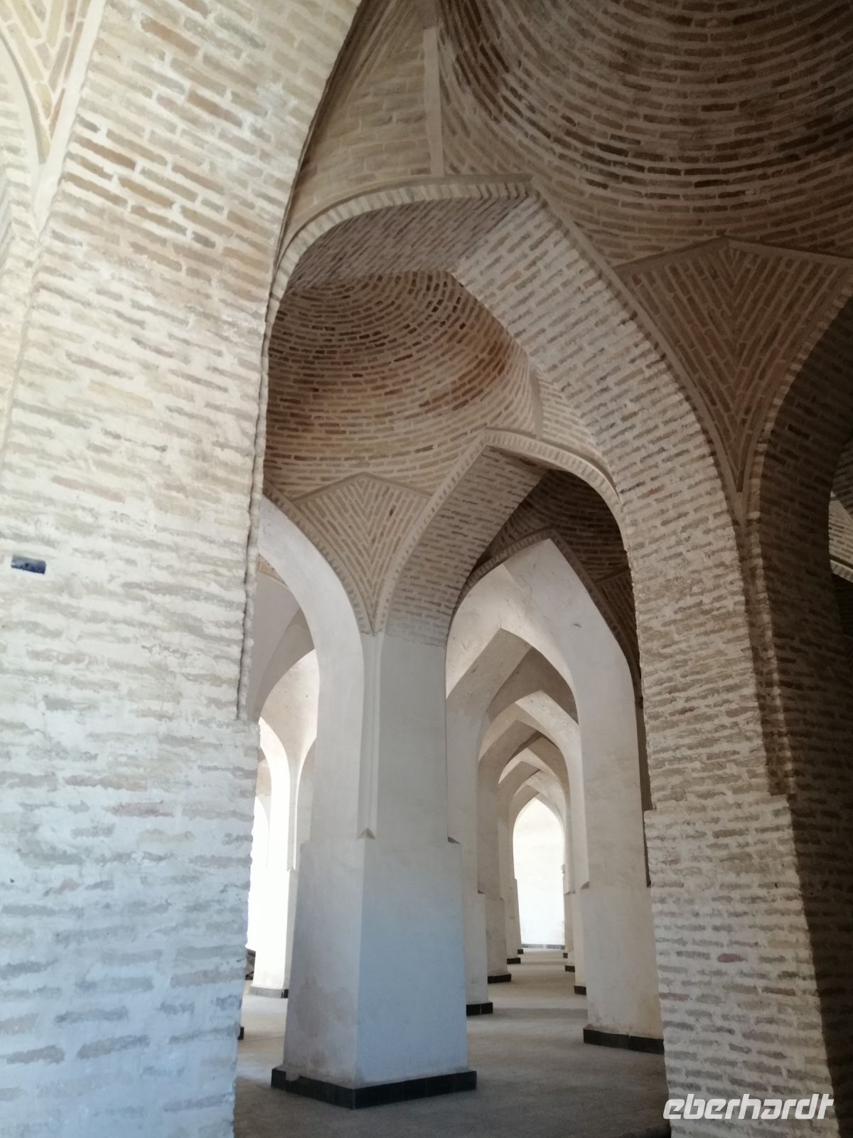 Auf dem Gelände der Zitadelle schauten wir uns die Jome-Moschee und den Thronsaal des Herrschers an. Der Thronsaal ist ein gepflasterter Hof, von der ehemaligen Überdachung sind nur einige das Dach tragende Säulen erhalten. Der Saal ist durch eine Zusatzwand hinter dem Eingang gekennzeichnet, bis zu dem sich Besucher rückwärts bewegen musste, um dem Herrschern niemals den Rücken zuzukehren. Erst beim Erreichen der Wand, durfte man sich umdrehen. Im ehemaligen Palast des Herrschers, einem einfachen Backsteinbau, besichtigten wir das Museum für Landeskunde.