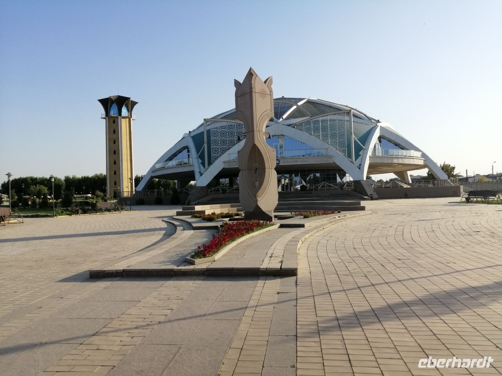 Heute geht der erste Teil unserer großen Reise durch Zentralasien zu Ende: wir verlassen Kasachstan und beginnen die Entdeckung Usbekistans! Bis es soweit ist, besichtigten wir noch in Turkestan das Mausoleum des bekannten Sufisten und Dichters Ahmed Jassewi. Er war der rechtmäßige Nachfolger Mohammeds, den die Menschen bereits zu Lebzeiten verehrten. Im Alter von 63 Jahren zog er sich im Gedenken an den Propheten Mohammed, der mit 63 Jahren verstorben war, aus dem irdischen Leben zurück. Die nächsten 10 Jahre verbrachte er meditierend in einer Erdgrube, die wir uns auch angeschaut haben. Das Mausoleum befindet sich auf dem Gelände des großen Freilichtmuseums. Im Rahmen der Museumsführung erkundeten wir auch Juma-Moschee, die unterirdische Moschee Hilowat, ein mittelalterliches Badehaus, eine Galerie mit Steinskulpturen und das Esumhan-Mausoleum sowie das Mausoleum Rabija Sultan Begim.