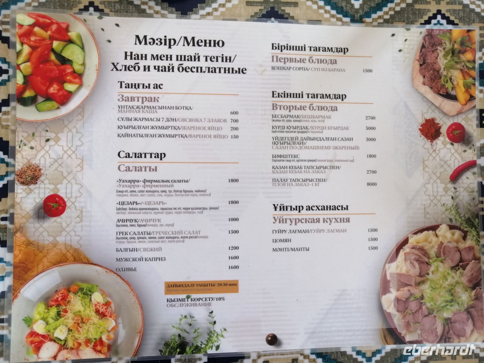 Unterwegs nach Turkestan legten wir einen Stopp am Qarabatyr-Denkmal (1694 - -1754) und aßen im Café Kohak Yi typisch kasachisches Essen: Beschbarmak. Es wird mit fettem, gekochtem Hammel- oder Pferdefleisch (oder beidem) zubereitet und zusammen mit Lasagne-ähnlichen, hauchdünn ausgerollten, gekochten Teigfladen mit der Hand gegessen.
