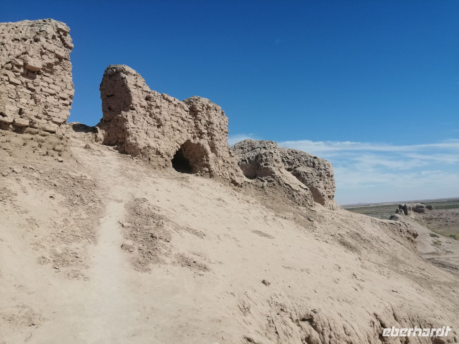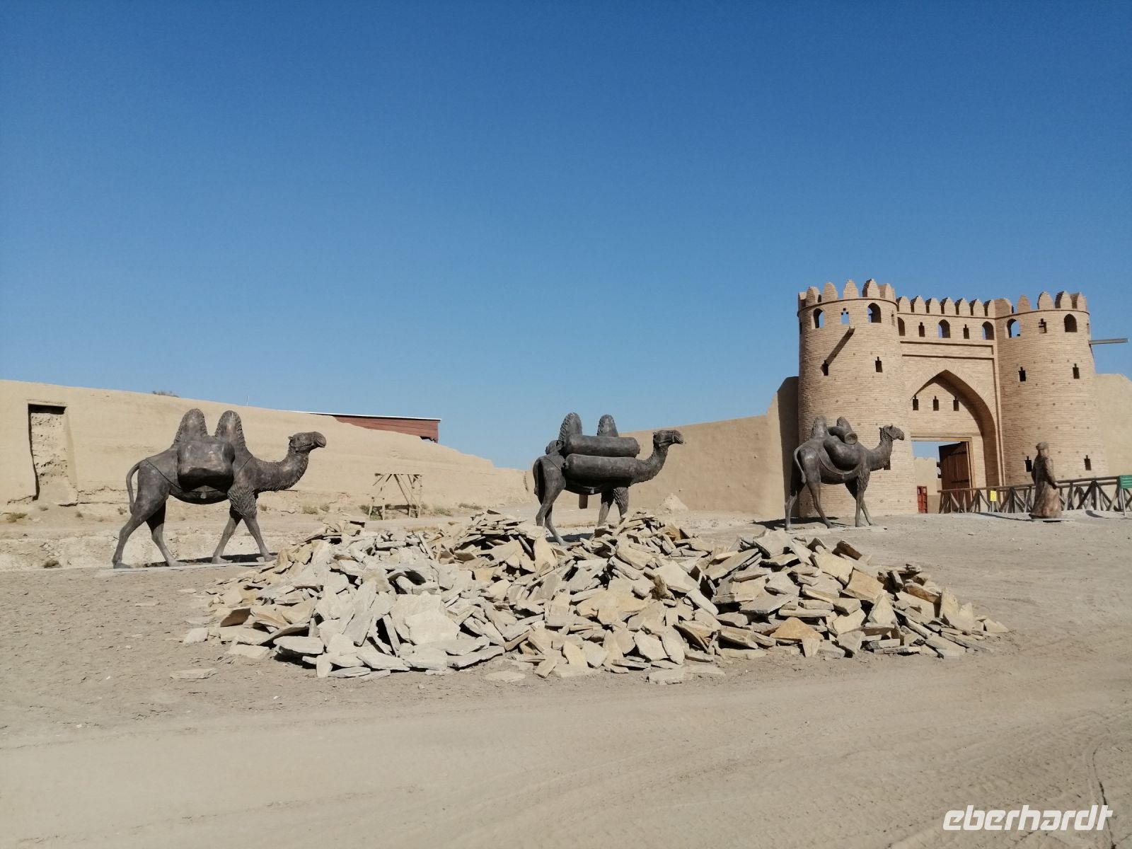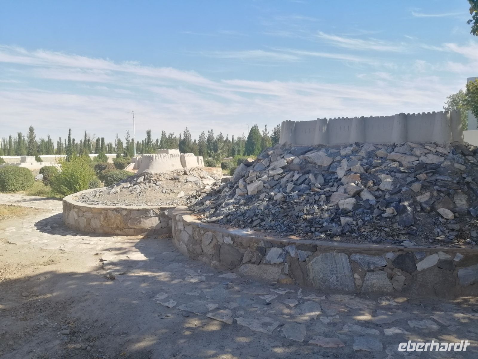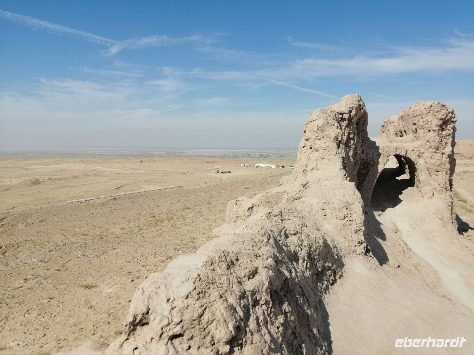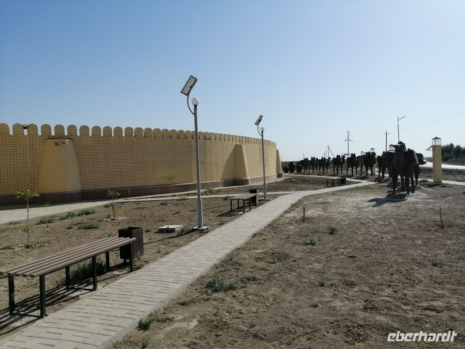 Am späten Nachmittag erreichten wir die Ruinen der alten Geisterstadt Otrar. Hier unternahmen wir eine geführte Exkursion durch das gesamte Freilichtmuseum und bewunderten nicht nur das städtische Badehaus aus den IX – XV Jh., sondern auch Zschuma-Moschee (XIV Jh.), das Eingangstor „Zscharakty“ (XI - -XVII Jh.) in die Altstadt und die Figuren in den Lehmhütten, die die Handwerker von damals darstellten. Von unserem Guide erfuhren wir, dass die Stadt Otrar im Jahre 1220 von den Truppen Tschingis Khans dem Erdboden gleichgemacht wurde. Zu Beginn des 15. Jh. gab es die Stadt Otrar wieder: sie ist als Sterbeort von Timur Lenk (Tamerlan) in die Geschichte eingegangen.