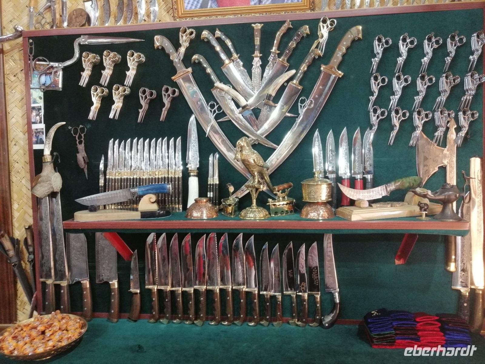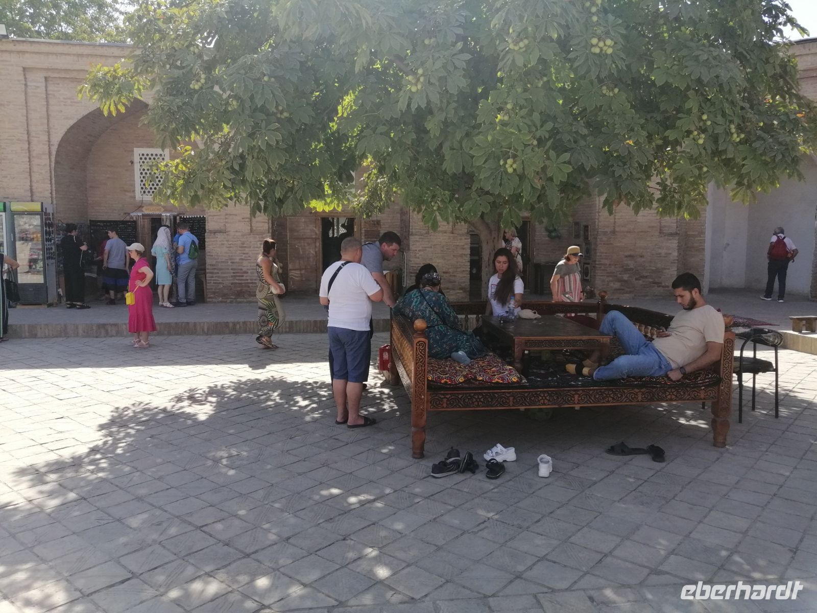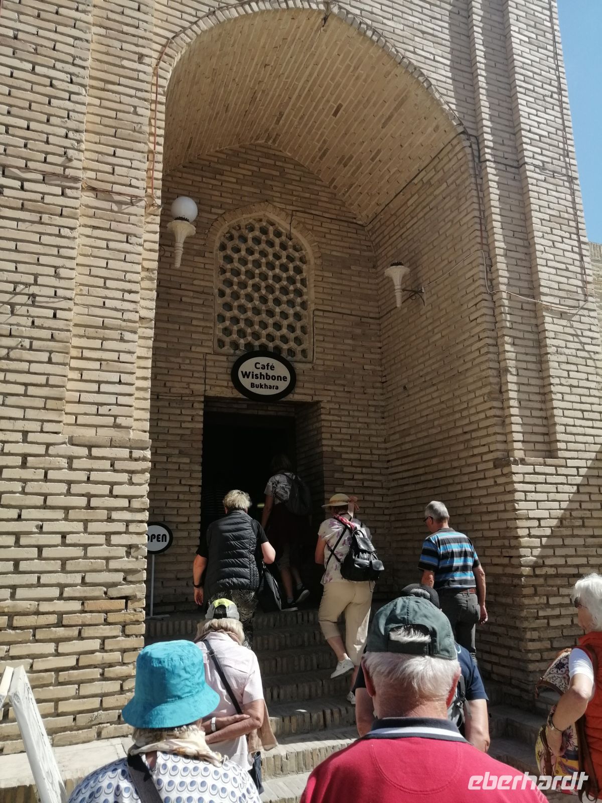 Die kurze Imbiss-Pause im deutschen Café „Wishbone“ mitten in der Altstadt tat uns allen sehr gut! Mit neuen Kräften besuchten wir danach eine Waffen-Schmiede (Messer und Schären) und die Abdulasischana-Medresse, in der wir uns ein Studenten-Zimmer (besser gesagt eine Wohn-Zelle) anschauen konnten.