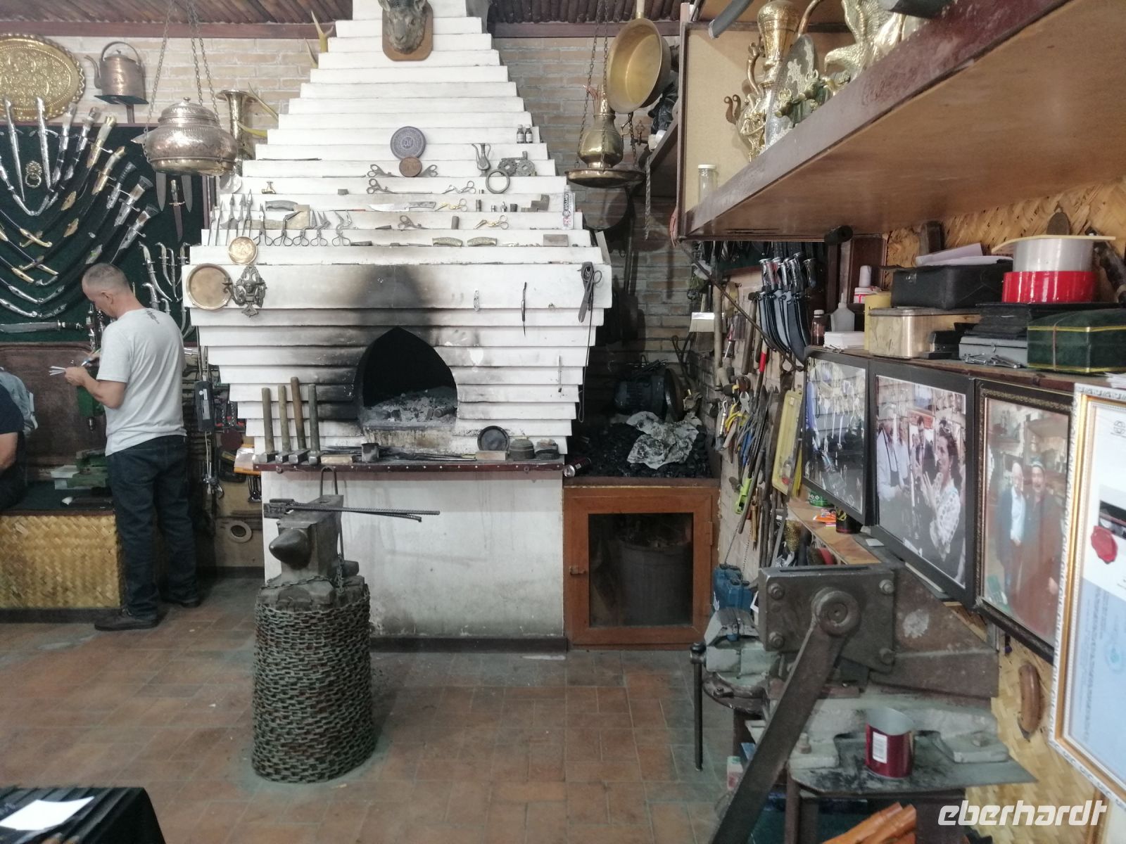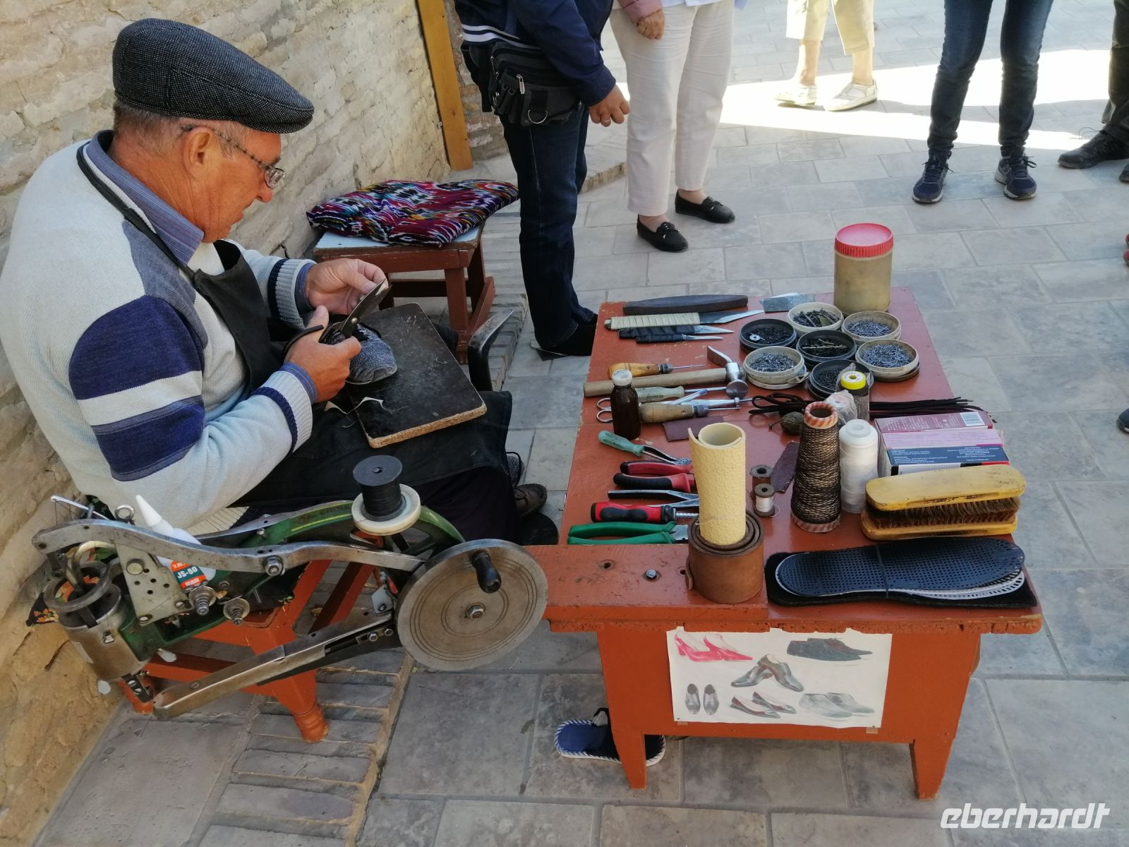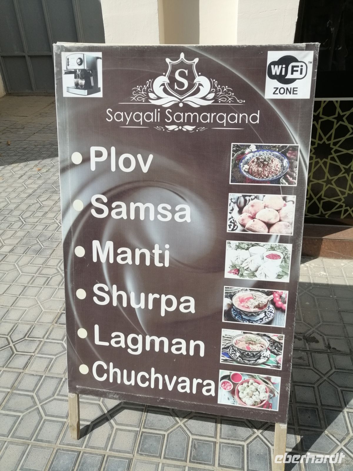 Die kurze Imbiss-Pause im deutschen Café „Wishbone“ mitten in der Altstadt tat uns allen sehr gut! Mit neuen Kräften besuchten wir danach eine Waffen-Schmiede (Messer und Schären) und die Abdulasischana-Medresse, in der wir uns ein Studenten-Zimmer (besser gesagt eine Wohn-Zelle) anschauen konnten.