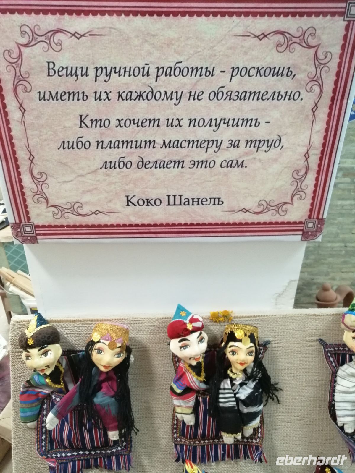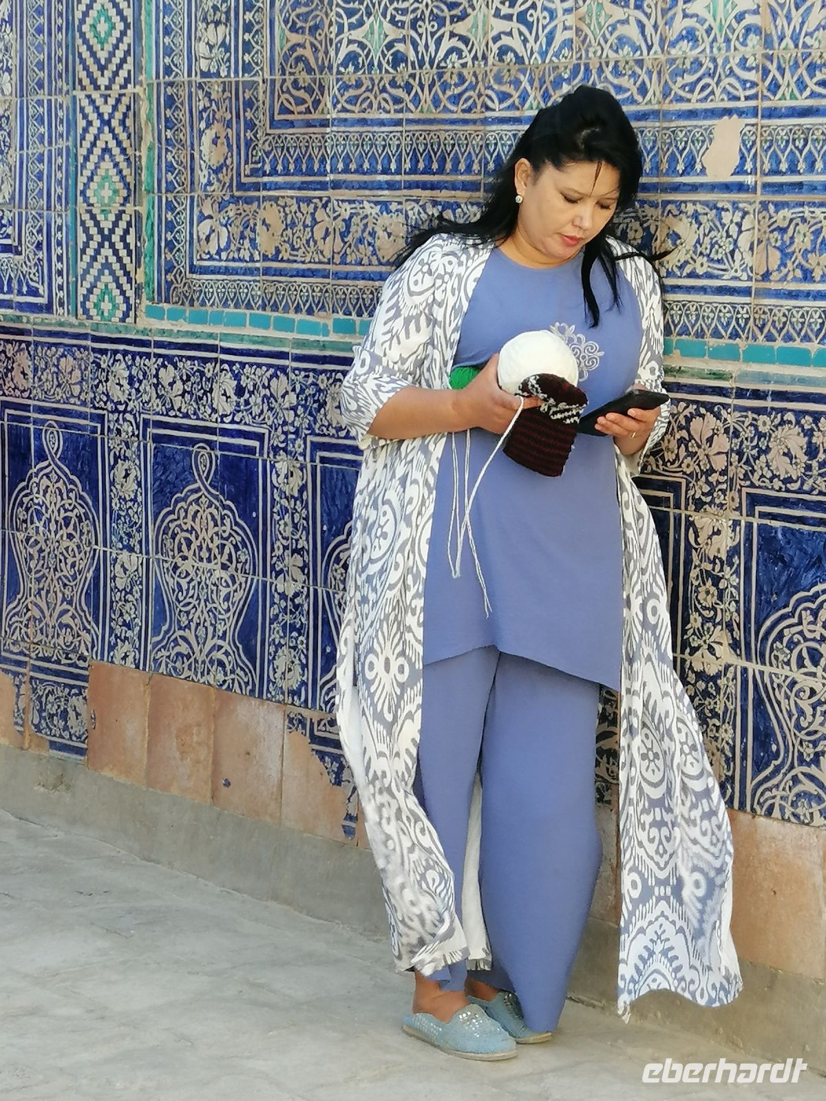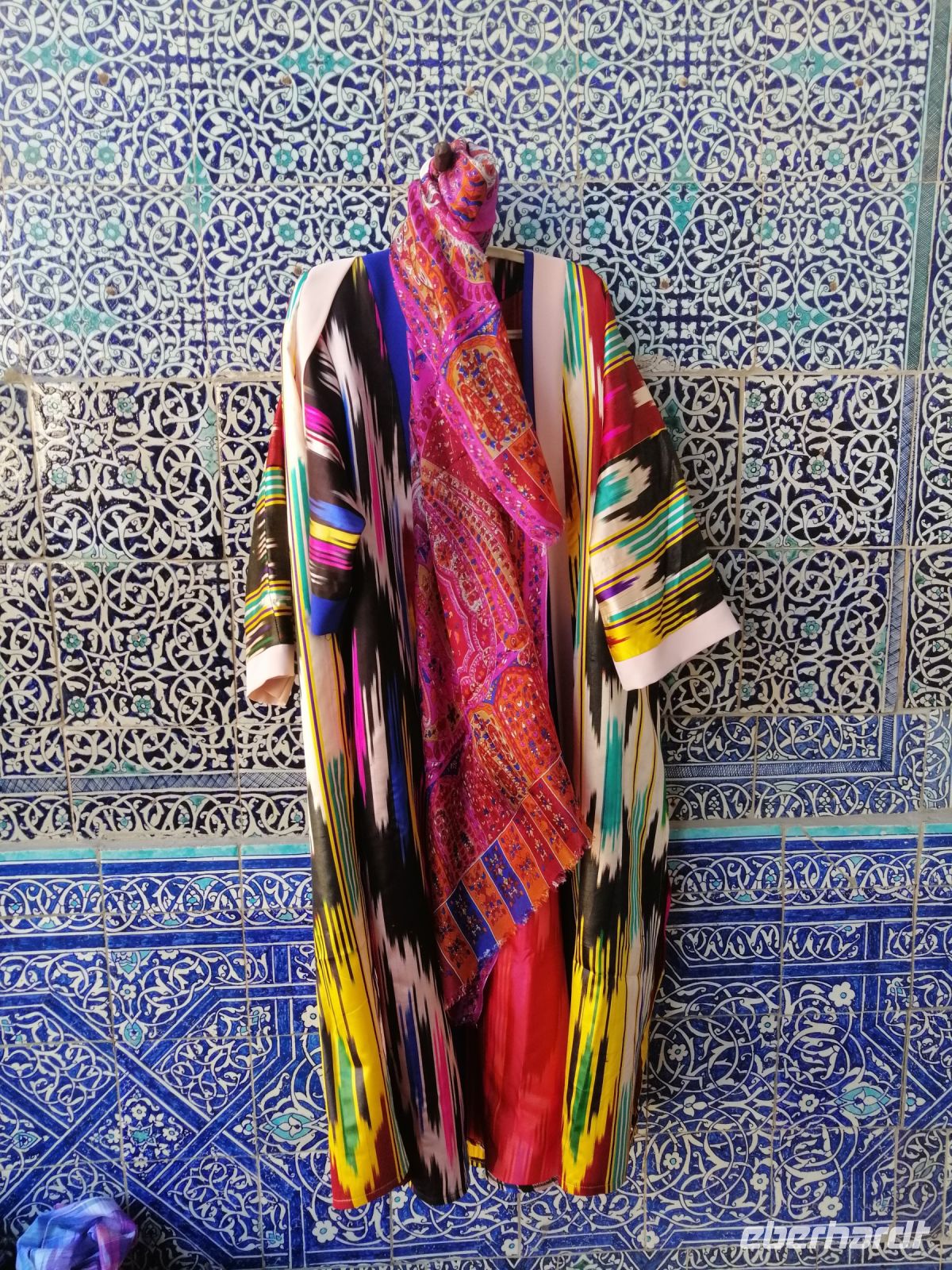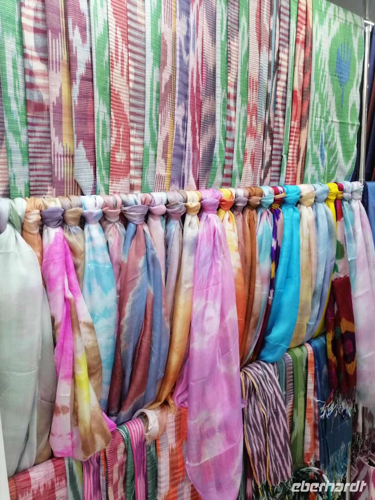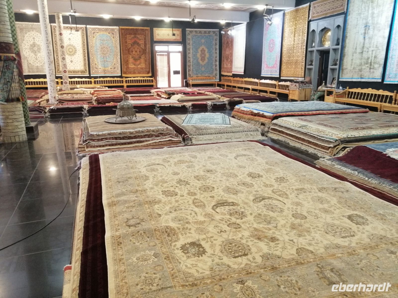 Nach der Besichtigung des Poi-Kalon-Ensembles erlebten wir zwei wunderbare Vorführungen in zwei Fachgeschäften und zwar einmal in einem Teppichladen, in dem uns die Managerin persönlich die Feinheiten des Teppich-Knüpfens beleuchtete (es gab auch ganz leckeren Grünen Tee mit orientalischen Süßigkeiten) und zum zweiten besuchten wir eine Kleider-Boutique, in der wir verschiedene hübsche Kleider aus Baumwolle und Seide bewunderten und kaufen konnten.