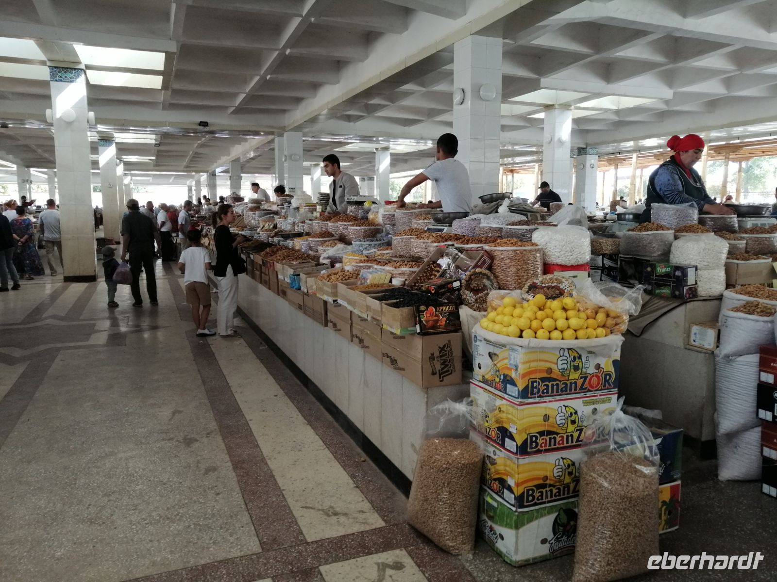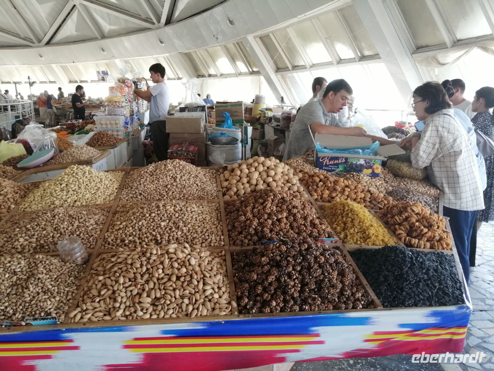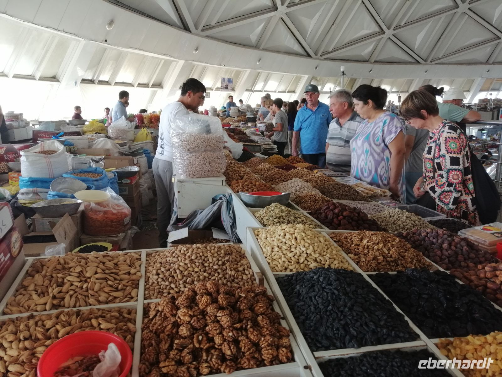 Selbstverständlich besuchten wir auch den berühmten Siyob-Basar, der sich gleich neben der Moschee befand. Das für feilschen notwendige Kleingeld, wechselten wir direkt am Eingang des Basars und kauften dort nicht nur Trockenfrüchte wie „KIschmisch“, Honigmelone oder Walnüsse, sondern auch typische zentralasiatische Gewürze wie Kreuzkümmel, Koriander, Kardamom und Kurkuma.