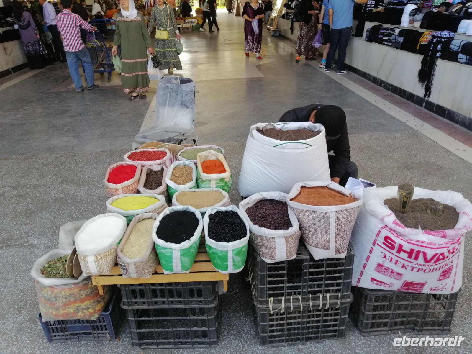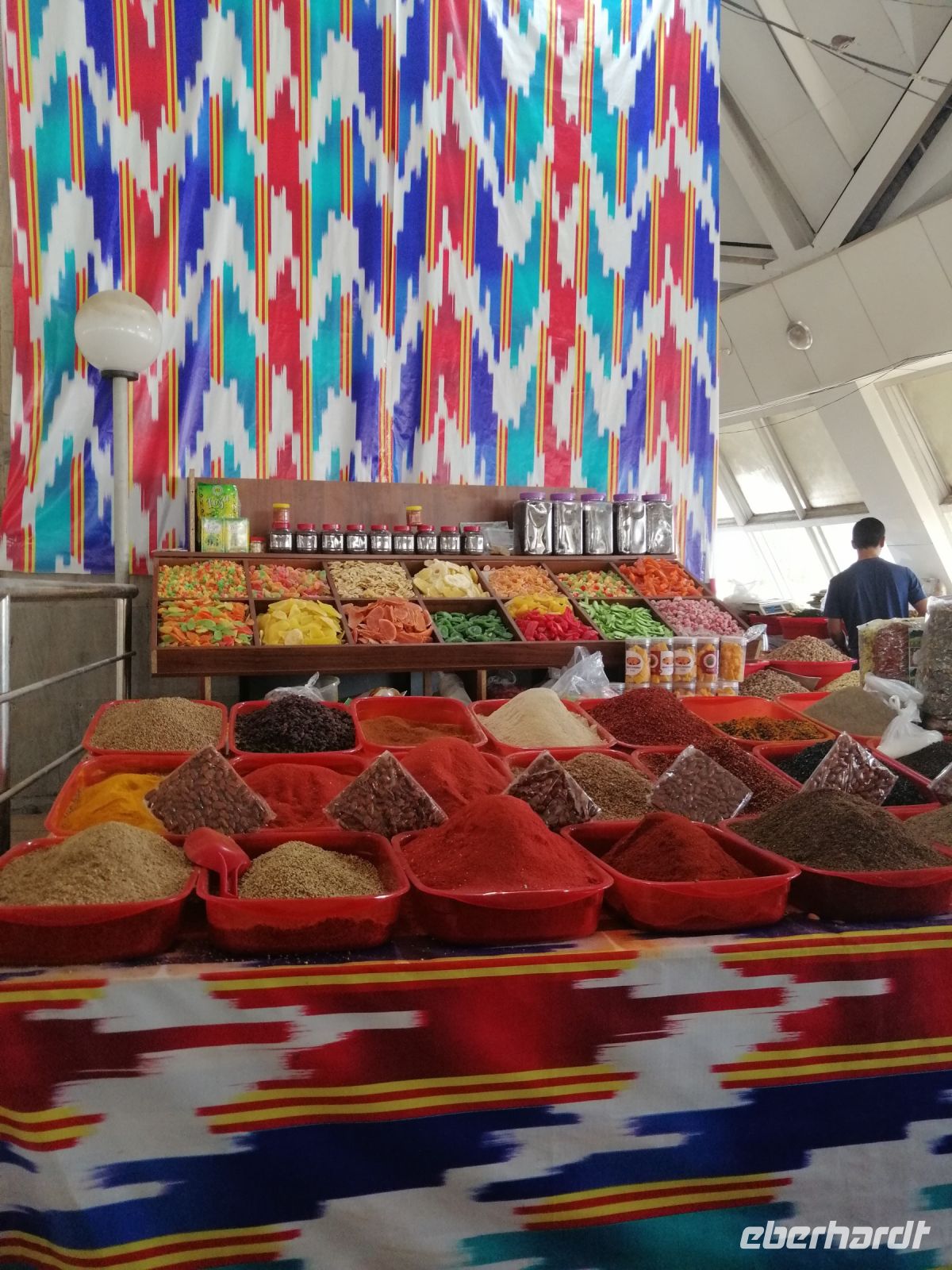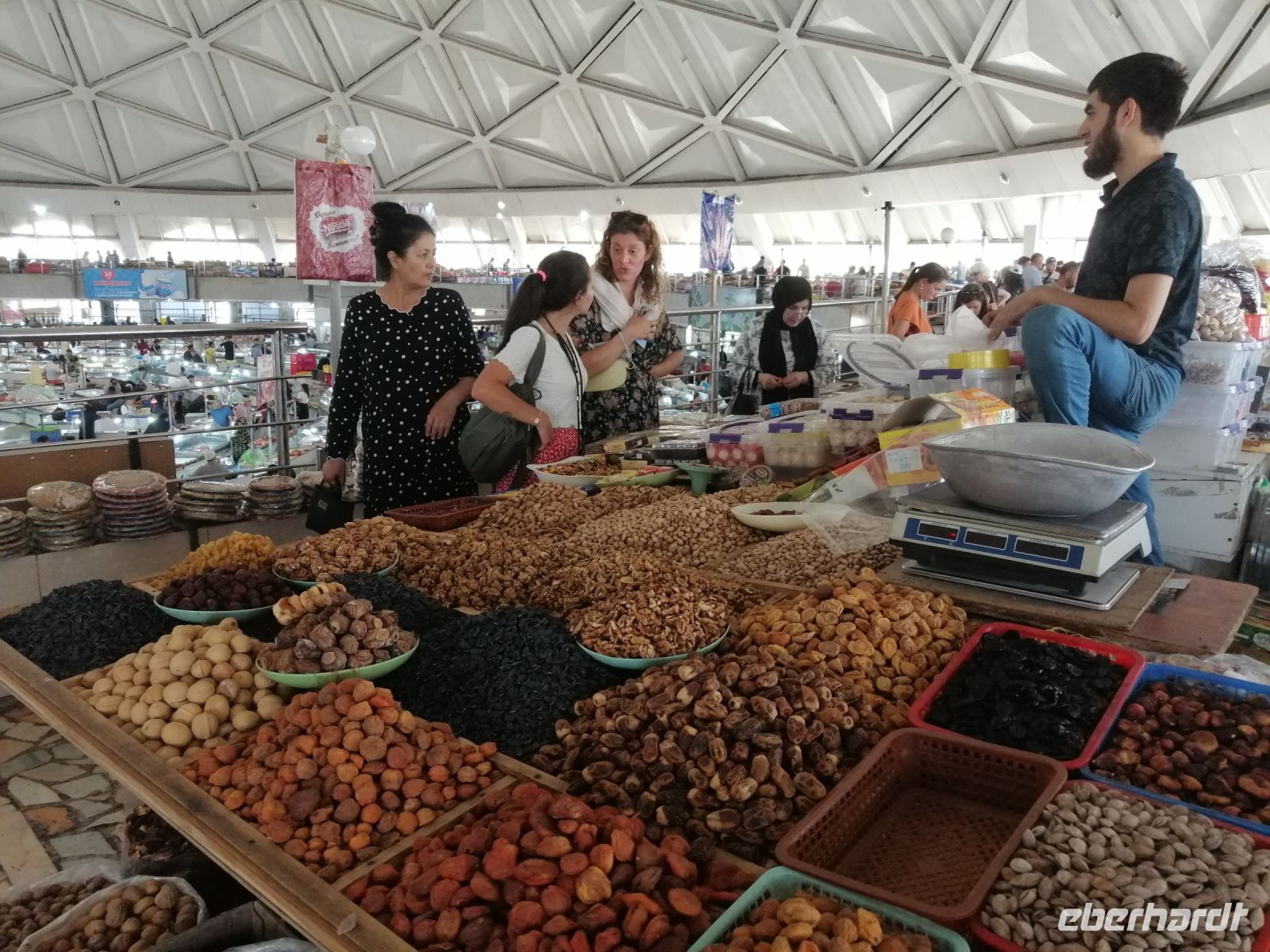 Selbstverständlich besuchten wir auch den berühmten Siyob-Basar, der sich gleich neben der Moschee befand. Das für feilschen notwendige Kleingeld, wechselten wir direkt am Eingang des Basars und kauften dort nicht nur Trockenfrüchte wie „KIschmisch“, Honigmelone oder Walnüsse, sondern auch typische zentralasiatische Gewürze wie Kreuzkümmel, Koriander, Kardamom und Kurkuma.