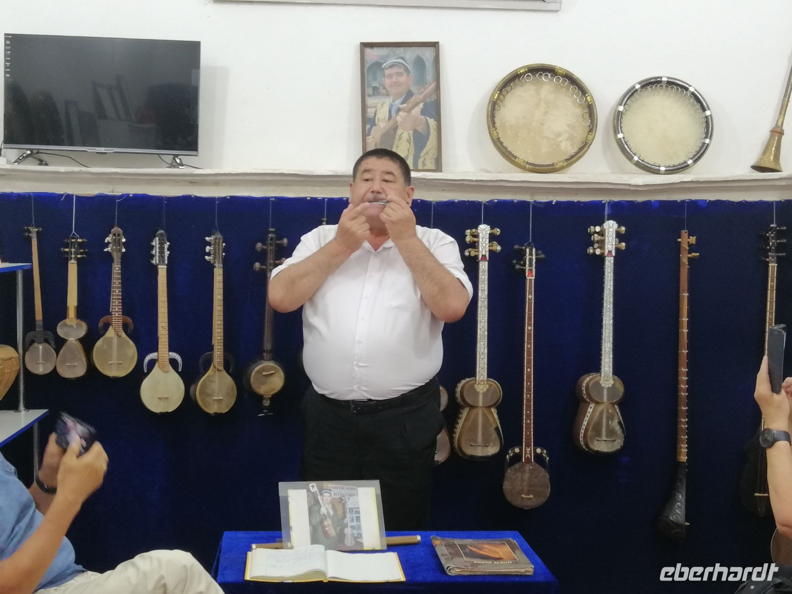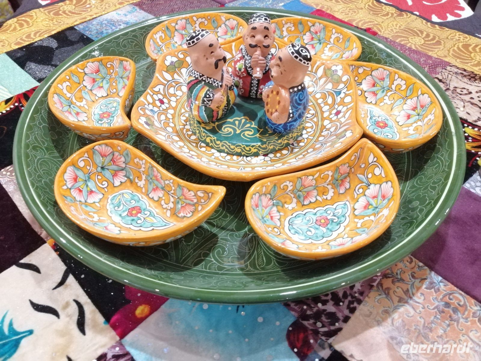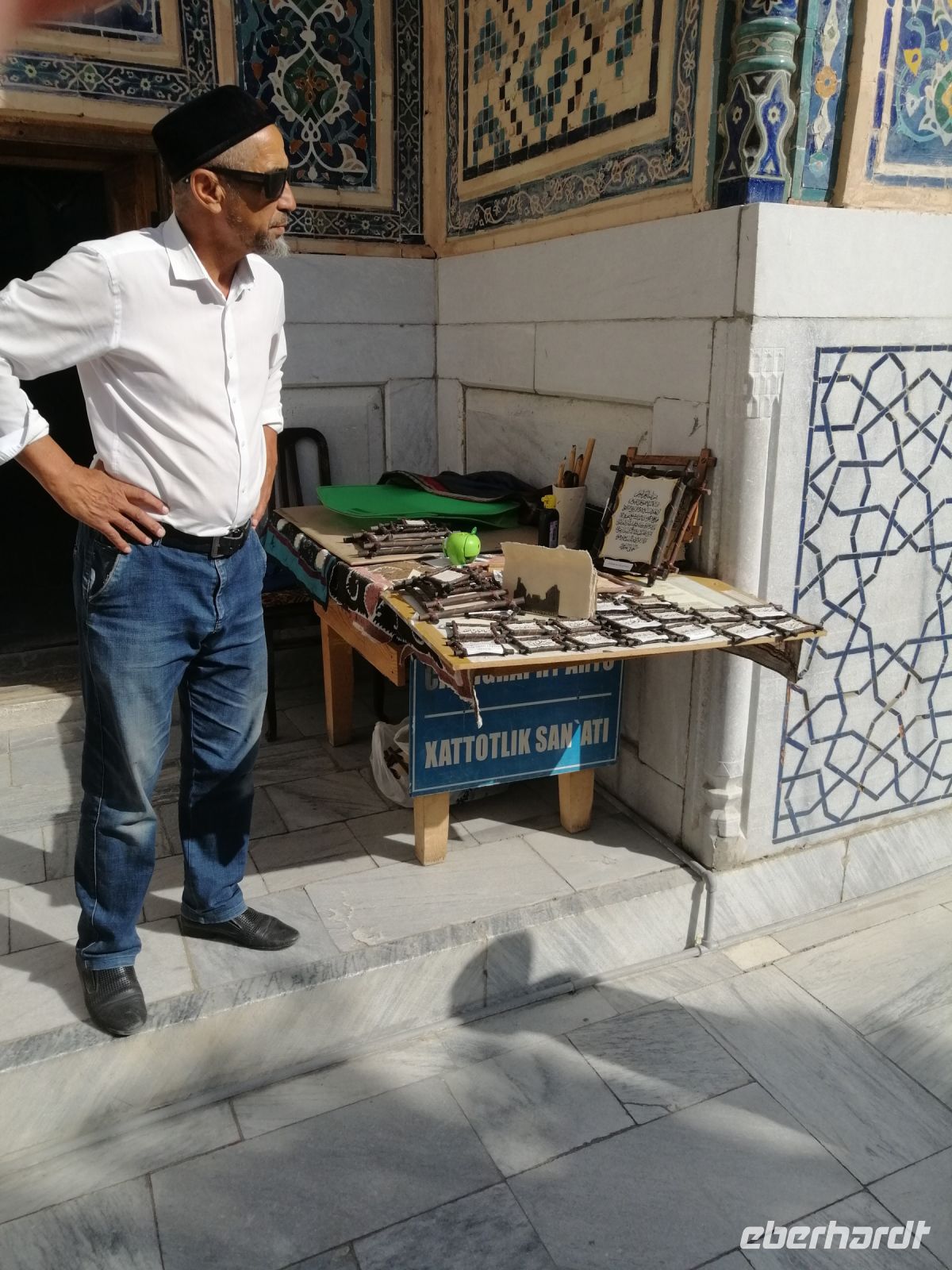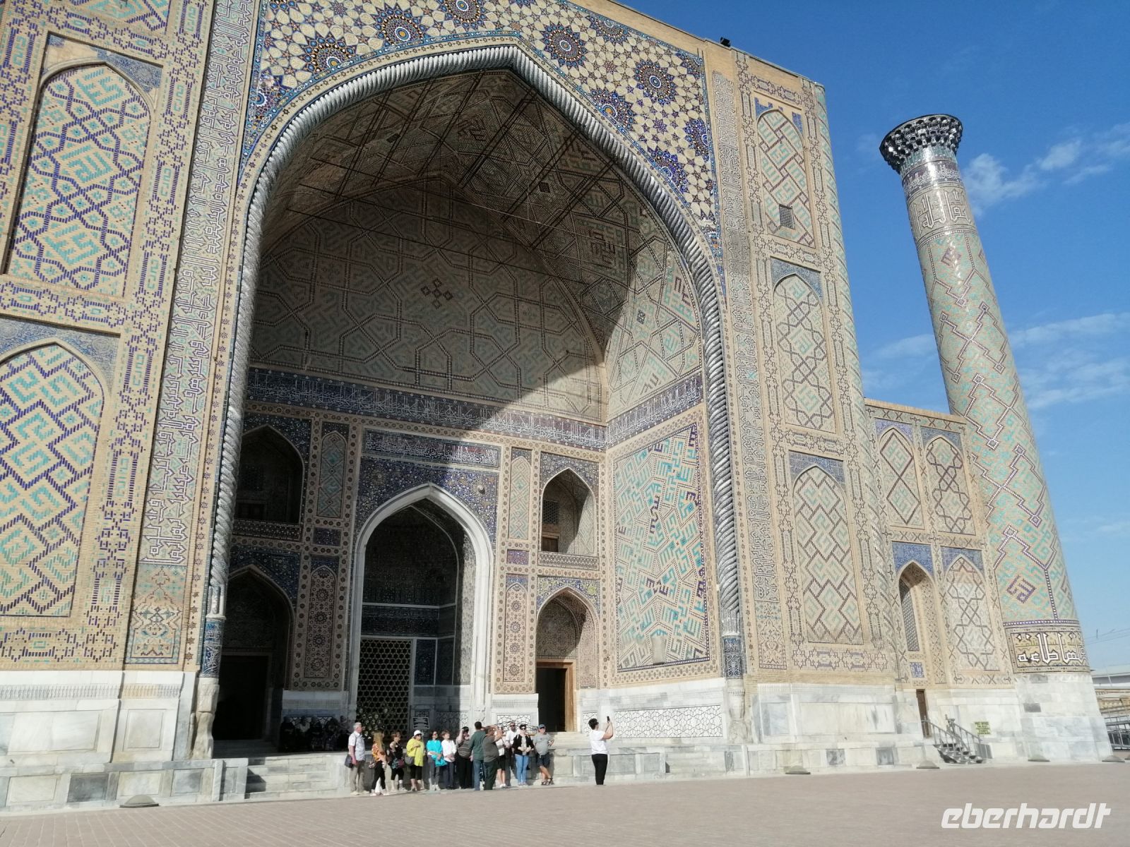 Den Tag heute widmeten wir komplett Samarkand und erlebten weitere Sehenswürdigkeiten dieser historischen Berühmtheit. Wir starteten mit Registan – dem gewiss eindrucksvollsten Bau-Ensemble Zentralasiens. Der Registan-Platz ist von drei prächtigen Medressen umrahmt: Ulugbek-Medresse, Sherdor-Medresse, Tillakori-Medresse. Alle drei sind in puncto Verzierung und Farbe sehr beeindruckend! In einer Keramik-Werkstatt informierte uns Gulnora über die Techniken der Lehmbrennerei und zeigte verschiedene Mosaik-Fliesen. Ein besonderes Erlebnis war auch die Vorführung eine Reihe von einheimischen Musikinstrumenten und kurzweiligen Geschichten dazu direkt vom Meister einer Musik-Werkstatt in der Sherdor-Medresse.