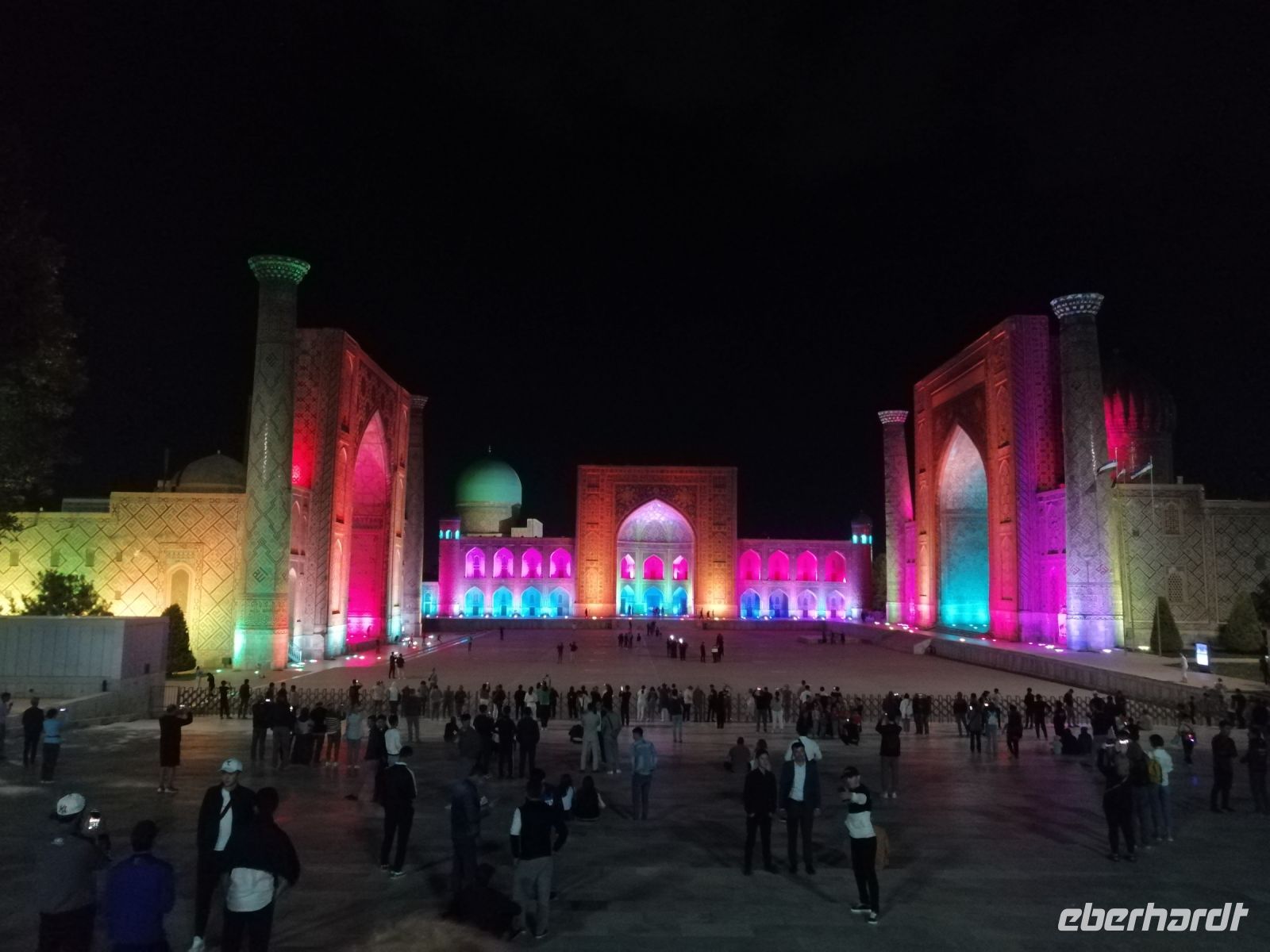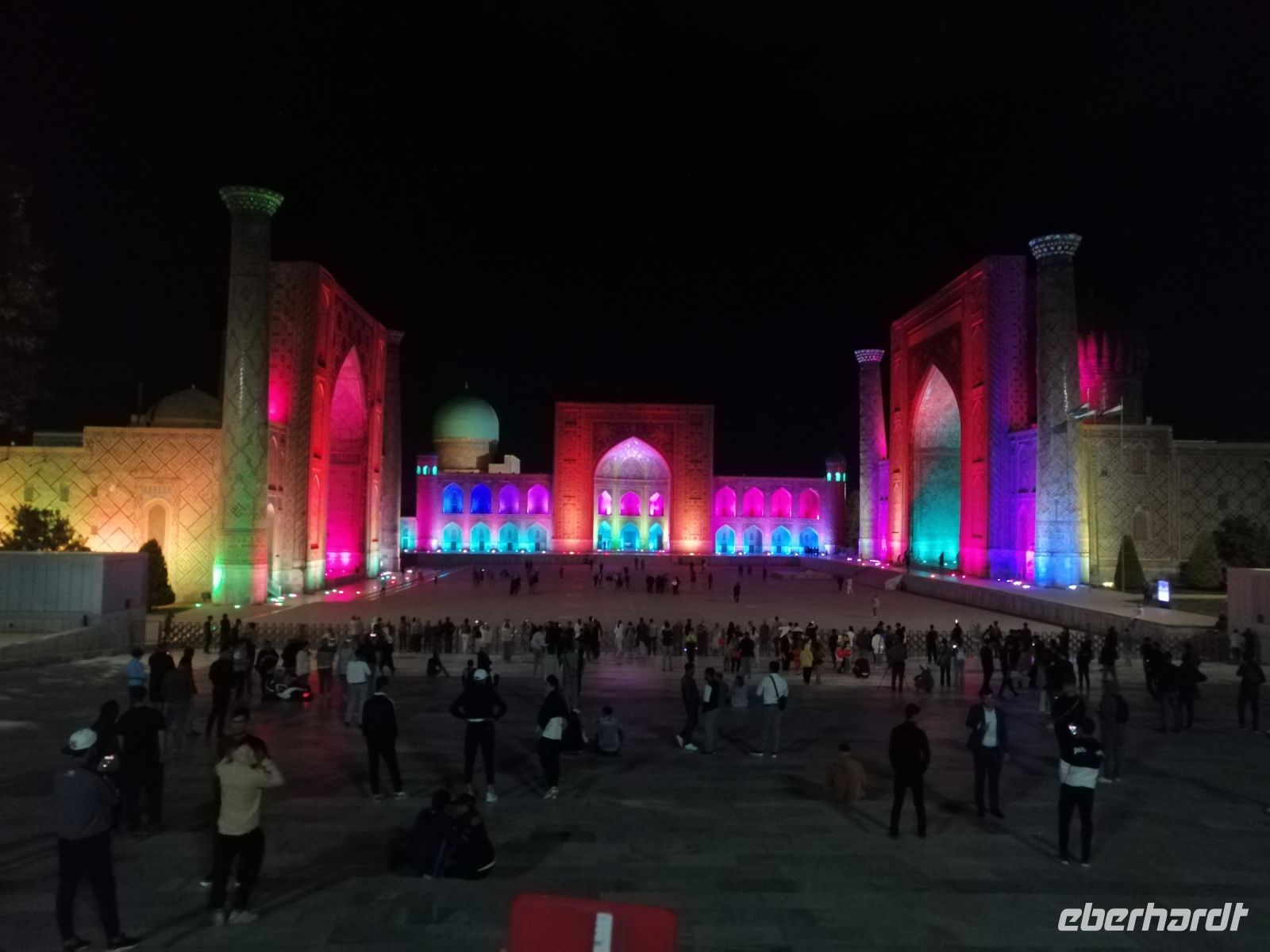 Die kurze Besichtigung des sehr schön beleuchteten Registan-Platzes und anschließende „Mitarbeiter-Besprechung“ mit Cognac in der Hotellobby rundeten den erlebnisreichen Tag in Samarkand ab.