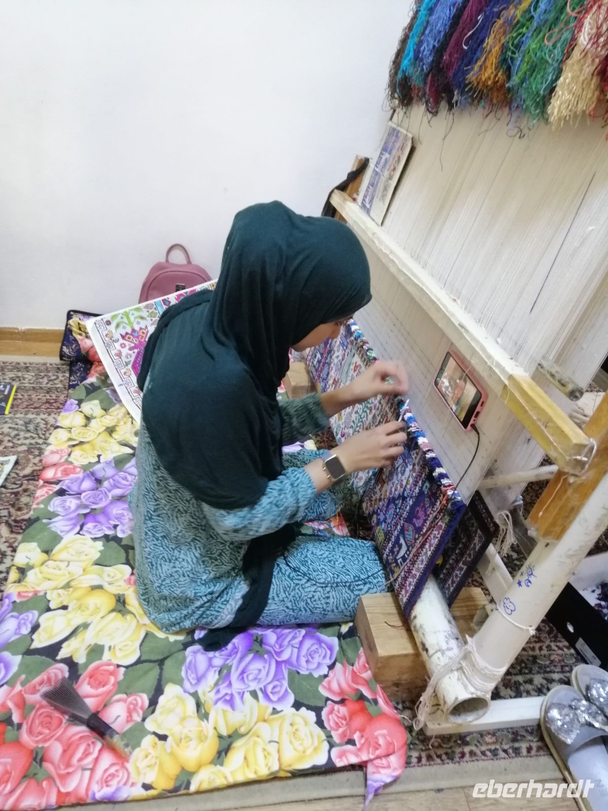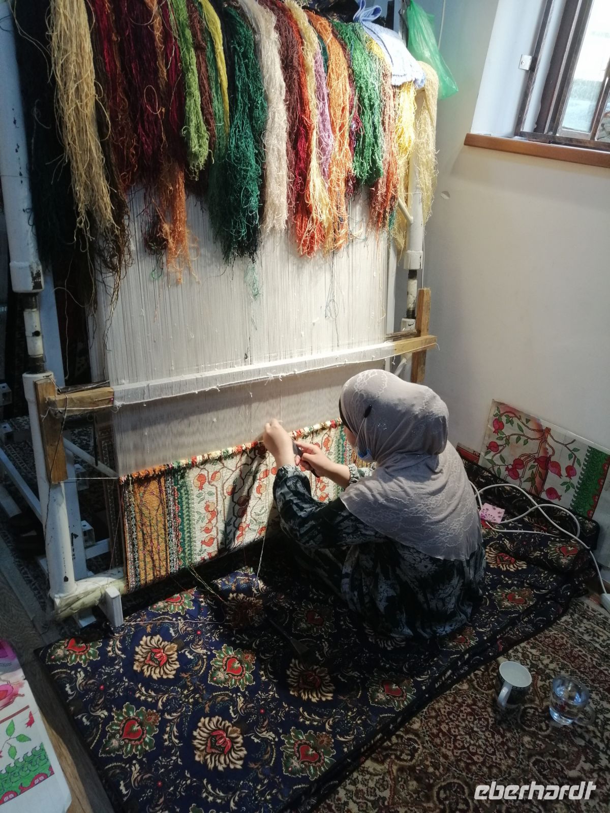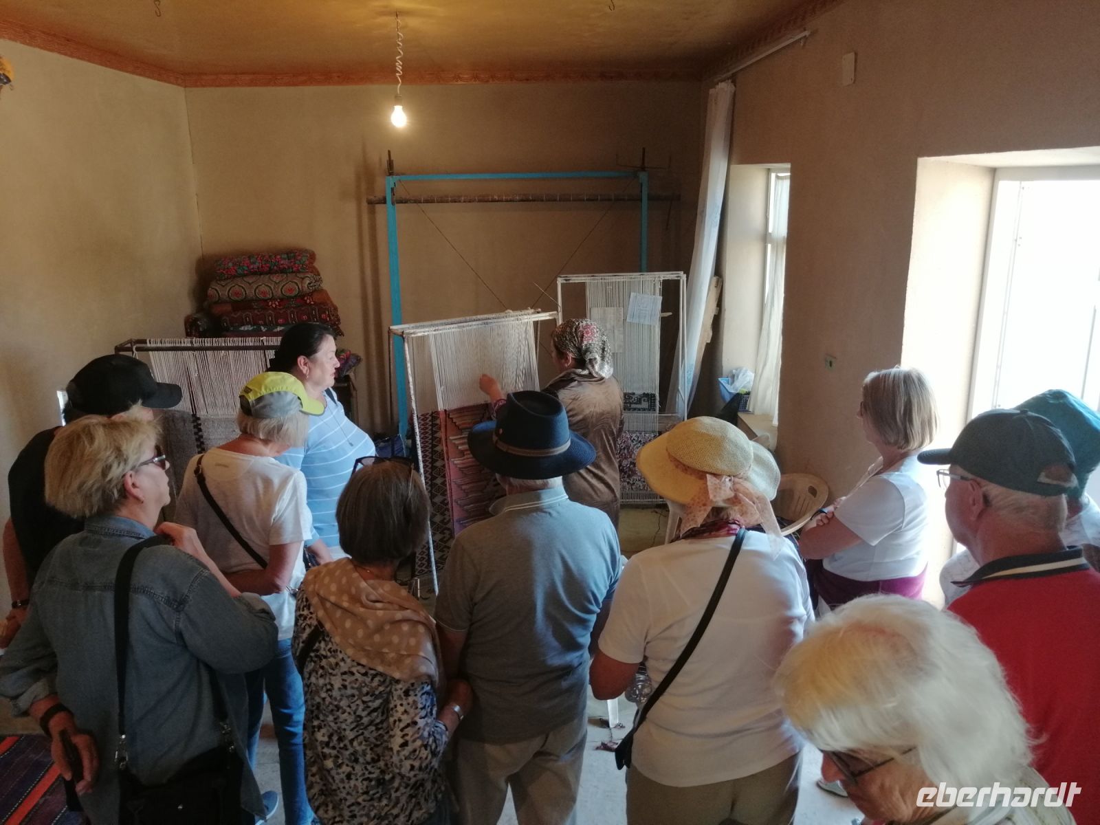 Unterwegs hielten wir bei einer Lehrerfamilie an und ließen uns ihre Teppich-Werkstatt zeigen. Außerdem wurden wir mit Tee und Süßigkeiten verköstigt. Groß war unsere Freunde, als der junge Sohn der Familie uns auf seiner Gitarren vorspielte und dazu ein sehr schönes Lied sang.