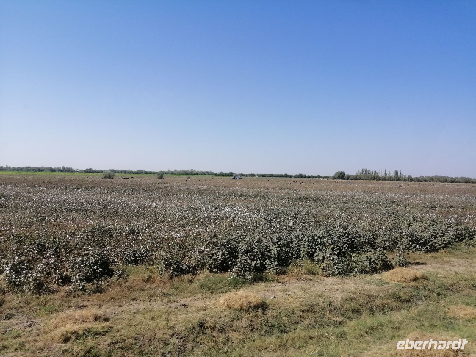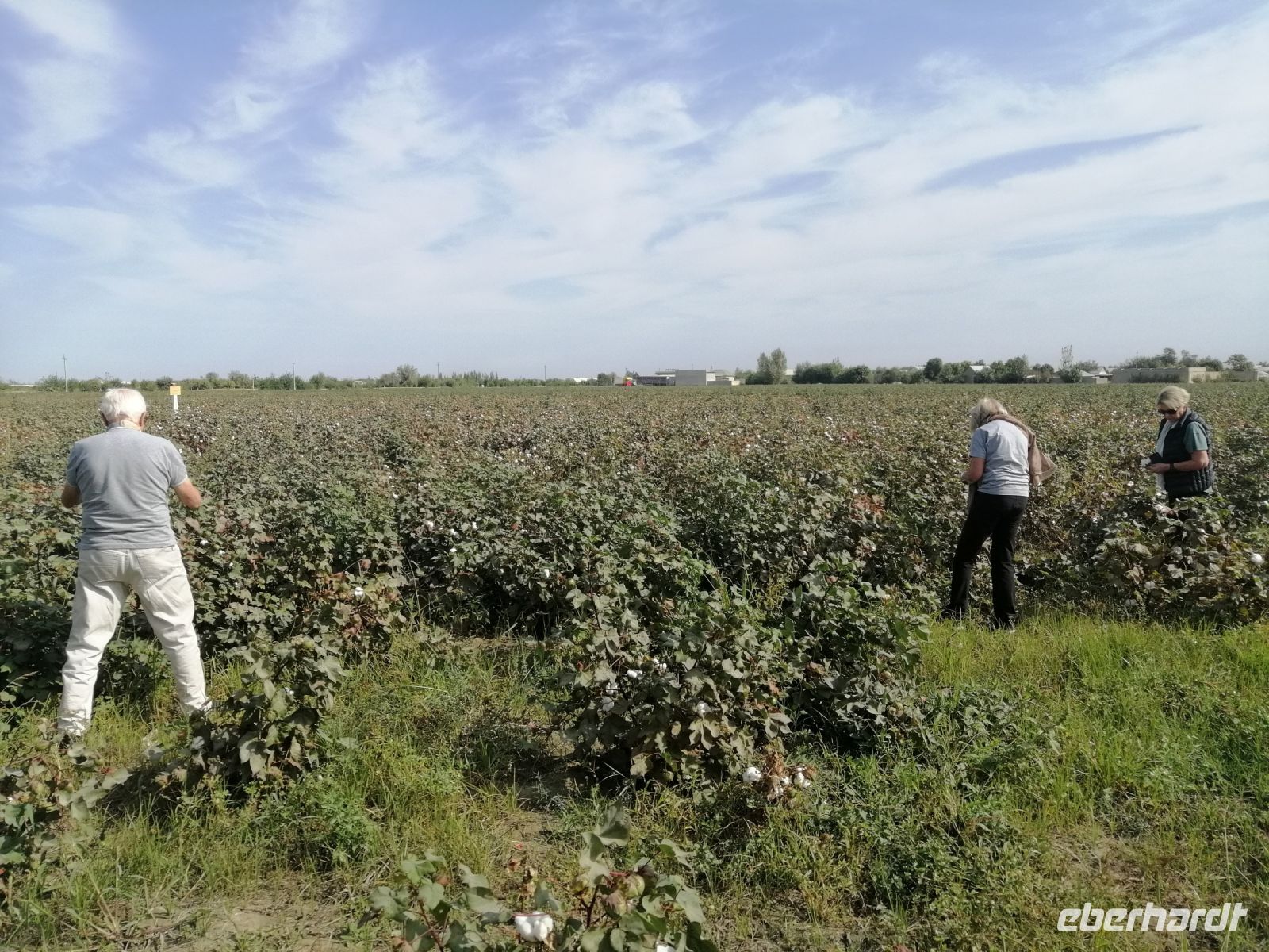 Auch während der Fahrt nach Chiwa ging es in unserem Reisebus um Architektur, Geschichte, Industrie und Rohstoffe Usbekistans und vor allem um die Baumwolle. Wir hielten sogar unterwegs an einem Feld an und schauten uns ganz genau wie die Baumwolle wächst und sich anfüllte.