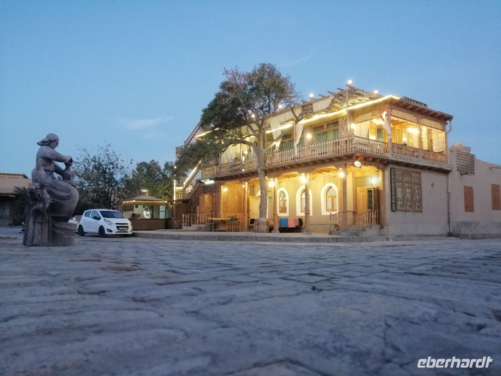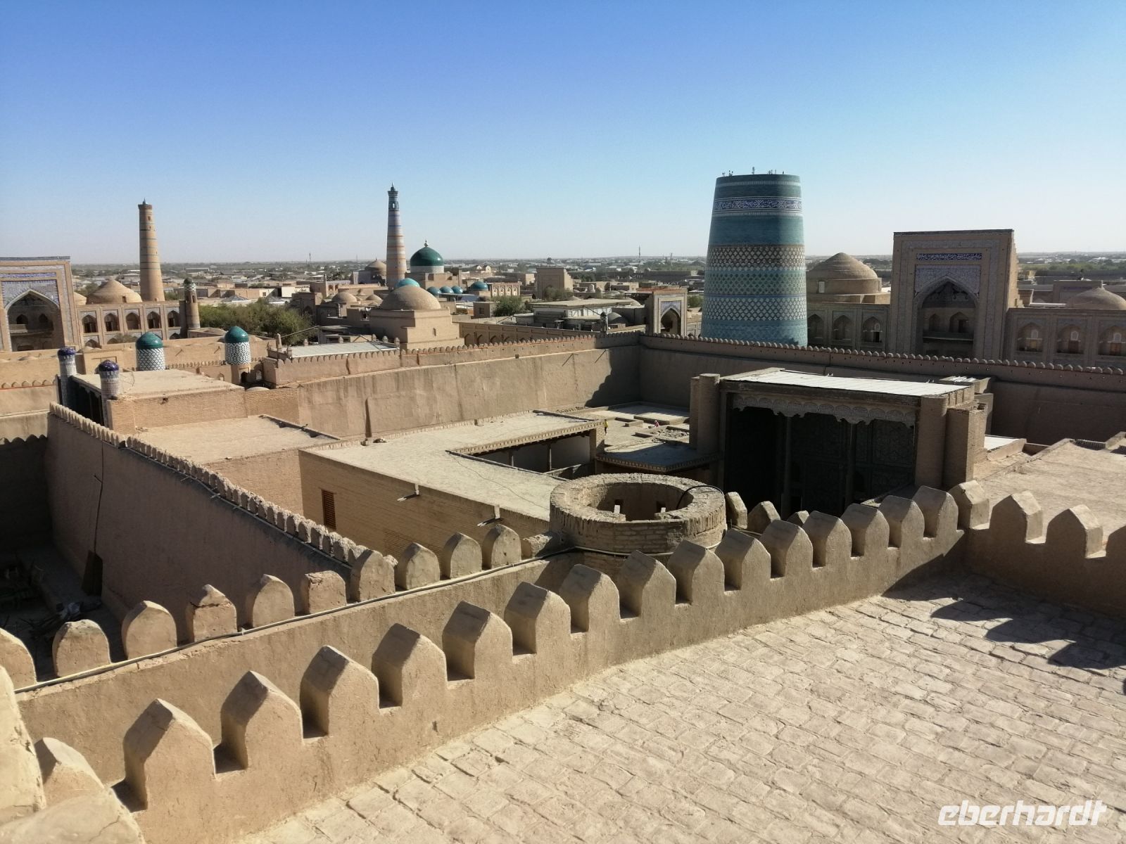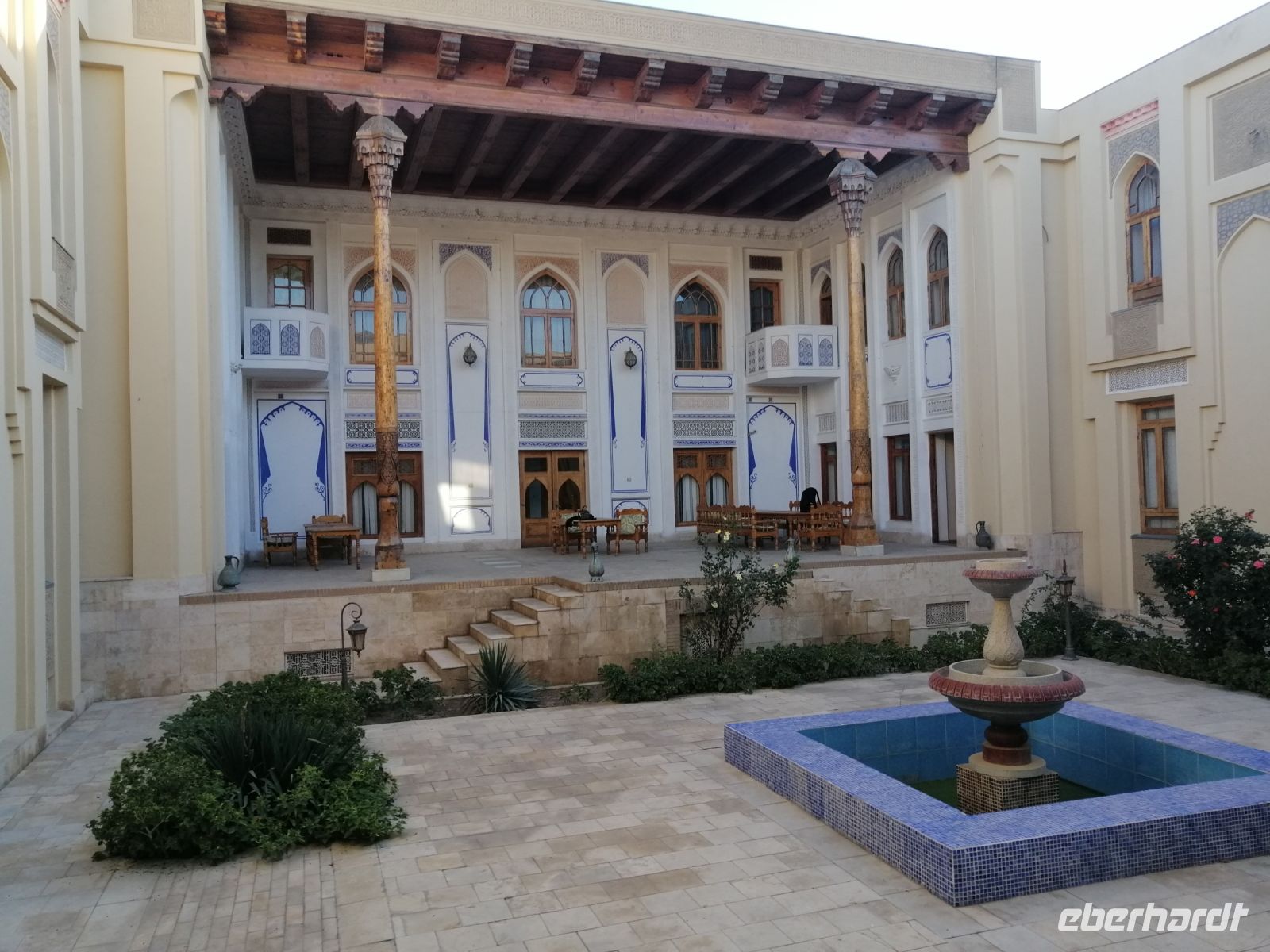 Bevor jeder die Zeit zur freien Verfügung hatte, blickten wir beim herrlichen Wetter von der Aussichtsplattform der Kochna-Festung auf die Altstadt Chiwas. Unser Abendeessen genossen wir im wunderschönen Restaurant „Mirza Boshi“. Nach dem leckeren Essen spazierten wir durch die Altstadt Chiwas zu unserem Hotel und ließen den spannenden Tag bei einem Glas Cognac oder Rotwein in der Hotel-Lobby schön ausklingeln.