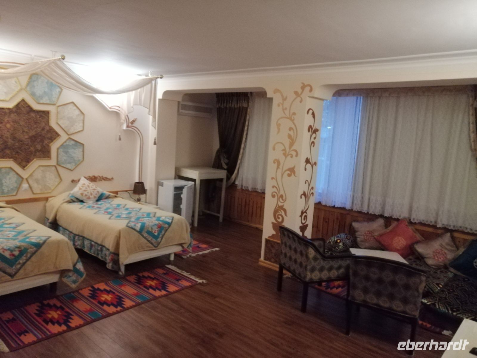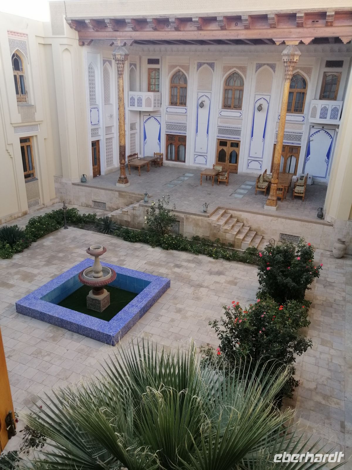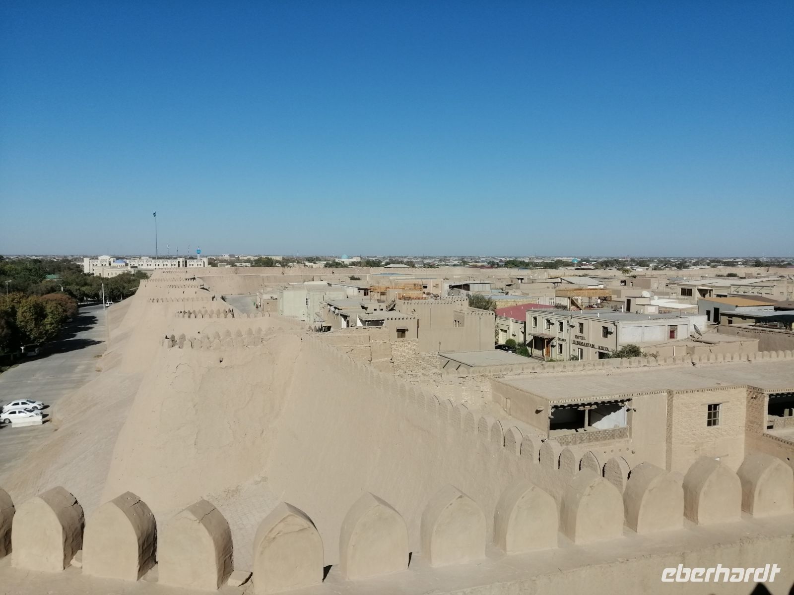 Bevor jeder die Zeit zur freien Verfügung hatte, blickten wir beim herrlichen Wetter von der Aussichtsplattform der Kochna-Festung auf die Altstadt Chiwas. Unser Abendeessen genossen wir im wunderschönen Restaurant „Mirza Boshi“. Nach dem leckeren Essen spazierten wir durch die Altstadt Chiwas zu unserem Hotel und ließen den spannenden Tag bei einem Glas Cognac oder Rotwein in der Hotel-Lobby schön ausklingeln.