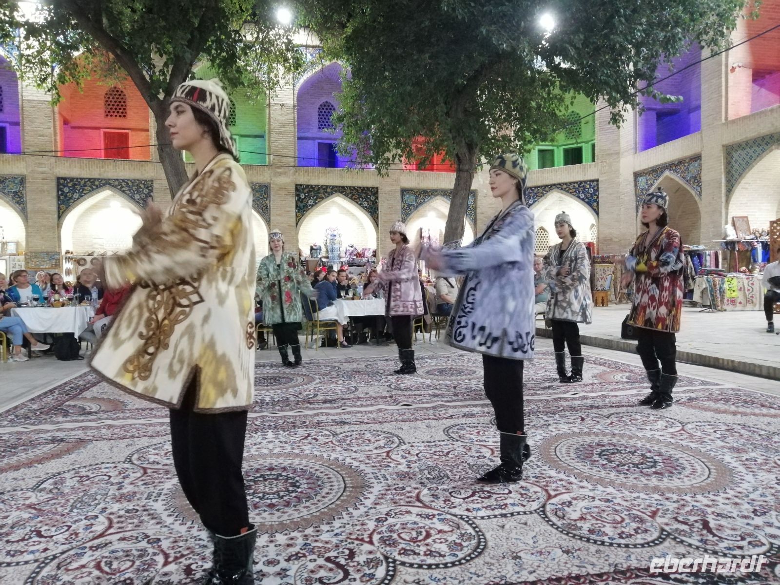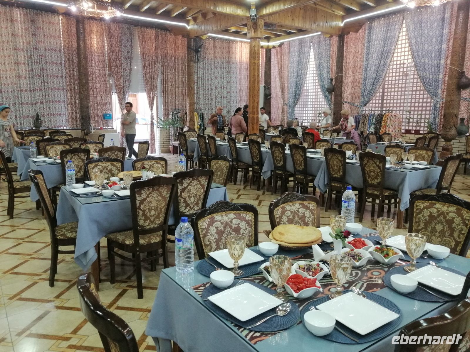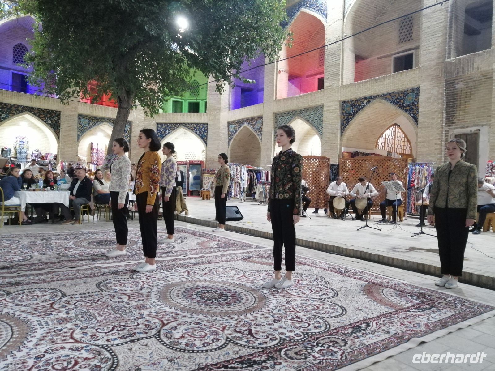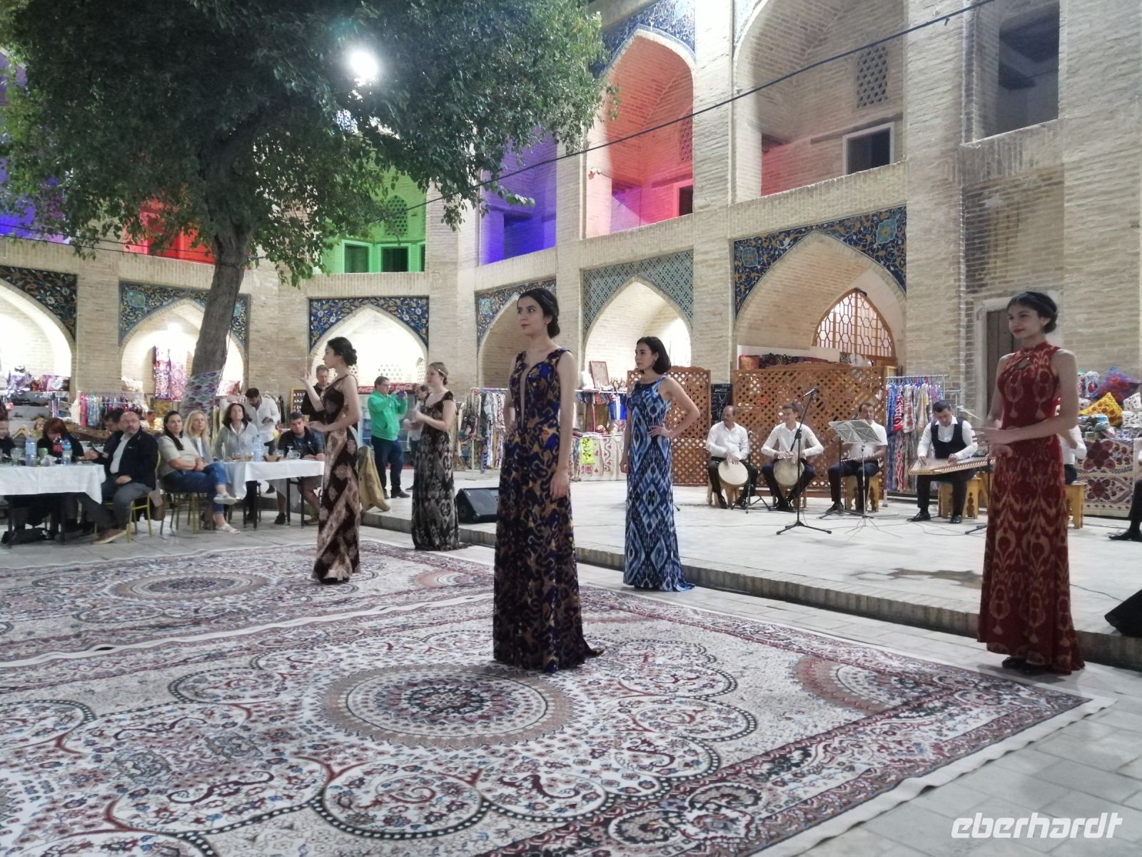 Ein Folklore-Konzert mit Mode-Schau in der wunderschönen Nodir Devon Begi Medresse rundeten unseren sehr erlebnisreichen Tag in Buchara ab. Für ganz „harte“ von uns gab es heute Abend noch etwas ganz Besonderes: der Besuch des alten antiken Hamams „Bosori Kord“. Die Kombination aus warmer Atmosphäre, hilfsbereitem Service, Ingwer-Honig-Massage und romantischem Geist des Orients, der die Wände vom bucharischen Hamam durchtränkte, wurde für uns zu einem unvergesslichen Ereignis.