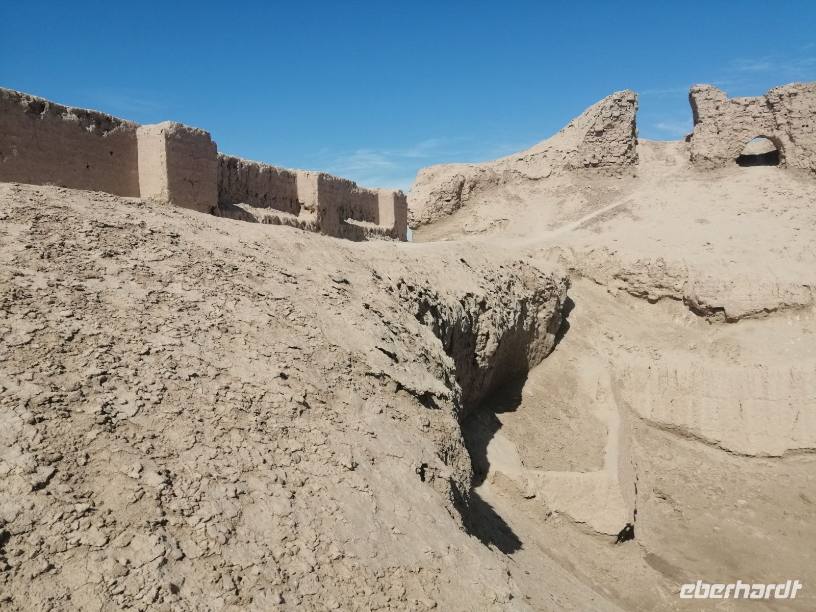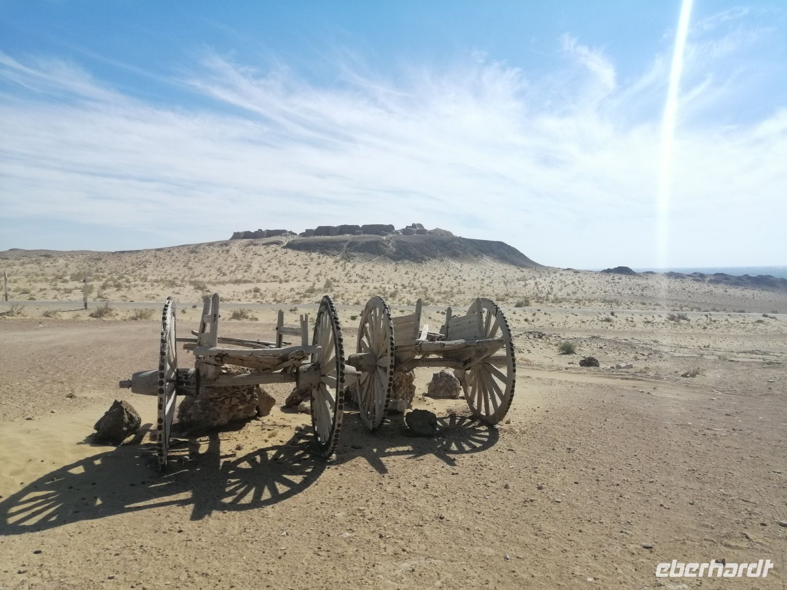 Gegen 13 Uhr erreichten wir Ayaz Kala: was übersetzt „Festung im Wind“ bedeutet – das hatten wir auch zu spüren bekommen! Nach der Erkundung des Geländes und Fotodokumentation, genossen wir im Windschatten der Festung unser Picknick mit einheimischen Leckereien. Als besonderes Getränk gab es ein usbekisches „Cuba Libre“ mit Cognac und Kola!