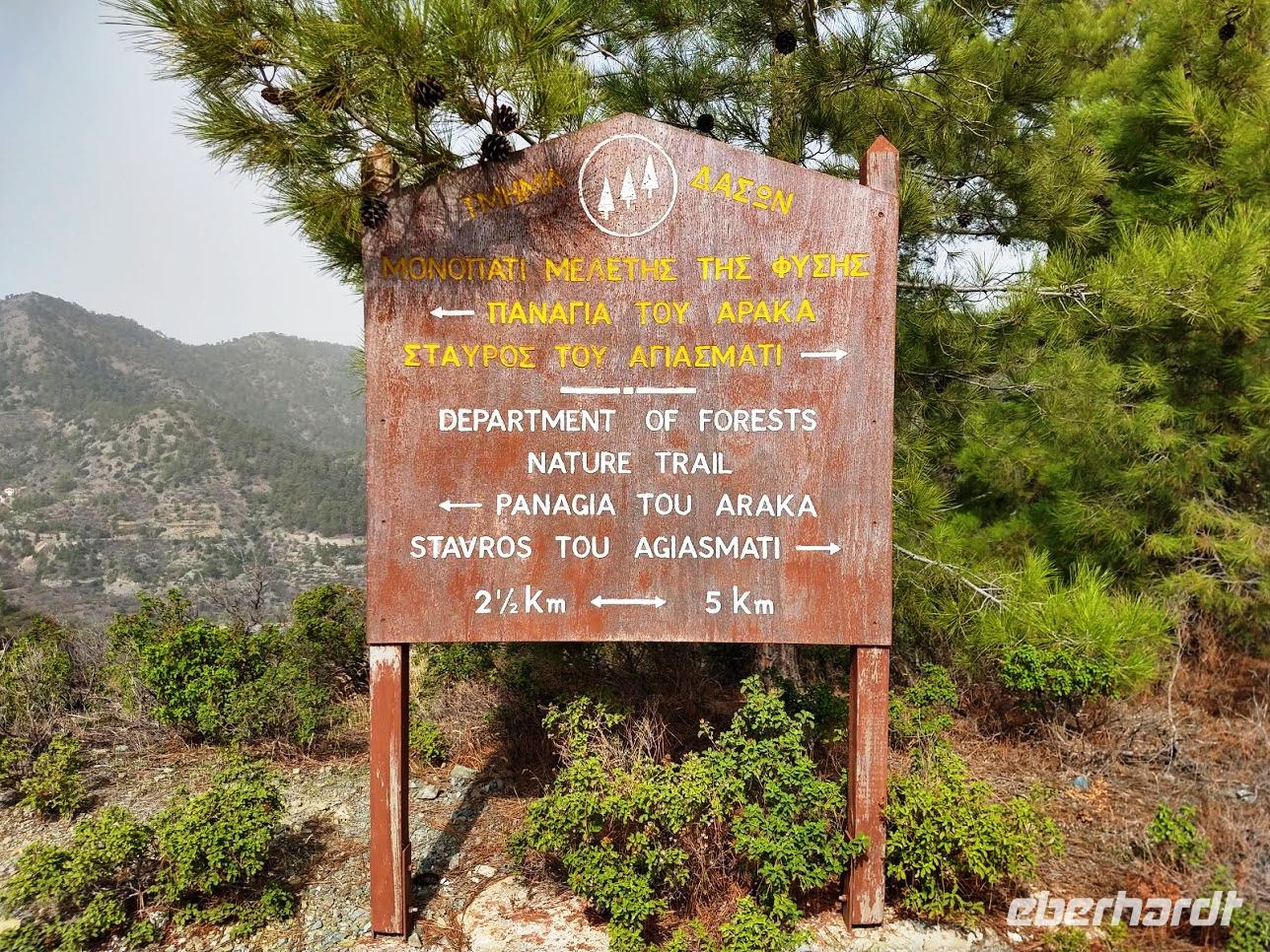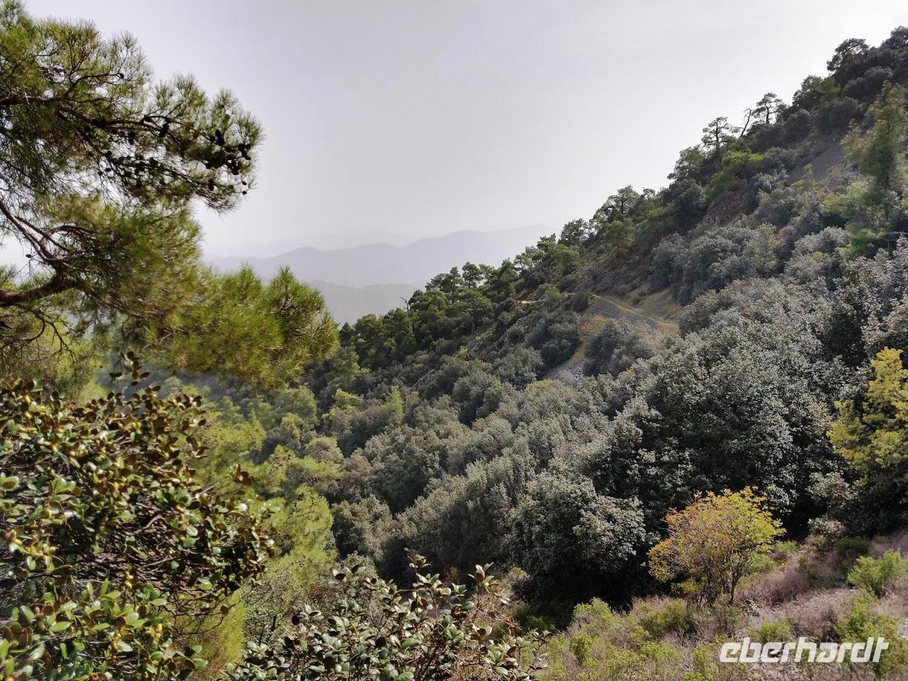 Hinzu kommen schöne Aussichten über die Bergketten des Troodos und zum Gipfel des Olympus. Neuanpflanzungen der zyprischen Zeder bilden inzwischen schöne Wälder an den Berghängen und in den Tälern.