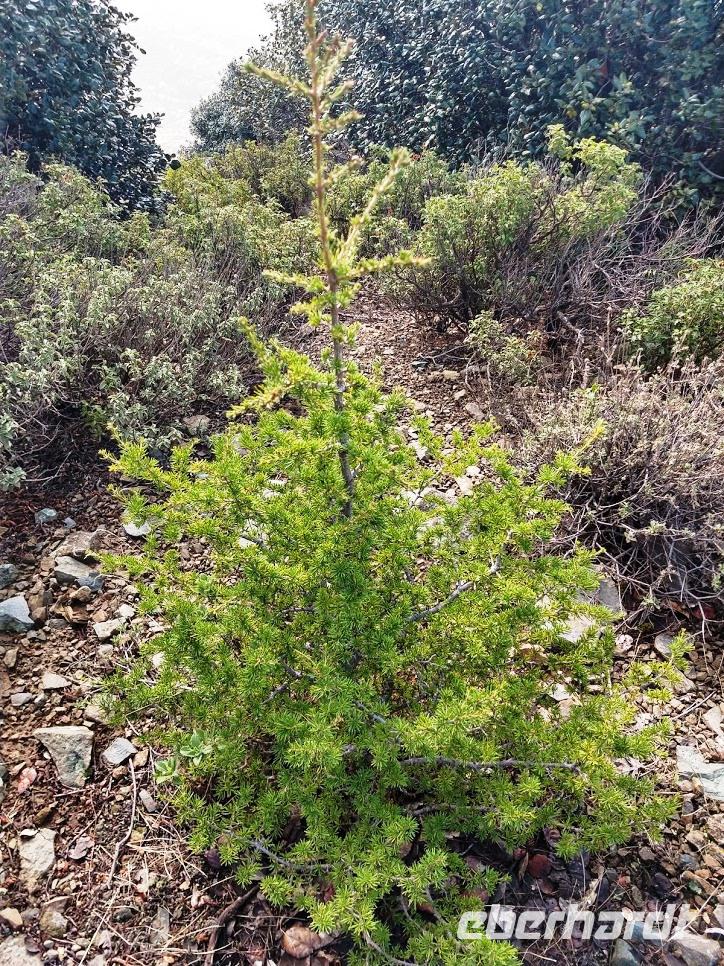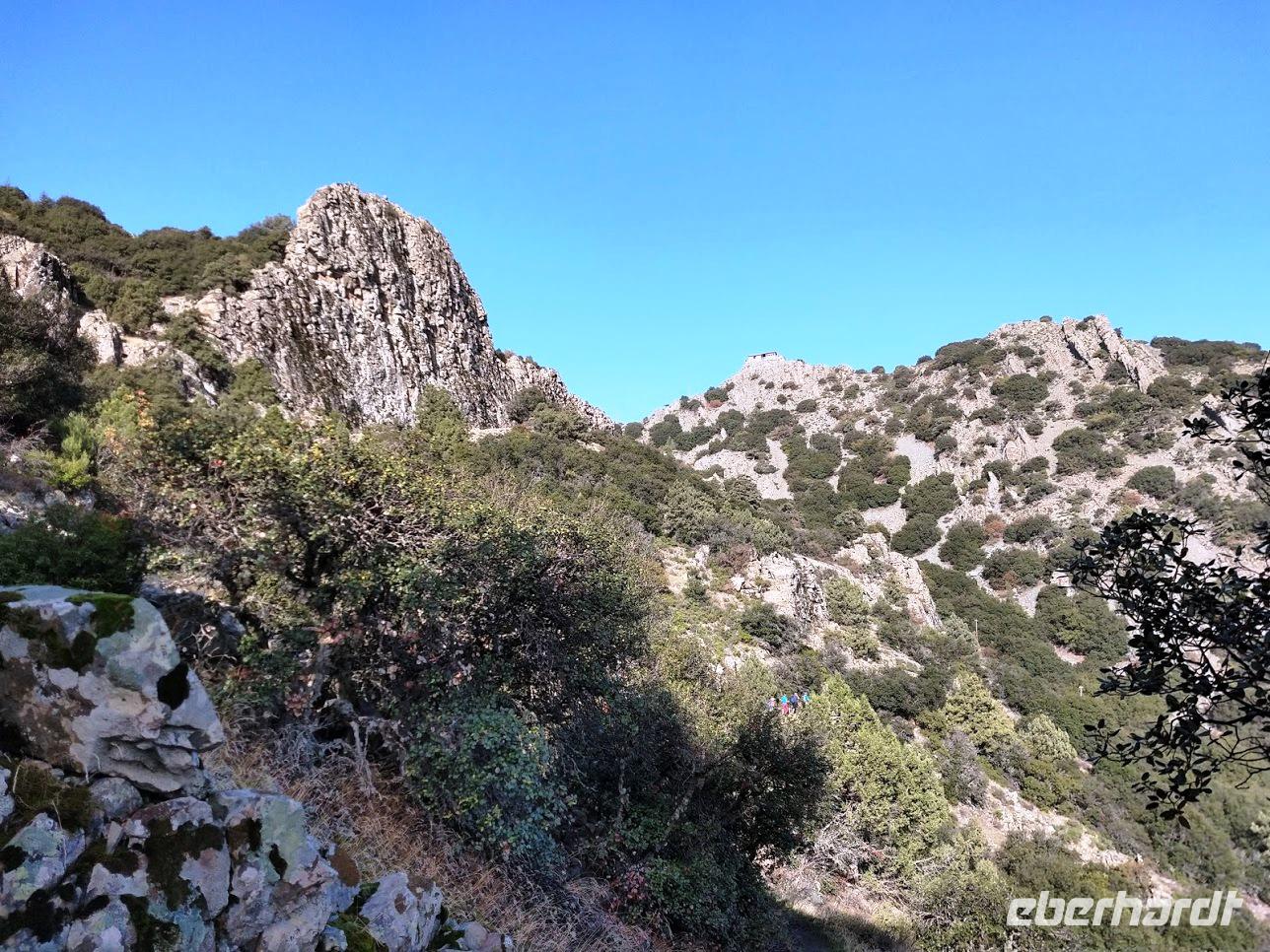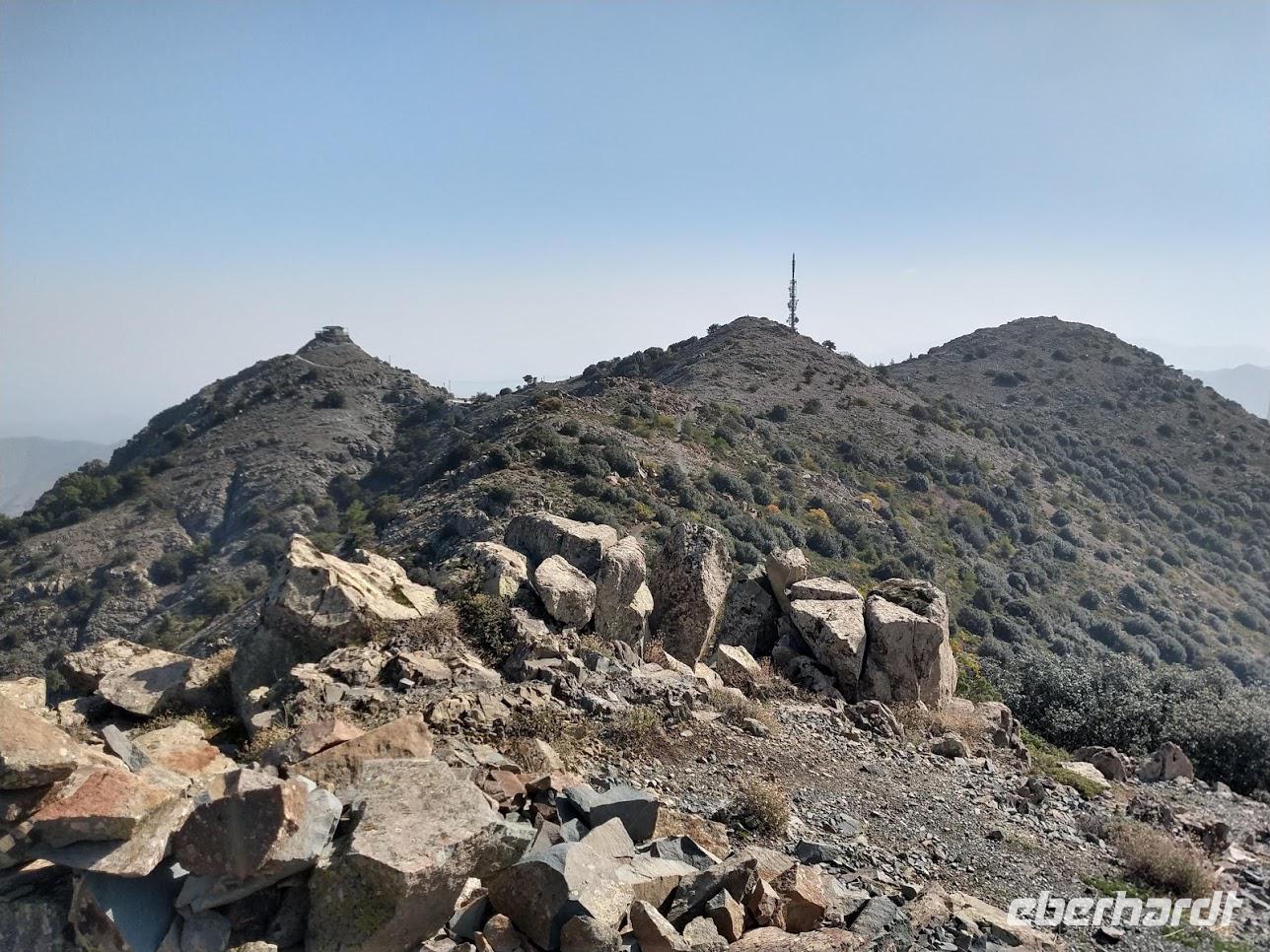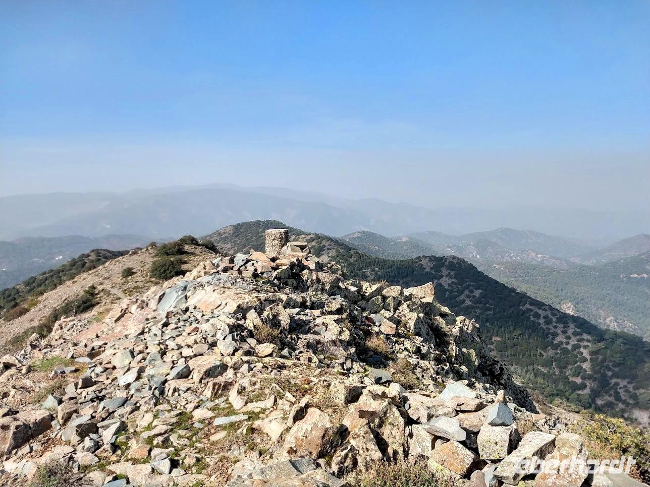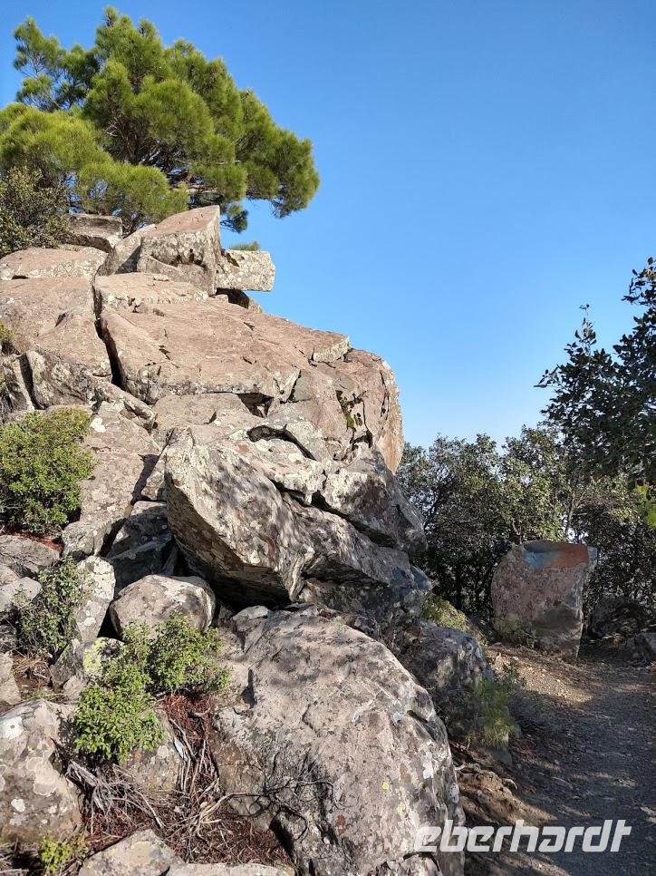 Danach begann unsere Wanderung durch den Pinien-, Wacholder- und Goldeichenwald. Dabei ging zuerst stetig bergan, bis wir den Grad des Höhenrückens erreicht hatten. Leider waren die Ausblicke durch die etwas diesige Sommerwitterung etwas getrübt. Der Weg führte nun auf dem Höhenzug entlang.